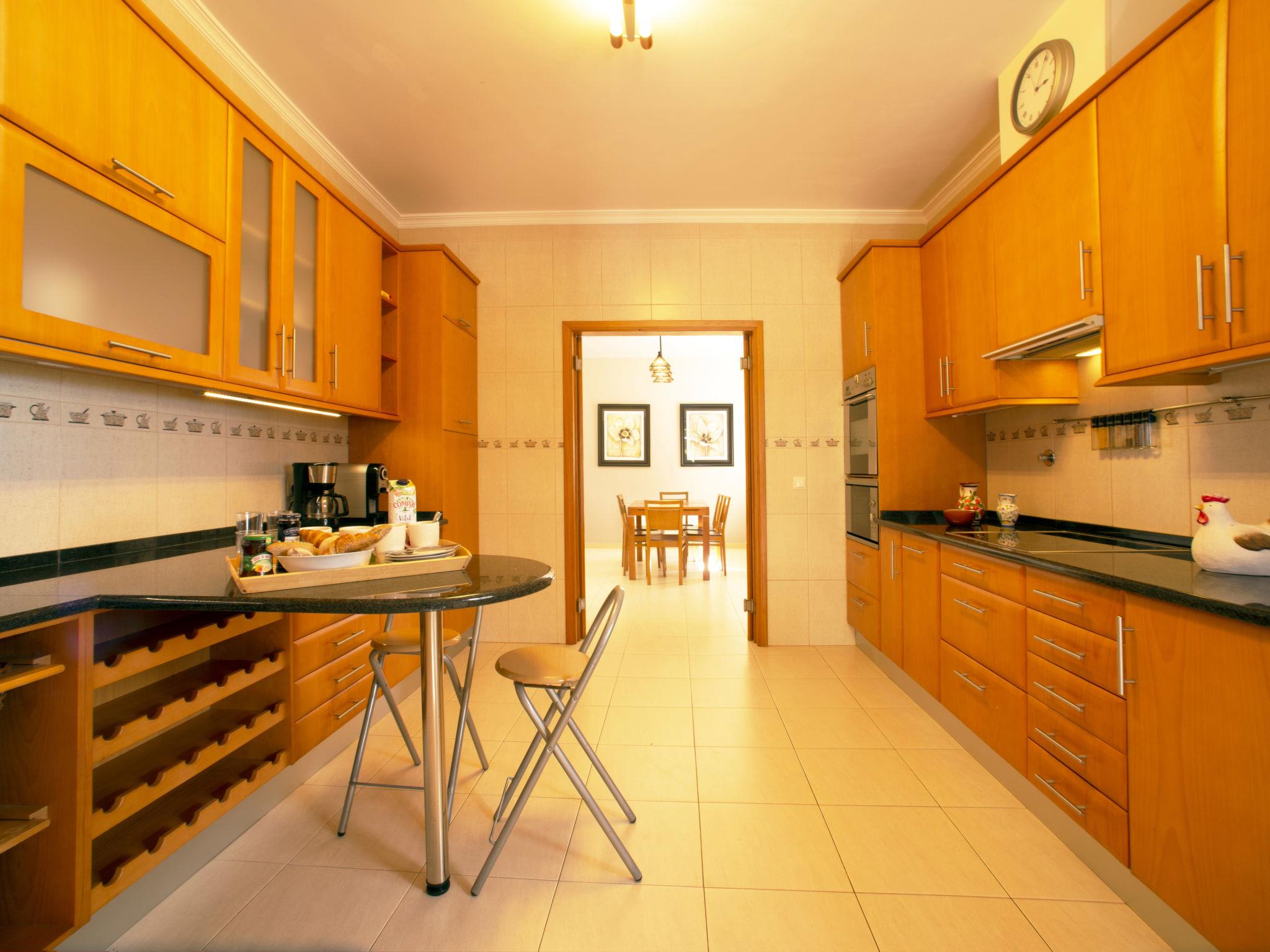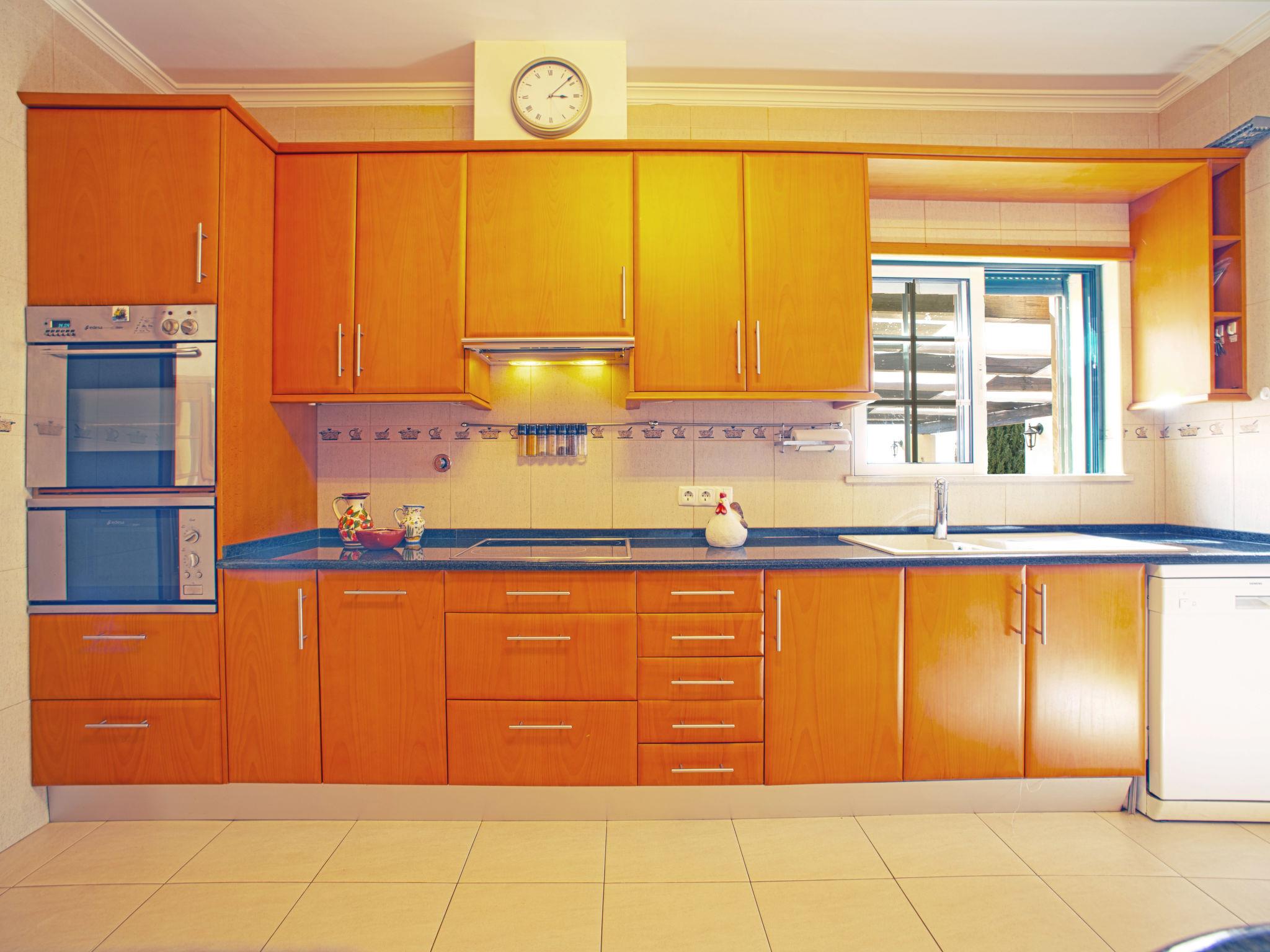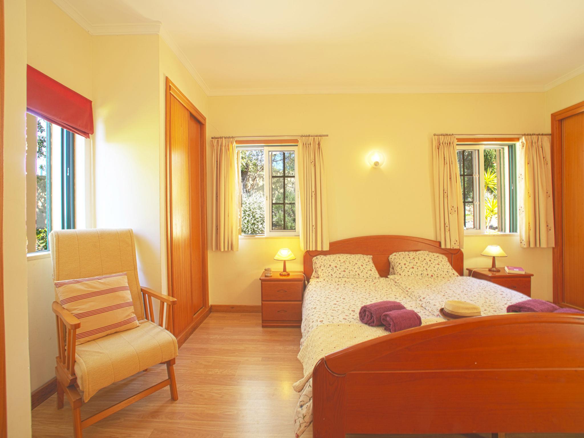 "Montinho", 5-room house 130 m2. Bright, beautiful and tasteful furnishings: living/dining room with open-hearth fireplace, dining table, satellite TV, hi-fi system and electric heater. Exit to the terrace. 2 rooms, each room with 2 beds, shower/WC and air conditioning. 1 room with 1 double bed, bath/WC, double hand-basin and air conditioning. Kitchen (4 hot plates, oven, dishwasher, toaster, kettle, microwave, freezer, electric coffee machine) with dining table. Exit to the terrace. Sep. WC. Electric heating, air-conditioning. Heating not available in all rooms. Terrace roofed terrace, east facing position. Terrace furniture, electric barbecue, deck chairs (6). Panoramic view of the sea. Facilities: washing machine, iron, children's high chair, baby cot. Internet (WiFi, free). Please note: non-smokers only. Fire extinguisher. 37808/AL