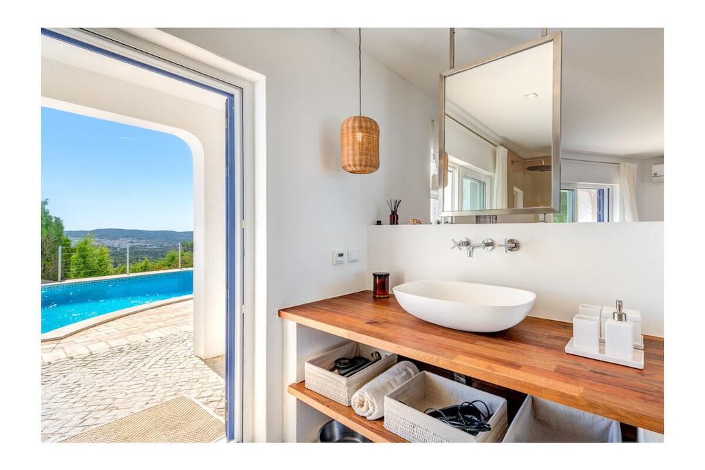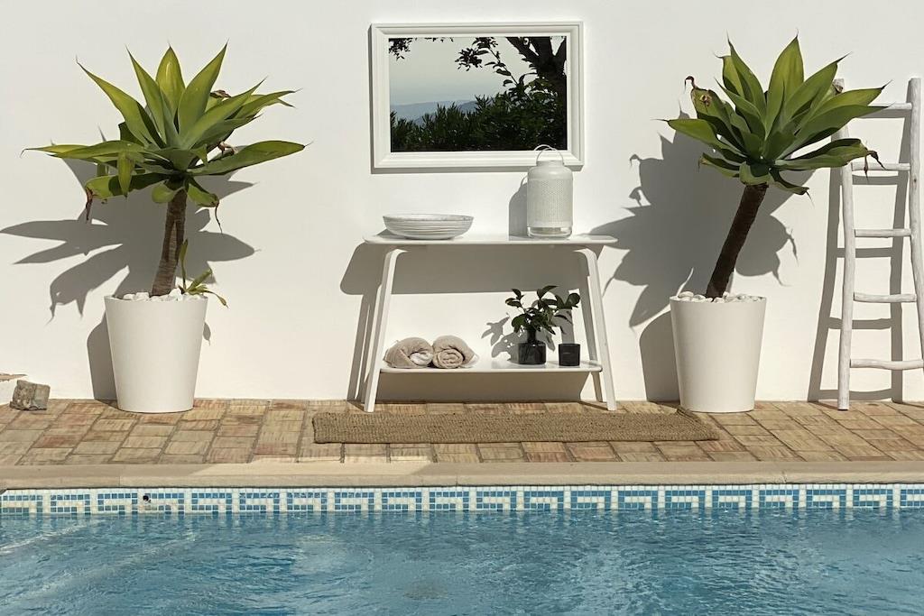 Der Blick von diesem Hideway wird sie beeindrucken und ist nur schwerlich ein weiteres Mal an der Algarve zu finden. Der Garten, der zum Wohnzimmer wird, die erhabene Lage und der fesselnde Blick auf die in der Ferne liegende Küste, auf das dünn besiedelte Umland und die Stadt Loulé. Was gibt es schöneres, als bei aufgehender Sonne den Tag mit einer Runde im Pool zu starten. Vom Bett direkt ins Wasser. Ihr Badekostüm dürfen sie getrost zu Hause lassen. Pool, Dusche und der gesamte Garten sind uneinsehbar. Ihr Frühstück nehmen sie in Folge an irgend einer Stelle in dem mit altem Bewuchs ausgestatteten Garten, der Gartenlaube oder der Terrasse ein. Komplettsanierung 2020. Superschnelles Internet ist vorhanden. Beheizbarer Pool auf Anfrage.