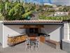 The villa has a beautiful garden with barbeque and a dining table.