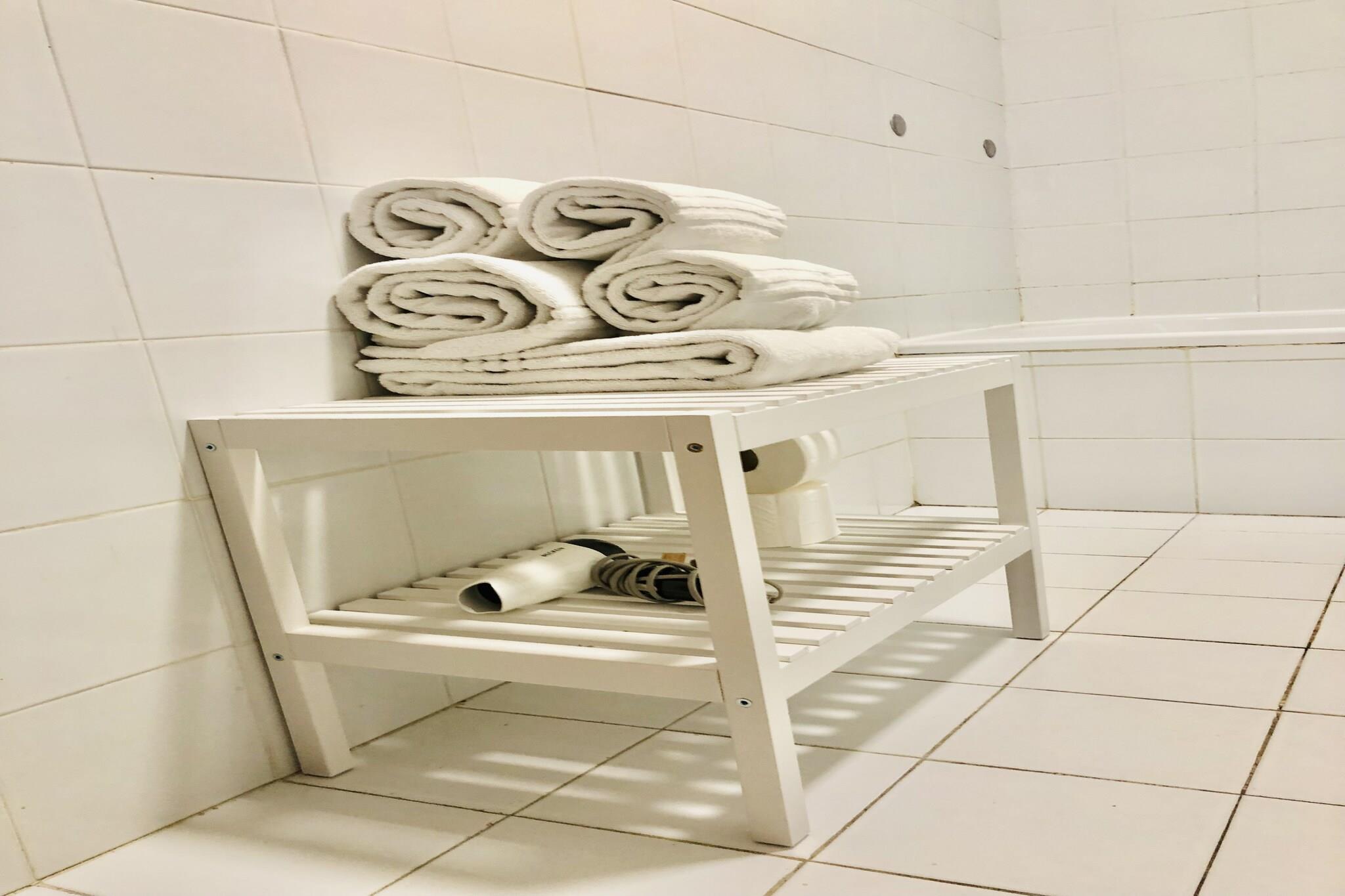 Stue(Fjernsyn, sofahjørne), Køkken(elkedel, brødrister, kaffemaskine, ovn, mikrobølgeovn, køle-fryseskab, Saftpresser, , ), soveværelse(enkeltseng), soveværelse(enkeltseng, enkeltseng), badeværelse(badekar, håndvask, toilet, føntørrer), Internetadgang, vaskemaskine, klimaanlæg, strygejern