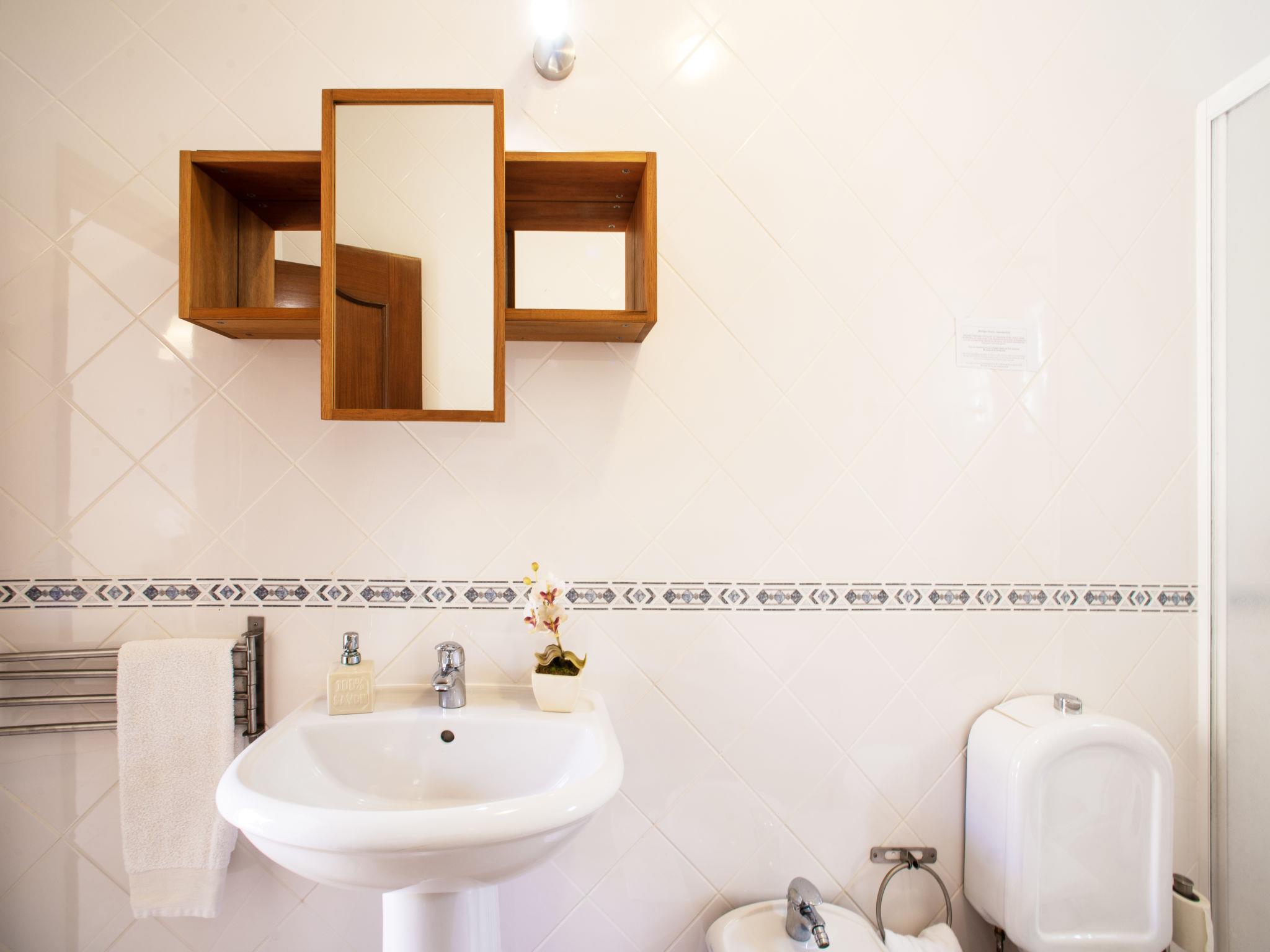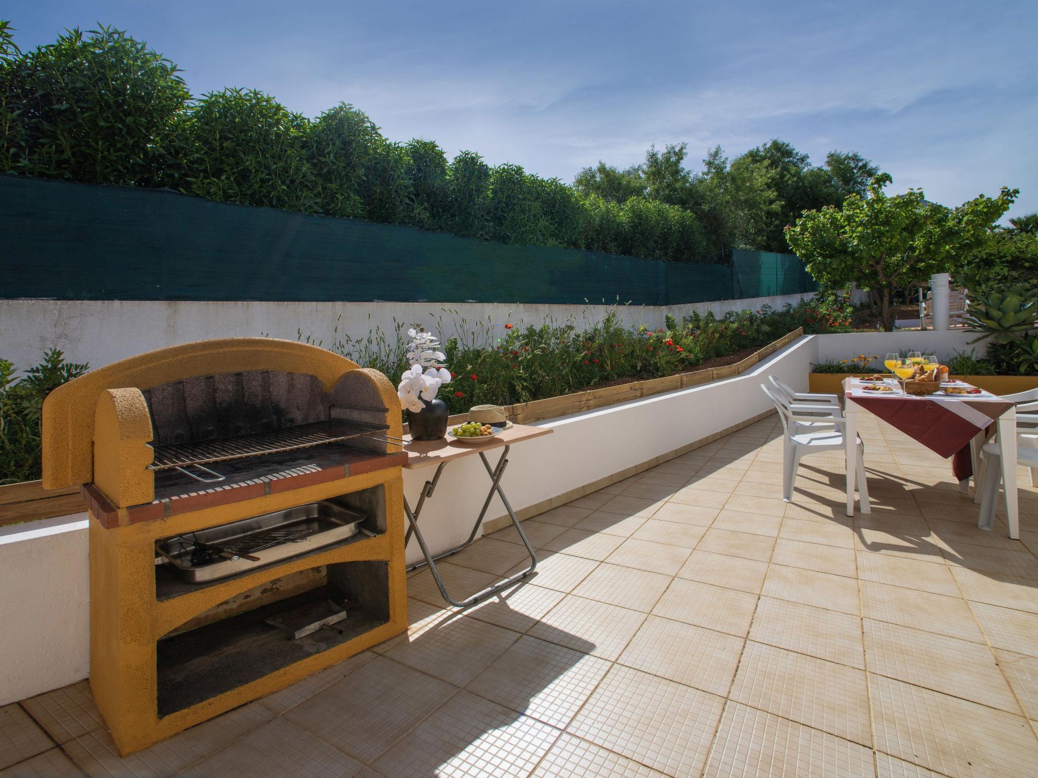 "Monte Novo", 2-room house 57 m2. Practical and wooden furniture furnishings: living/sleeping room with 1 sofabed, 1 pull-out bed, dining table, satellite TV, hi-fi system, air conditioning and forced-air heating. 1 room with 2 beds (95 cm, length 195 cm), air conditioning and forced-air heating. Kitchen (oven, 4 gas rings, microwave, freezer, electric coffee machine) with dining table. Shower/WC. Heating (extra). Heating not available in all rooms. Terrace. Terrace furniture, barbecue, deck chairs (4). Facilities: washing machine, baby cot. Internet (WiFi, free). Please note: non-smoking house. Fire extinguisher. 10048/AL