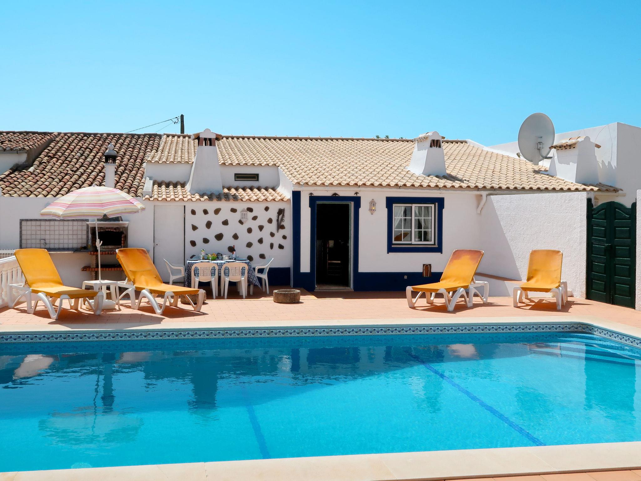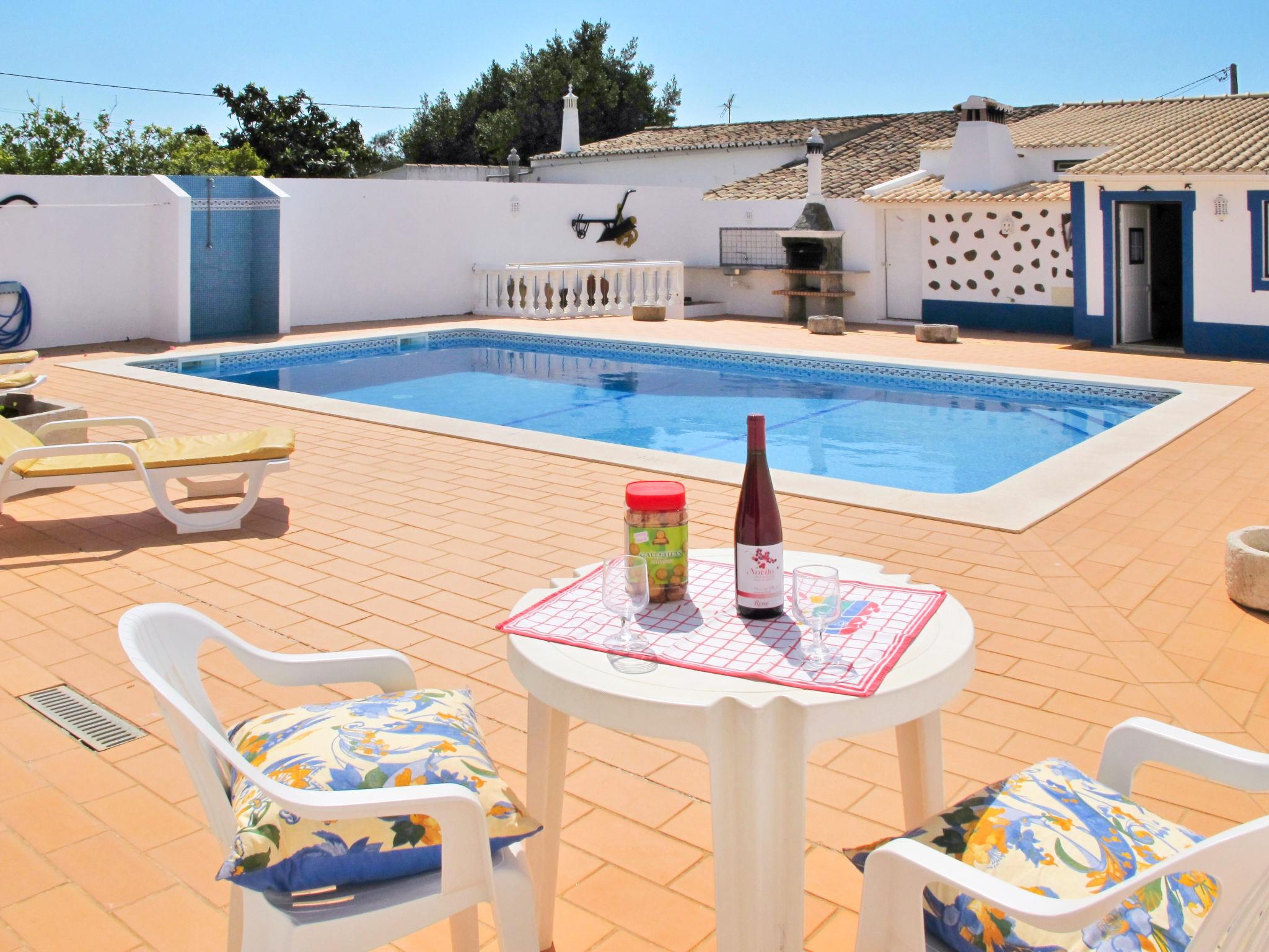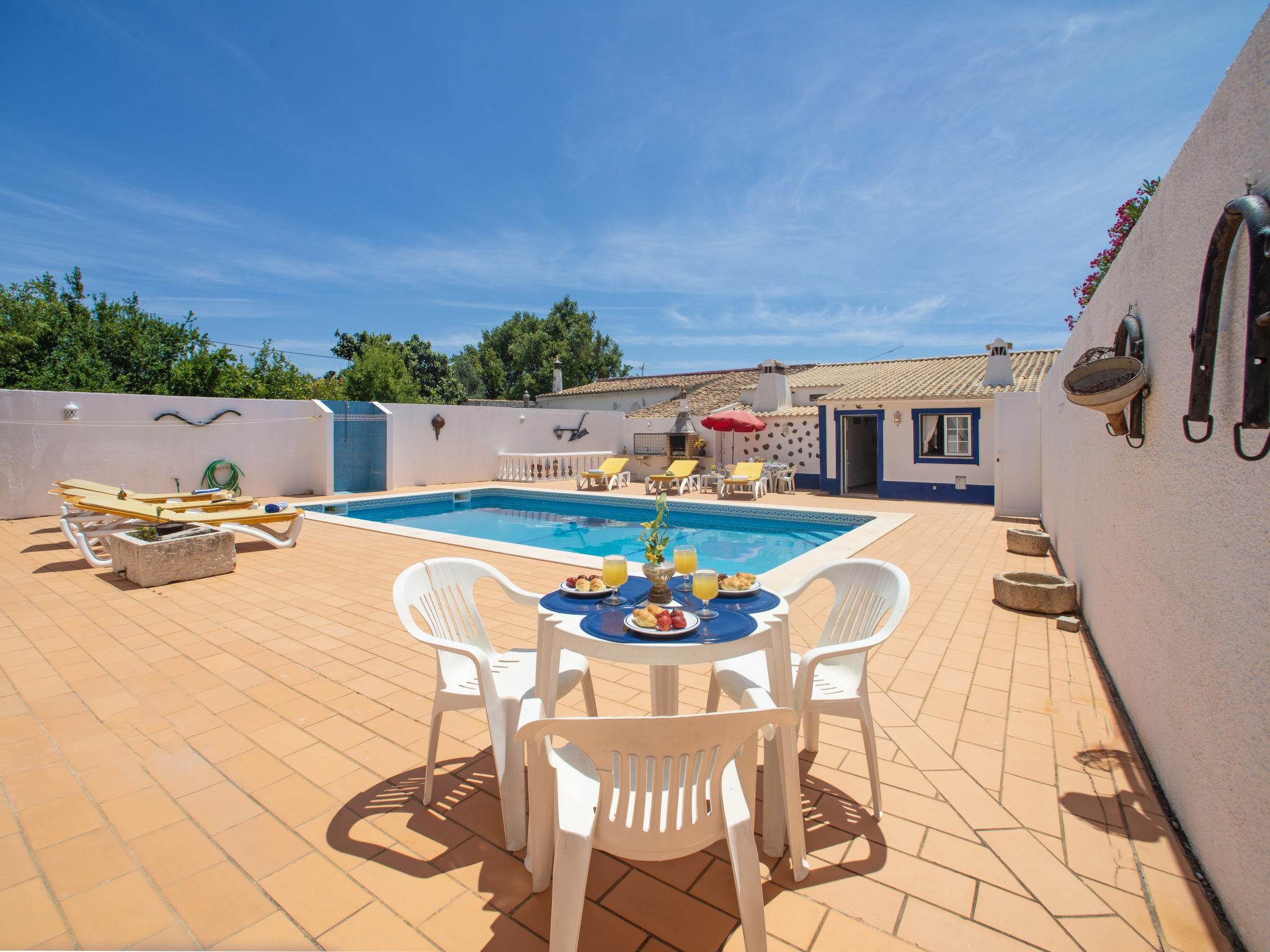 House "Monte da Calma". Property composed of main house and outbuilding, Cerro de Ouro 3.7 km from the centre of Paderne, outside the resort, 9 km from the centre of Albufeira, 9.5 km from the sea. Private: natural state property 1'200 m2 (fenced), swimming pool (8 x 4 m, depth 100 - 200 cm, seasonal availability: 01.Jan. - 31.Dec.). Outdoor shower, table tennis. In the house: billiard table, roof terrace. 600 m long narrow motor access. Parking on the premises. Shop 1.5 km, supermarket 9 km, restaurant 1.8 km, bakery, bus stop 600 m, railway station "Tunes" 6.6 km, sandy beach "Albufeira" 9.5 km. Marina 10.5 km. Nearby attractions: Krazy World 12.5 km. Please note: animals in the neighbourhood.