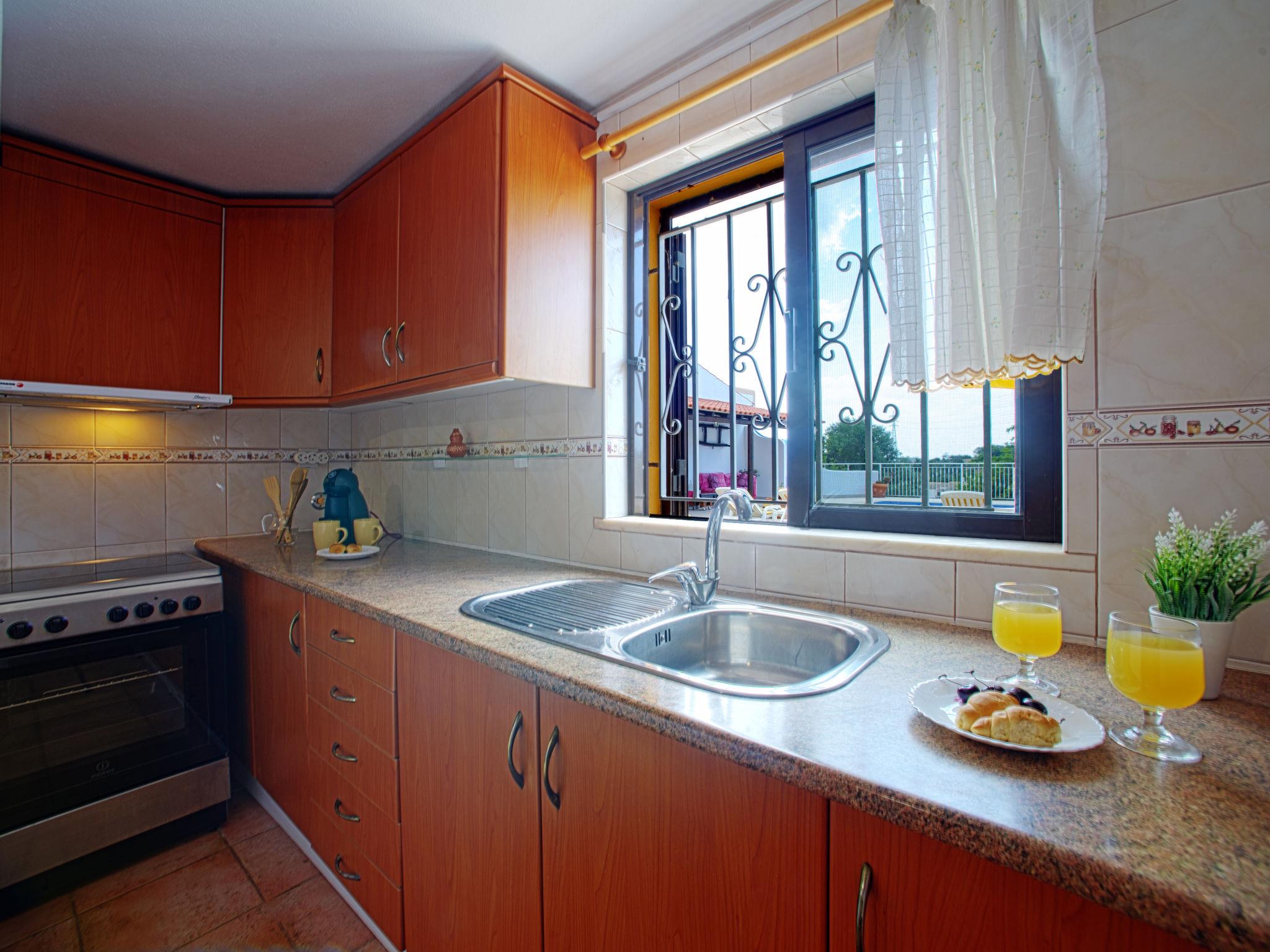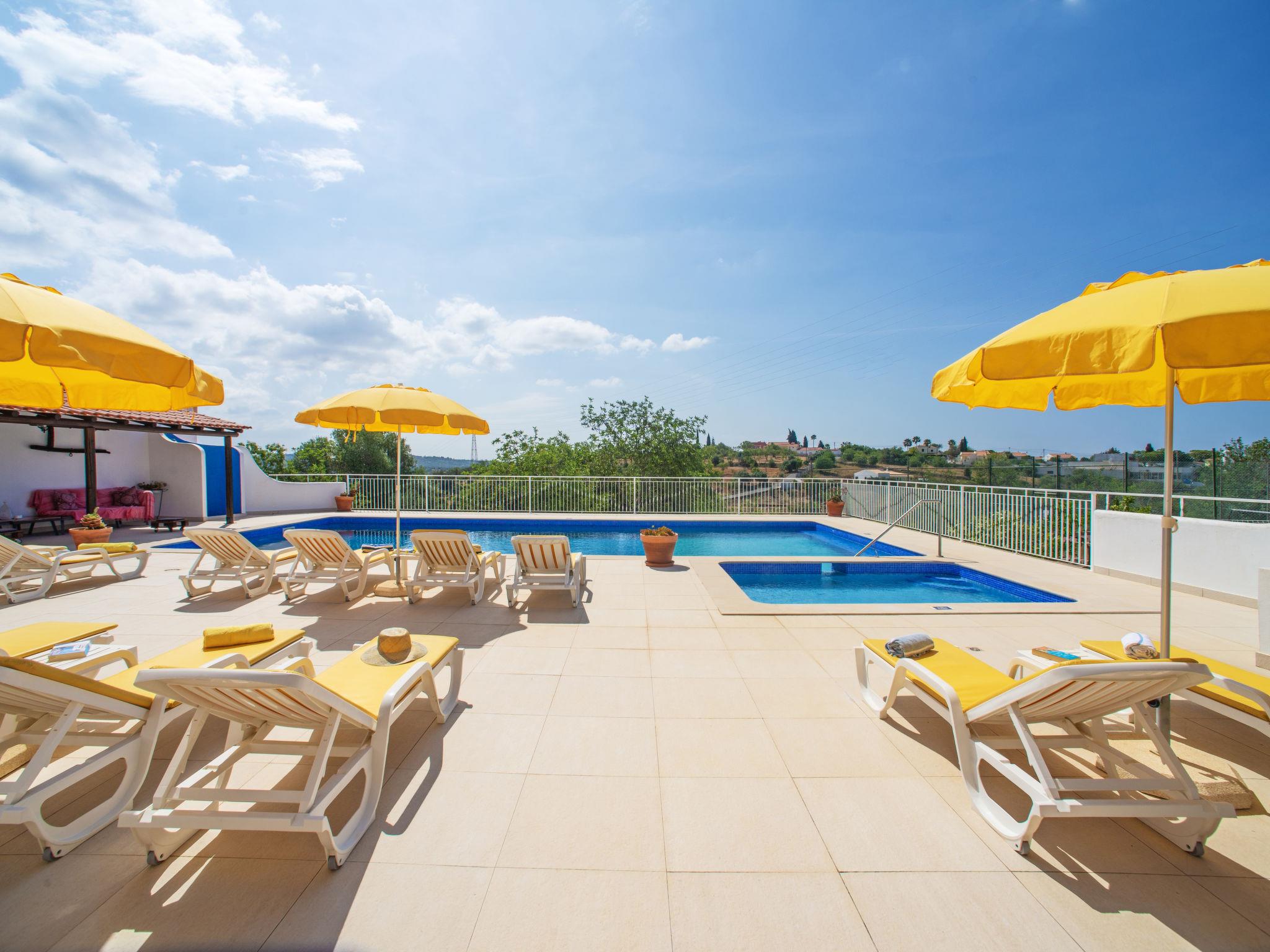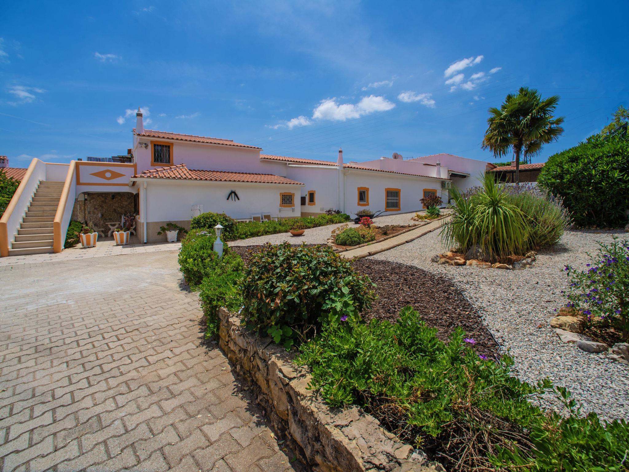 Small holiday development "Monte dos Vieiras". 5 houses in the resort. On the outskirts Cerro do Ouro, in a quiet, elevated position, 9 km from the sea. For shared use: property 5 ha (fenced), natural garden, swimming pool (13 x 6 m, depth 130 - 190 cm, seasonal availability: 01.Jan. - 31.Dec.). Children's pool, outdoor shower, tennis, barbecue. In the complex: relaxation room, billiard table. 500 m long narrow motor access. Roofed, parking (for 6 cars, limited number of spaces) on the premises. Shop 1.5 km, grocery 1.5 km, shopping centre 9 km, restaurant 1.7 km, bakery 500 m, bus stop 350 m, railway station "Tunes" 3.8 km, sandy beach 9 km. Marina 9 km, golf course (18 hole) 13.6 km. Nearby attractions: Krazy World 9 km. Please note: Additional accommodations can be booked. Property ref. PT6815608.1,2,3 is situated on the same property.
