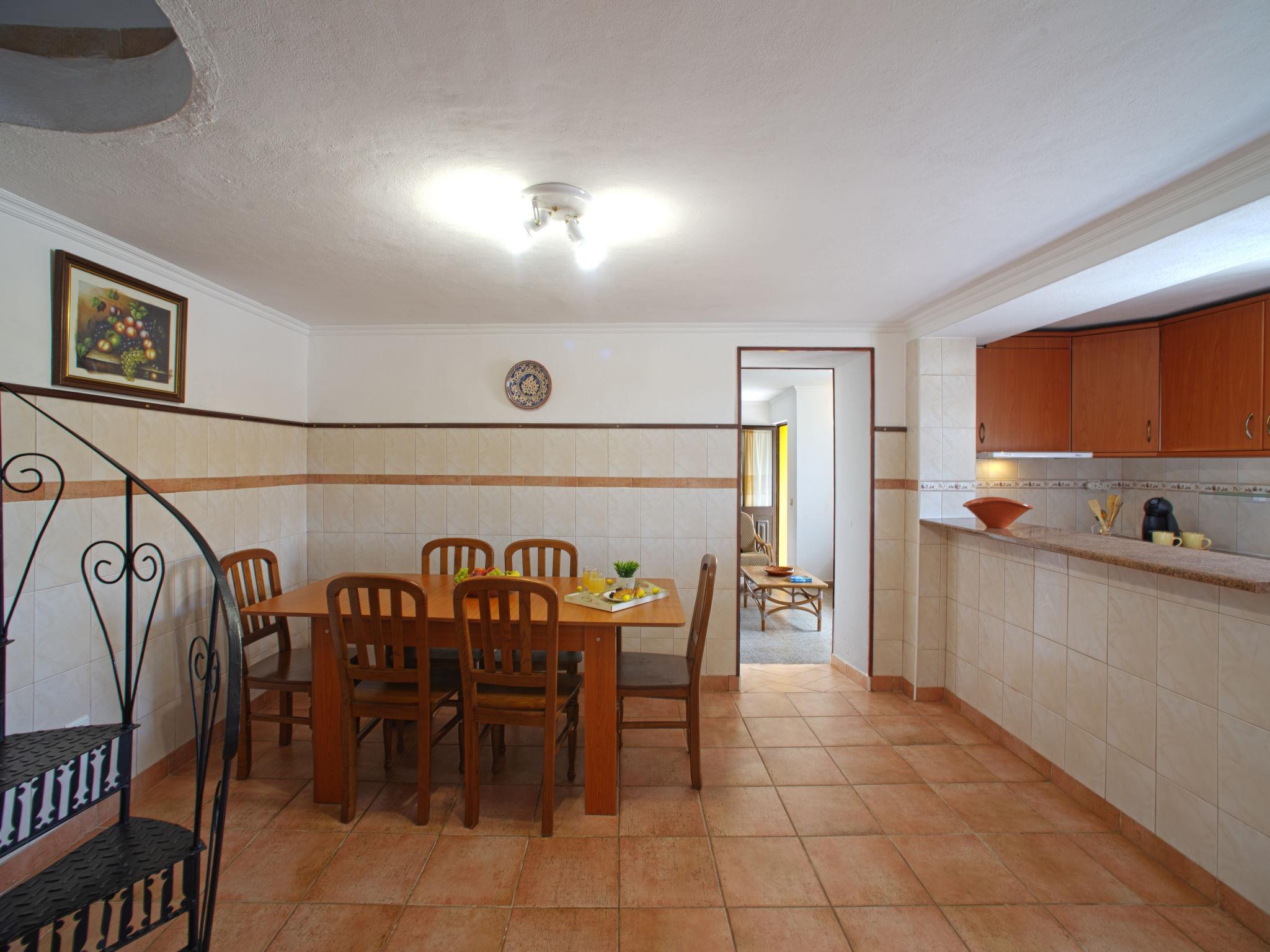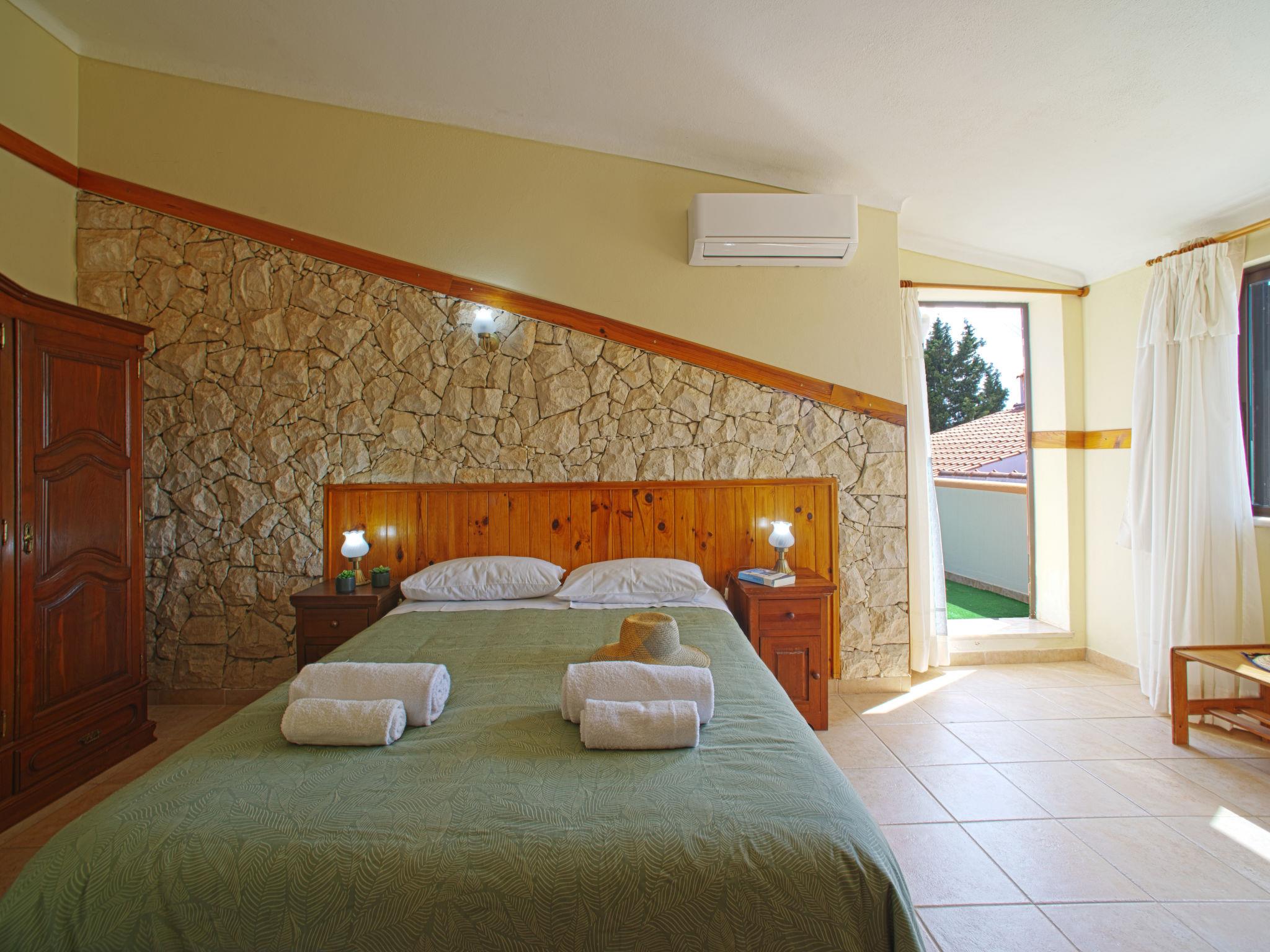 "Ana", 3-room terraced house 65 m2 on 2 levels. Partly renovated in 2025, comfortable and beautiful furnishings: living room with satellite TV. Exit to the terrace. 1 room with 2 beds (90 cm, length 200 cm), air conditioning. Open kitchen (oven, 4 ceramic glass hob hotplates, toaster, kettle, microwave, freezer, electric coffee machine) with dining table. Exit to the terrace. Shower/WC. No heating option. Upper floor: (spiral staircase), 1 room with 1 bed (140 cm, length 200 cm), shower/WC and air conditioning. Terrace 6 m2 partly roofed, large terrace 14 m2. Terrace furniture. Beautiful view of the countryside. Facilities: washing machine, safe, iron, children's high chair, baby cot, hair dryer. Internet (WiFi, free). Please note: TV only DE, AS. 94911/AL
