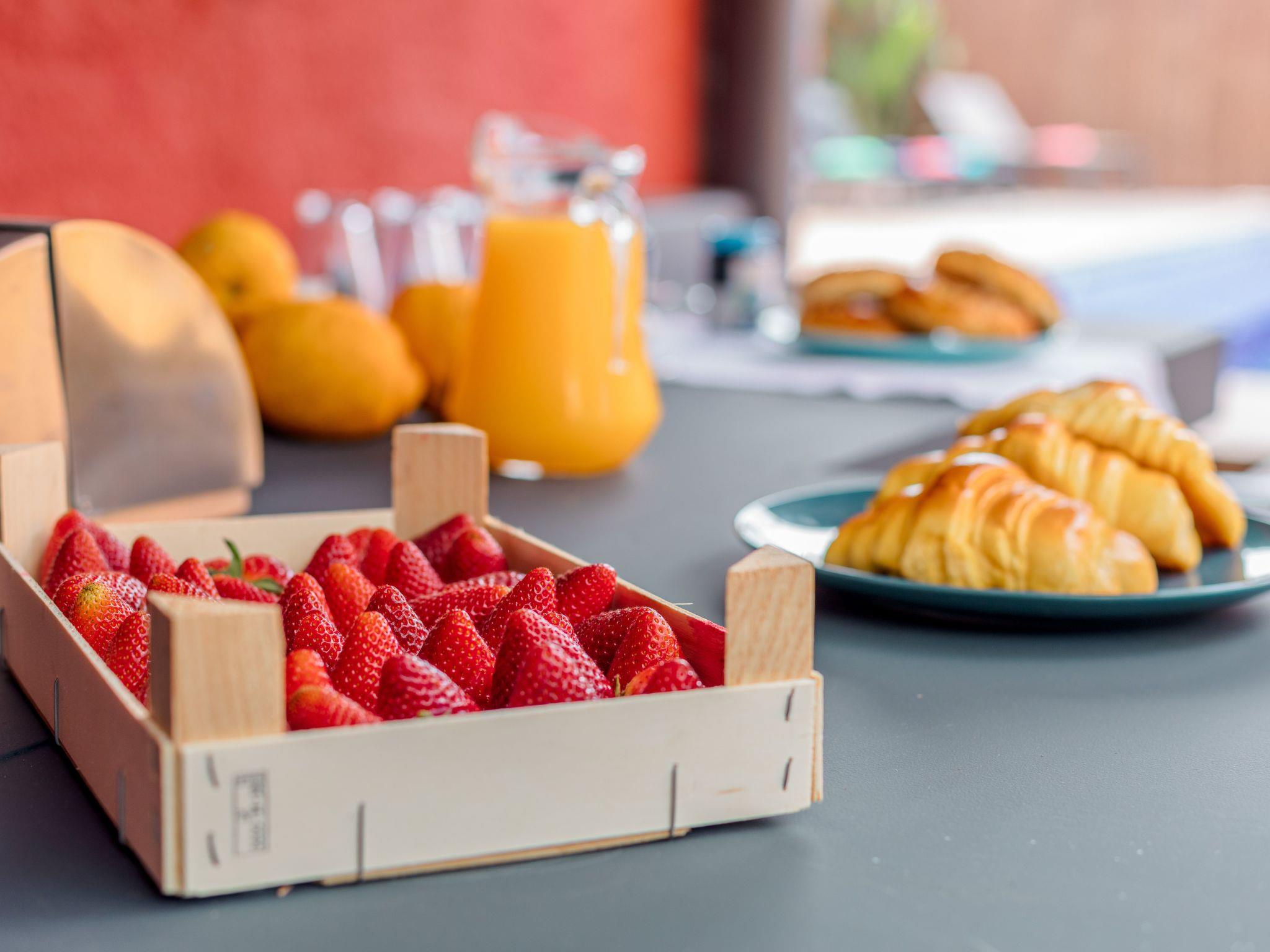 The house is set in a beautiful garden surrounded by several terraces with 2 hammocks. You can use the sun loungers around the pool. If you prefer shade, you can sit at a large covered table next to the barbecue area. On particularly hot days, you can place the sun loungers directly in the shallow area of the pool and dangle your feet and hands in the cool water.
