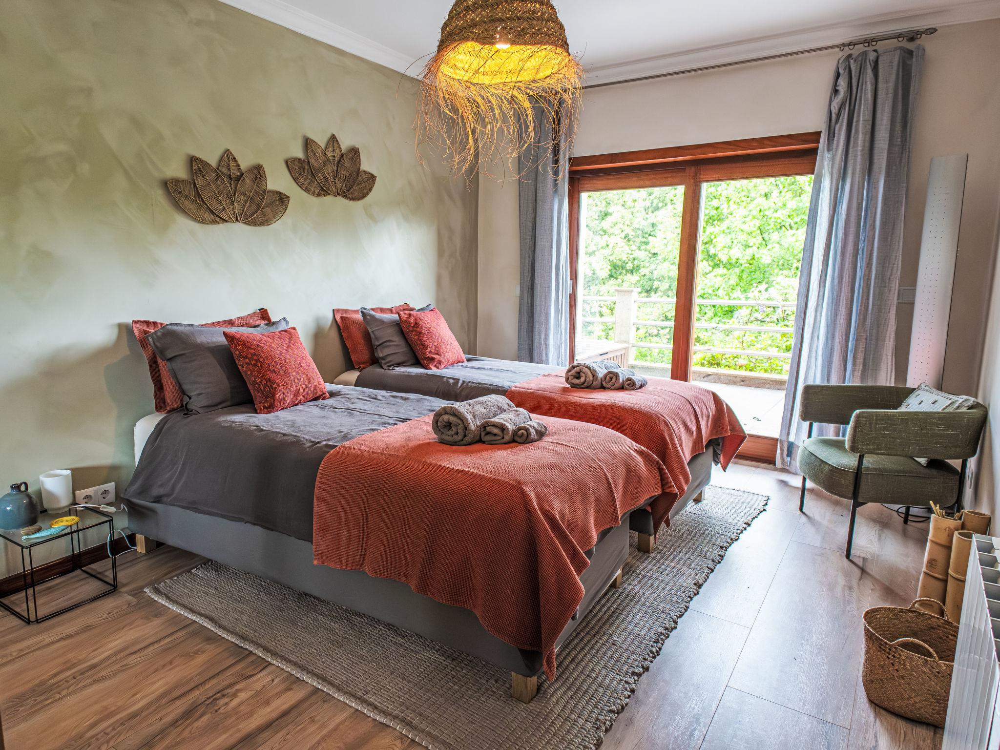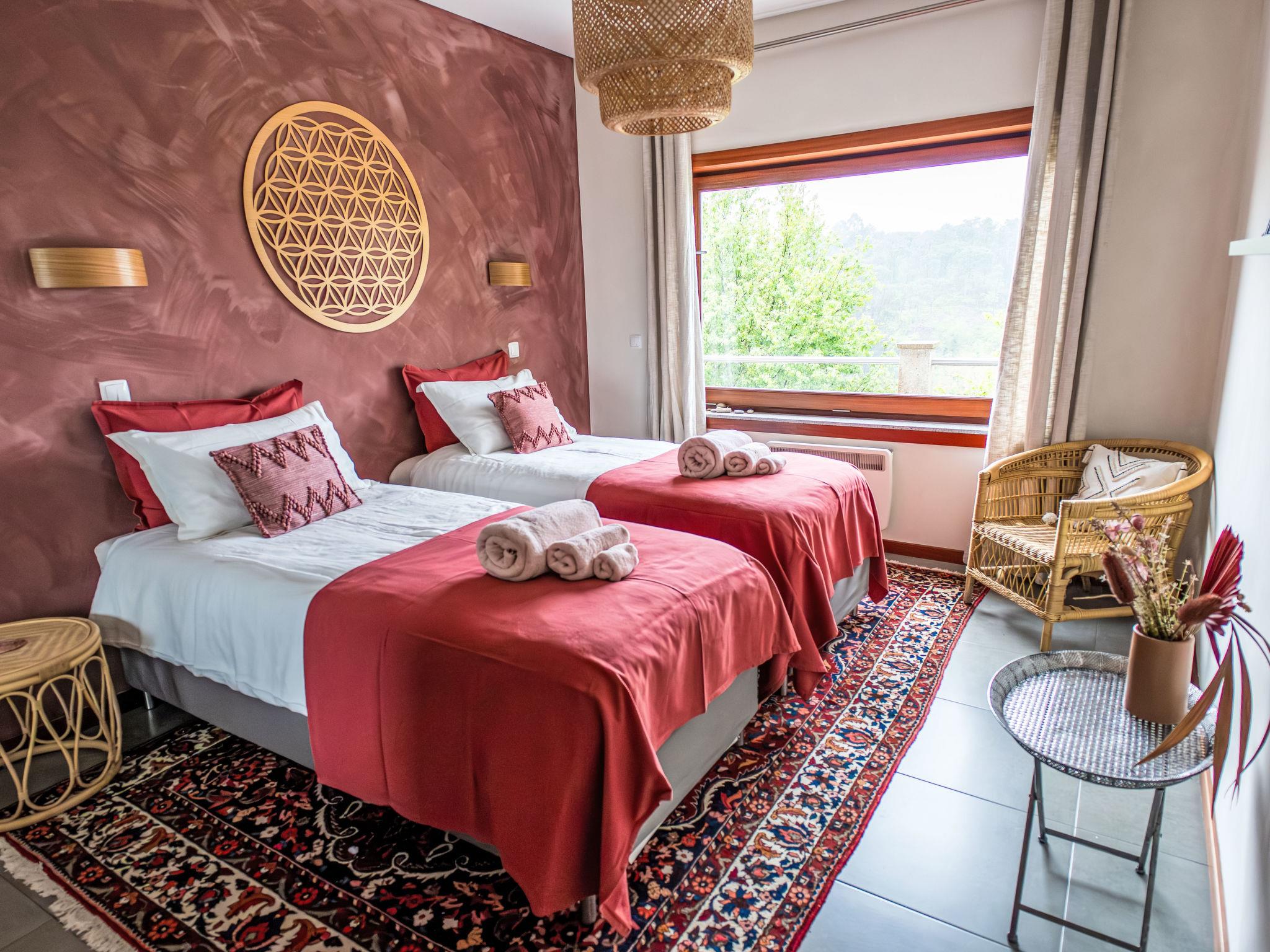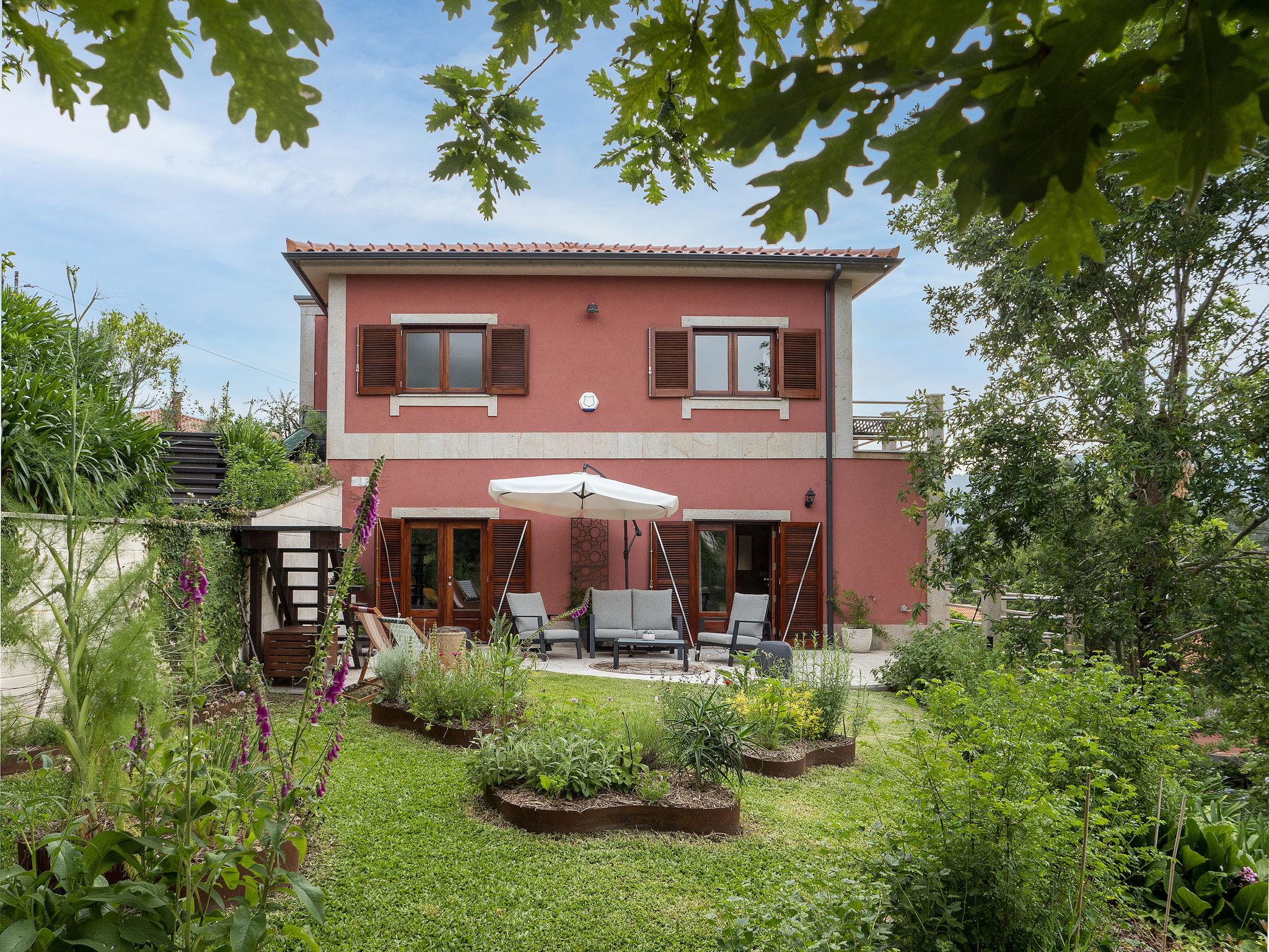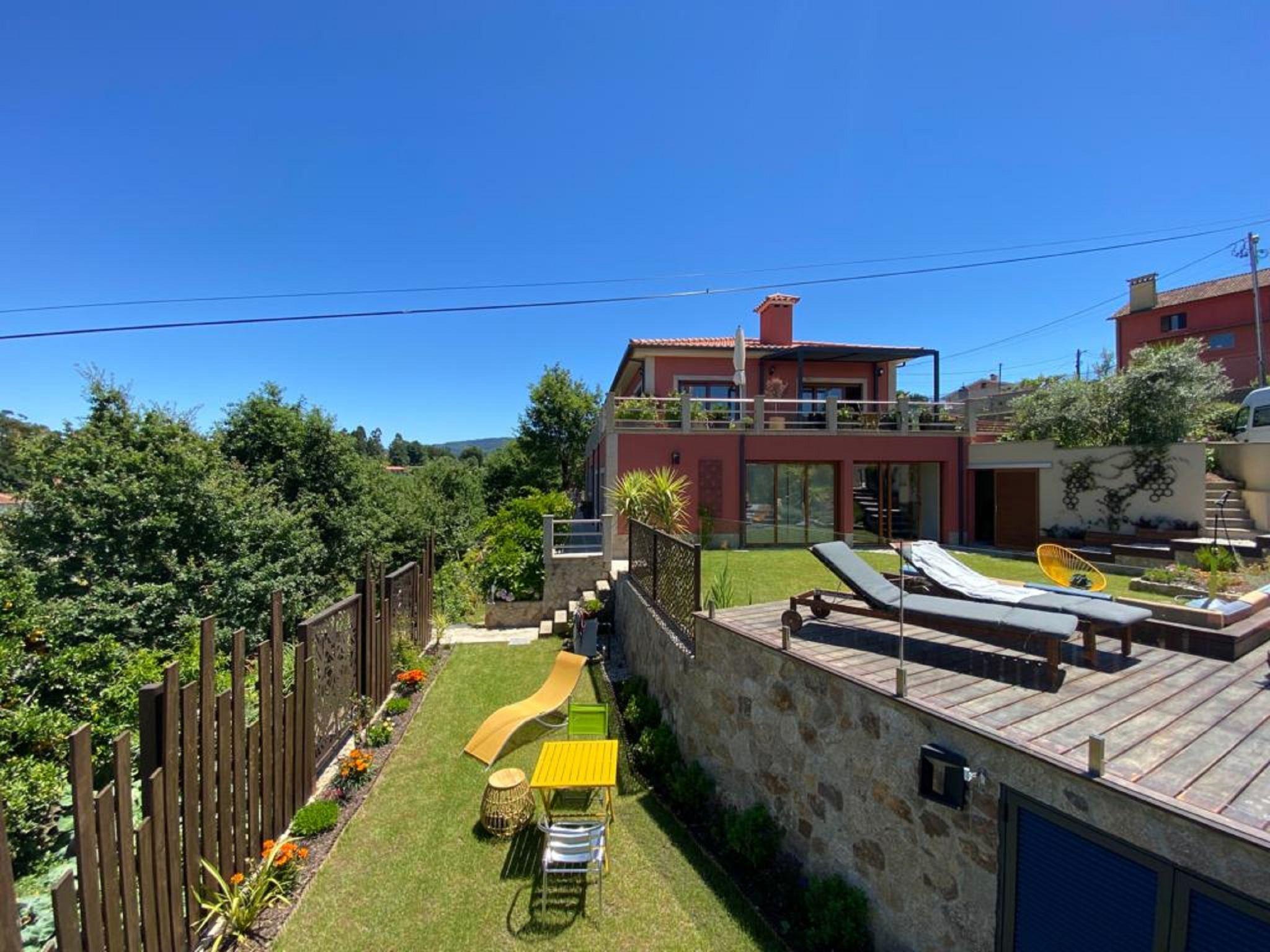 Very cosy, comfortable villa "Rio Lima Retreat", 2 storeys, detached, built in 2011, surrounded by trees and fields. Outside the resort, 6.6 km from the centre of Ponte de Lima, in a quiet position residential area (villas), 200 m from the river. Private: swimming pool angular (3 x 9 m, depth 80 - 150 cm, seasonal availability: 01.Apr. - 31.Oct.). Arbour, garden furniture. In the house: WiFi, washing machine. Parking at the house. Grocery 700 m, supermarket 5.6 km, shopping centre 9.5 km, restaurant, bakery 700 m, café 750 m, bicycle rental 6.2 km, bus stop 6.9 km, sandy beach "Praia fluvial Ponte de Lima" 8.9 km. Surf school 33.7 km, riding stable 8.1 km, children's playground 8.2 km. Nearby attractions: Braga Se cathedral 45 km, Golf Ponte de Lima 13 km, Castelo da Nóbrega, Ponte da Barca 22.9 km, Cascatas 12.9 km, Vigo Airport 65 km, Ponte da Barca, R. Rio Lima 11.6 km. Please note: car recommended. Suitable for families. Loading and unloading of baggage is possible at the holiday house. The owners offer additional services on demand like chef/catering service, yoga classes, massages, kayak/cycling, hiking excursions/tours.