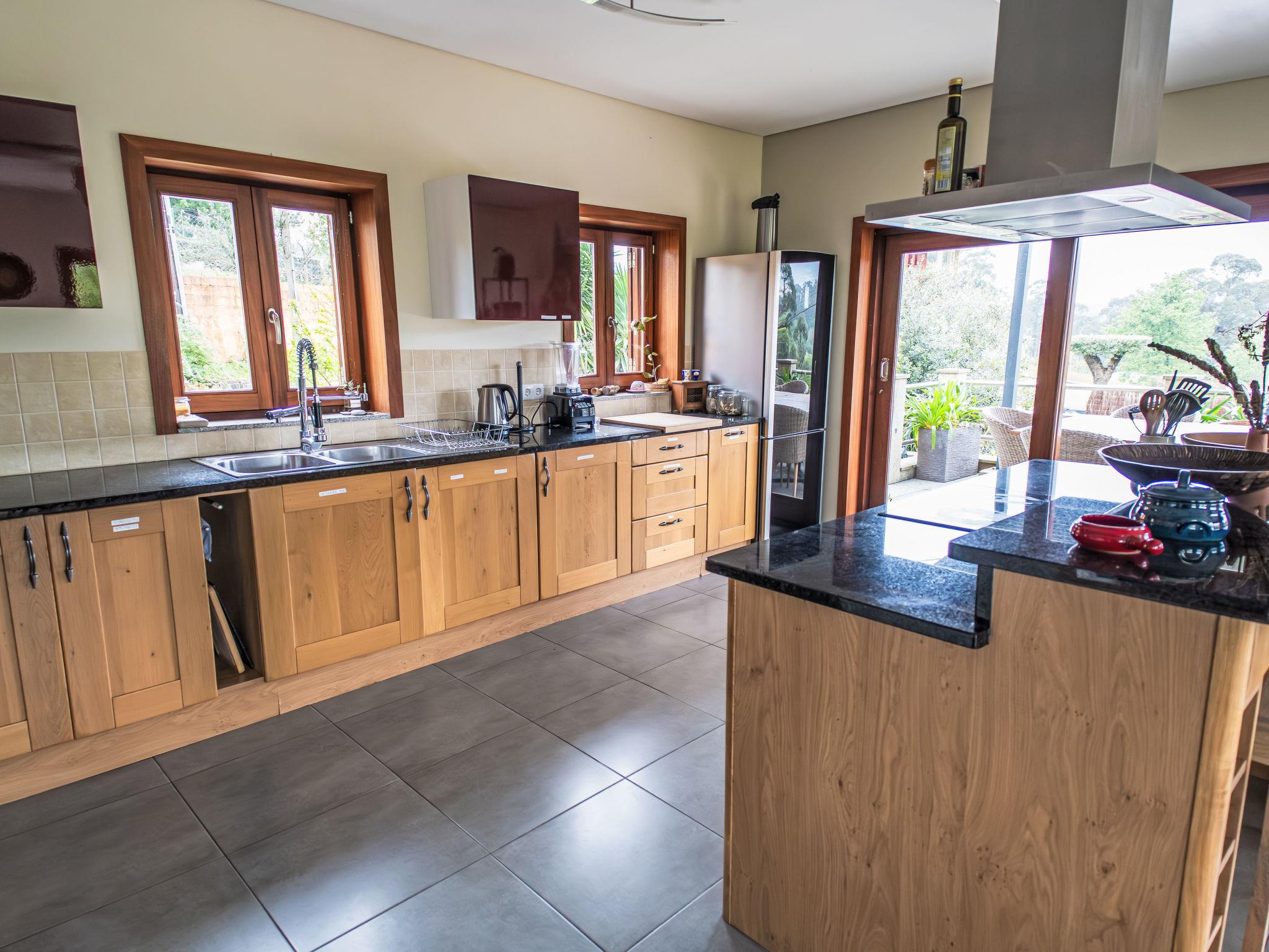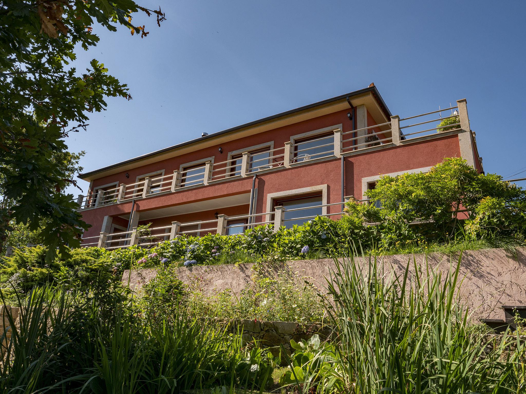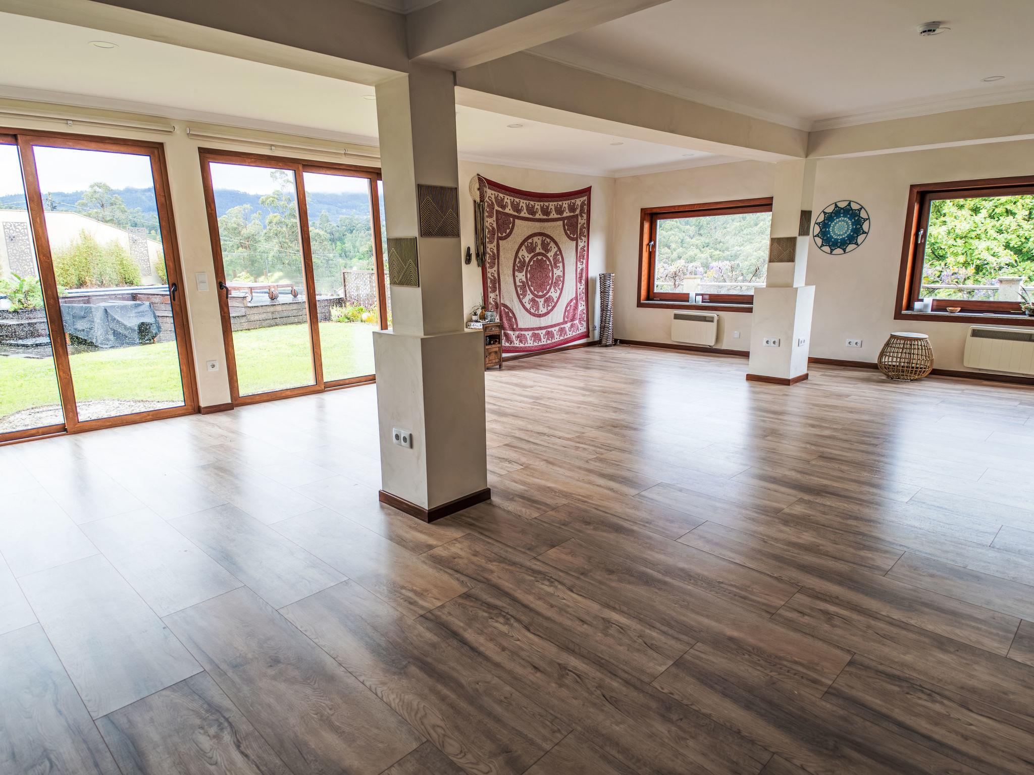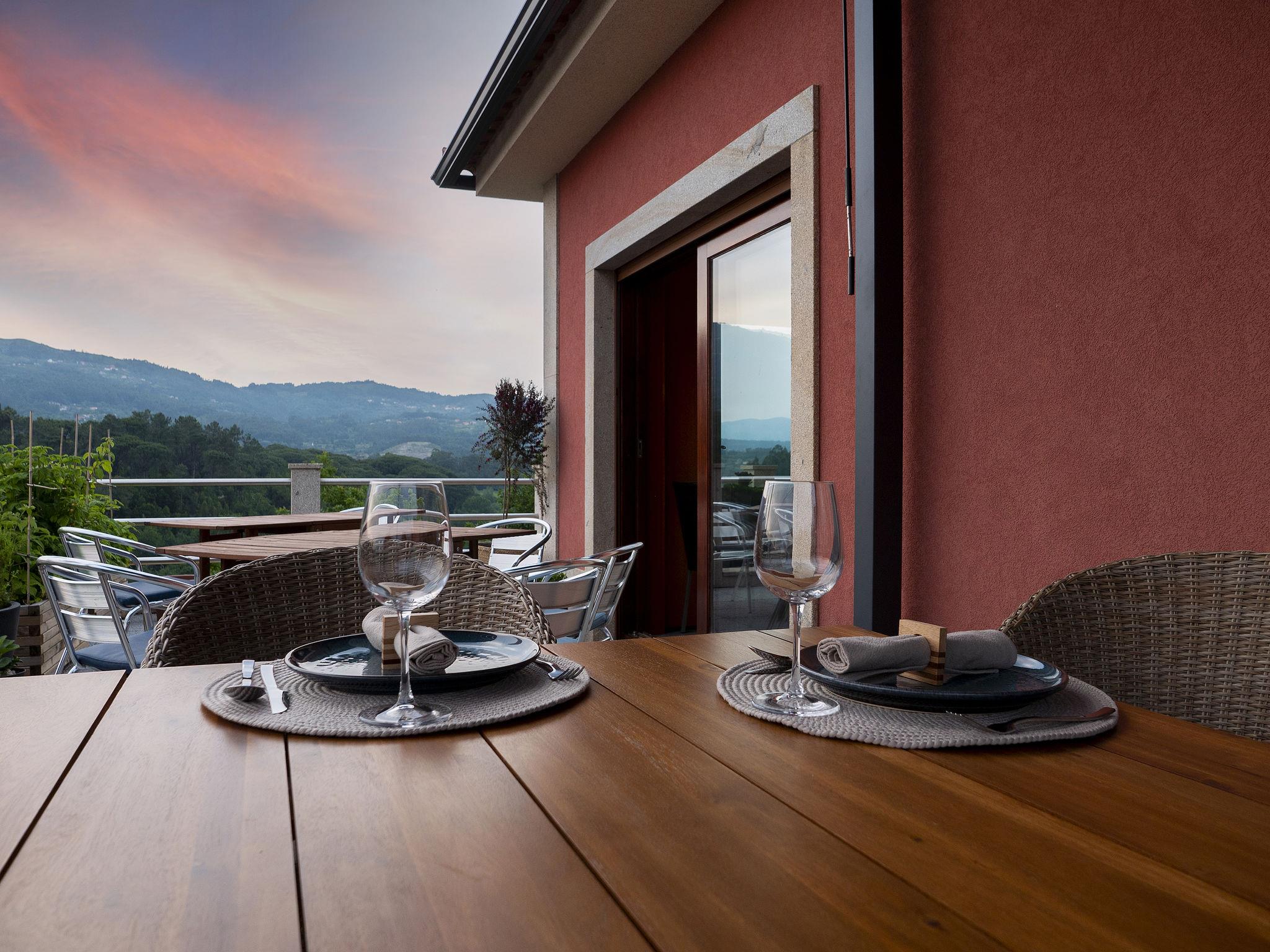 Very cosy, comfortable villa "Rio Lima Retreat", 2 storeys, detached, built in 2011, surrounded by trees and fields. Outside the resort, 6.6 km from the centre of Ponte de Lima, in a quiet position residential area (villas), 200 m from the river. Private: swimming pool angular (3 x 9 m, depth 80 - 150 cm, seasonal availability: 01.Apr. - 31.Oct.). Arbour, garden furniture. In the house: WiFi, washing machine. Parking at the house. Grocery 700 m, supermarket 5.6 km, shopping centre 9.5 km, restaurant, bakery 700 m, café 750 m, bicycle rental 6.2 km, bus stop 6.9 km, sandy beach "Praia fluvial Ponte de Lima" 8.9 km. Surf school 33.7 km, riding stable 8.1 km, children's playground 8.2 km. Nearby attractions: Braga Se cathedral 45 km, Golf Ponte de Lima 13 km, Castelo da Nóbrega, Ponte da Barca 22.9 km, Cascatas 12.9 km, Vigo Airport 65 km, Ponte da Barca, R. Rio Lima 11.6 km. Please note: car recommended. Suitable for families. Loading and unloading of baggage is possible at the holiday house. The owners offer additional services on demand like chef/catering service, yoga classes, massages, kayak/cycling, hiking excursions/tours.
