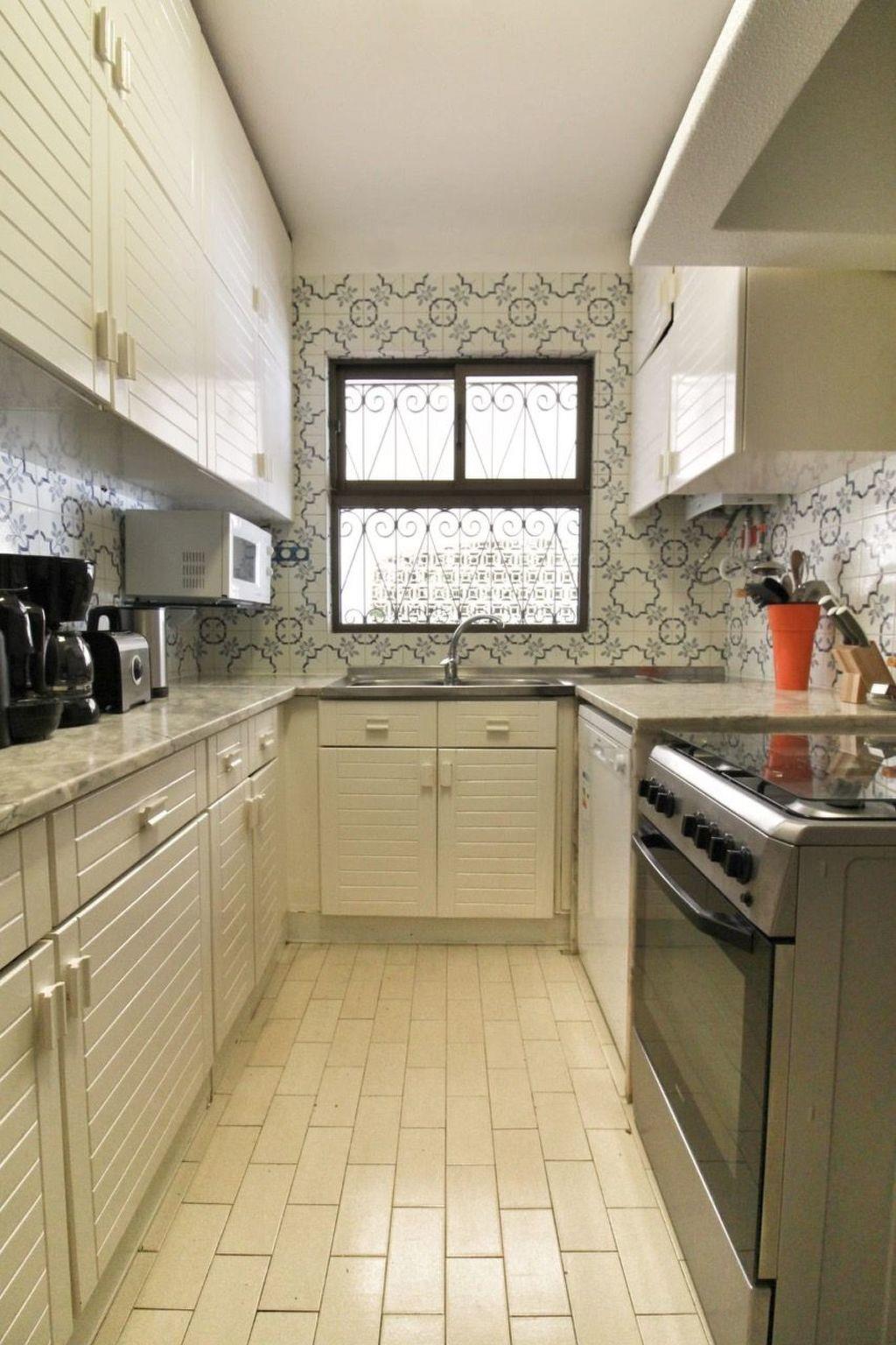 Furnishing in typical old portugiese style but very clean with privat car-board, rooftop and small garden.