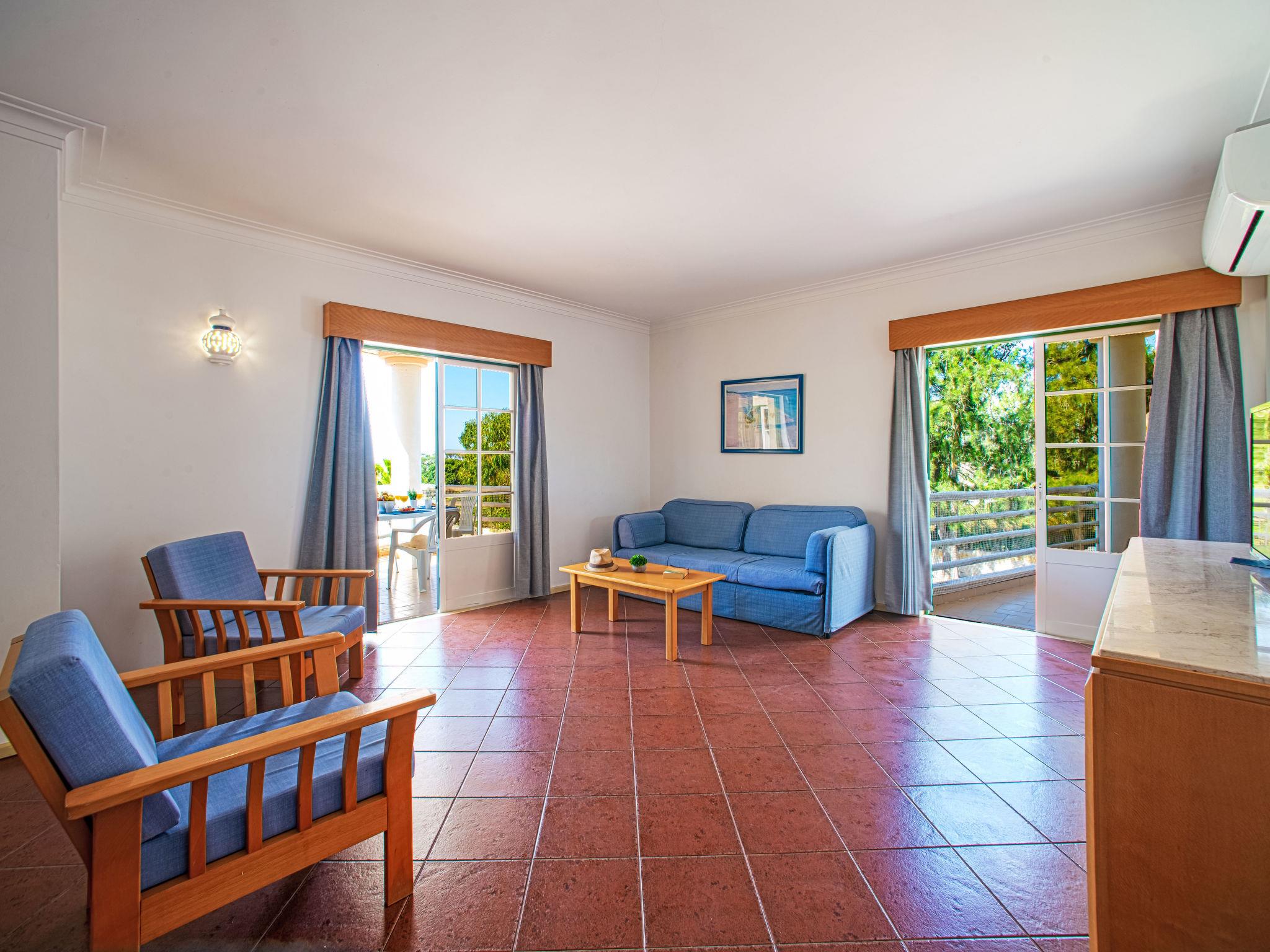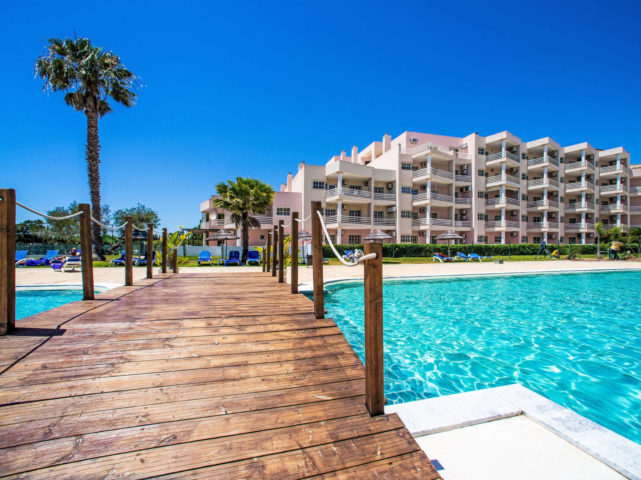 Praia Do Vau 2 km from Praia da Rocha: Modern aparthotel "Estrela do Vau - Private.", built in 1996. 174 apartments in the property. Below Alto Golf Course, on top of a hill, 500 m from the sea. For shared use: beautiful garden to relax, 2 swimming pools (seasonal availability: 01.Jan. - 31.Dec.). Children's pool, tennis, garden furniture, children's playground. In the complex: reception, bar, lounge, billiard table, kiosk, lift, air conditioning, laundry. Central parking spaces. Shop 1 km, supermarket 2 km, shopping centre 3 km, restaurant 100 m, bar 500 m, bus stop 650 m, sandy beach 500 m, thermal baths 20 km. Golf course (18 hole), minigolf 50 m. Nearby attractions: Praia Da Rocha 2 km, Alvor 2 km, Portimão 2 km, Albufeira 40 km, Monchique 20 km, Faro 60 km. Please note: entertainment. Groups of teenagers on request only. Additional accommodations can be booked.