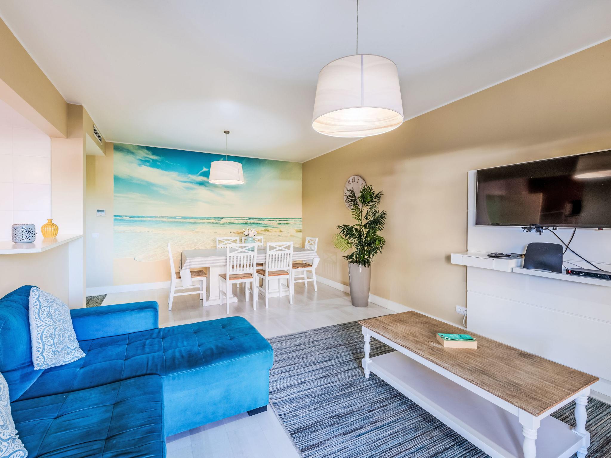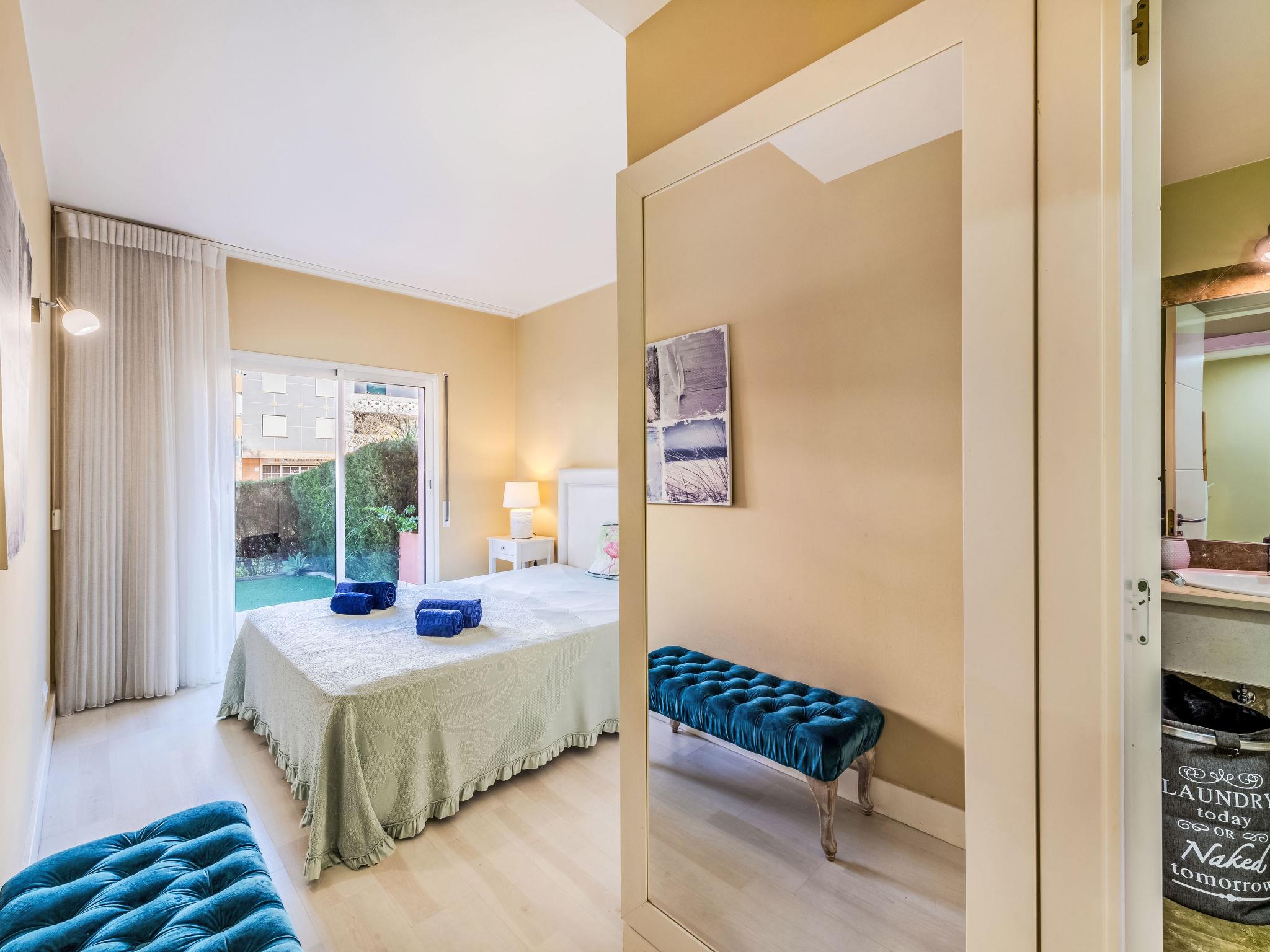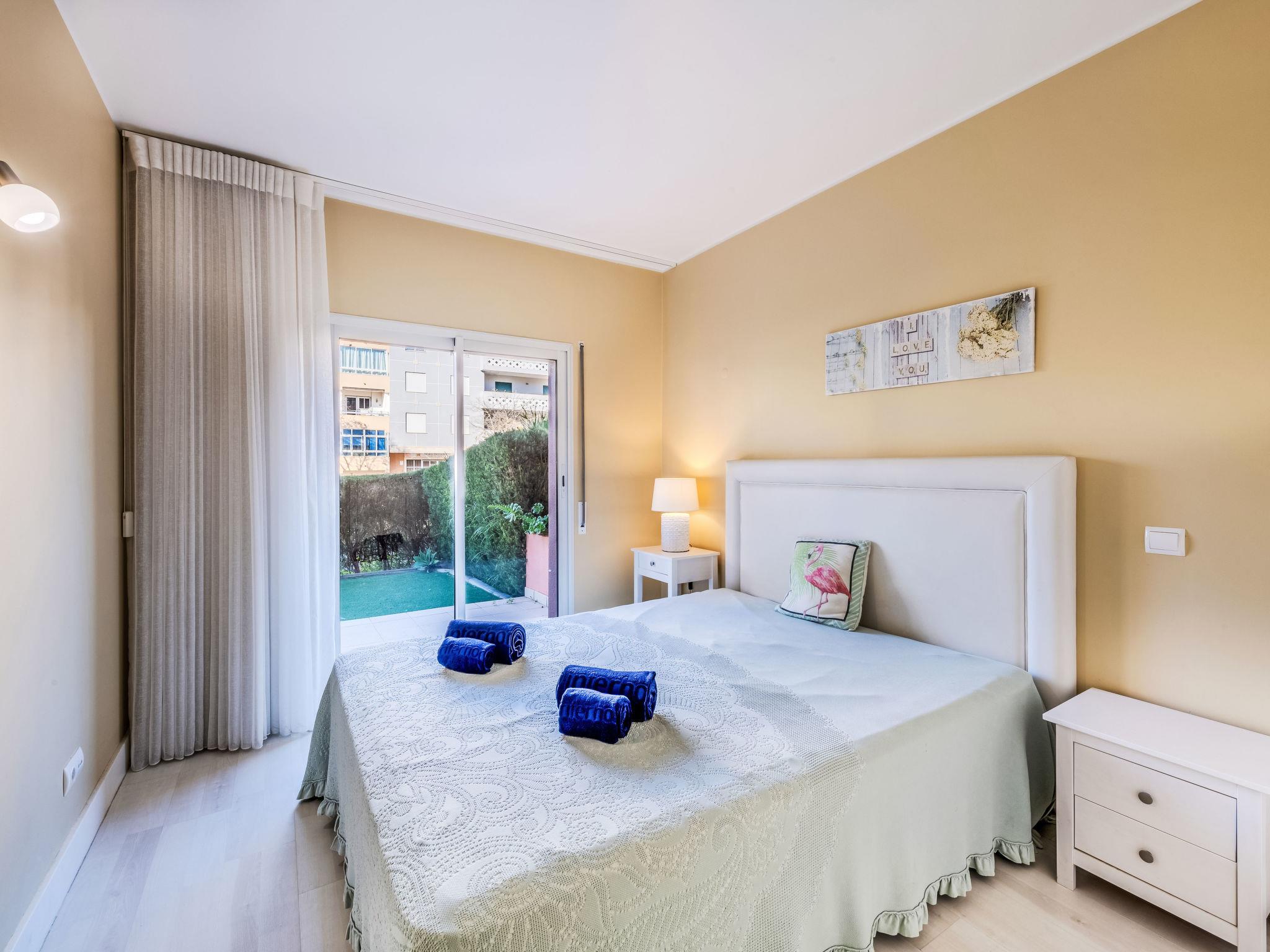 "Lux Rocha", 3-room apartment 85 m2, on the ground floor. Very modern and cosy furnishings: living/dining room with cable TV, flat screen, air conditioning and forced-air heating. Exit to the garden, to the terrace. 1 room with 2 beds (90 cm, length 200 cm), air conditioning and forced-air heating. 1 room with 1 french bed (160 cm, length 200 cm), hip bath/WC, air conditioning and forced-air heating. Kitchenette (oven, dishwasher, 4 ceramic glass hob hotplates, toaster, kettle, microwave, freezer, electric coffee machine) with dining table. Shower/WC. Terrace furniture, electric barbecue, deck chairs. View of the garden. Facilities: washing machine, iron, children's high chair, baby cot for up to 2 year olds, hair dryer. Internet (WiFi, free). Garage space n rc 5. Please note: suitable for families. Fire extinguisher. 62163/AL