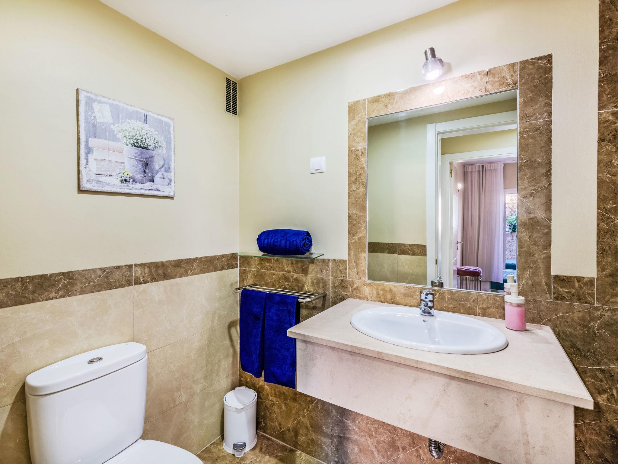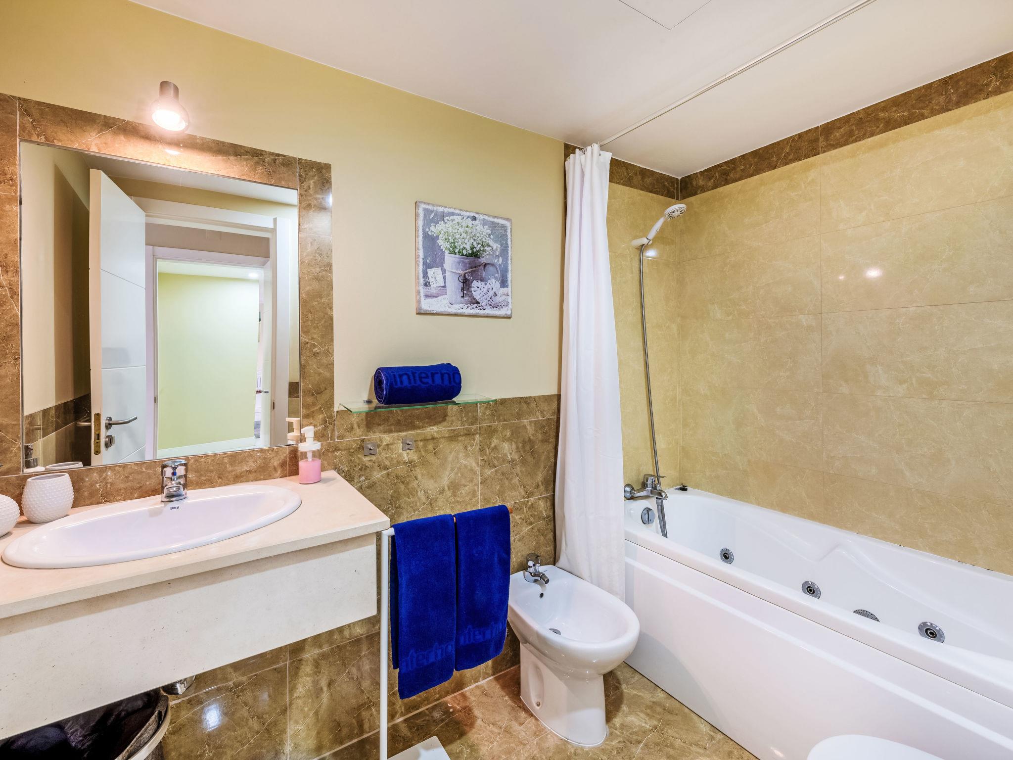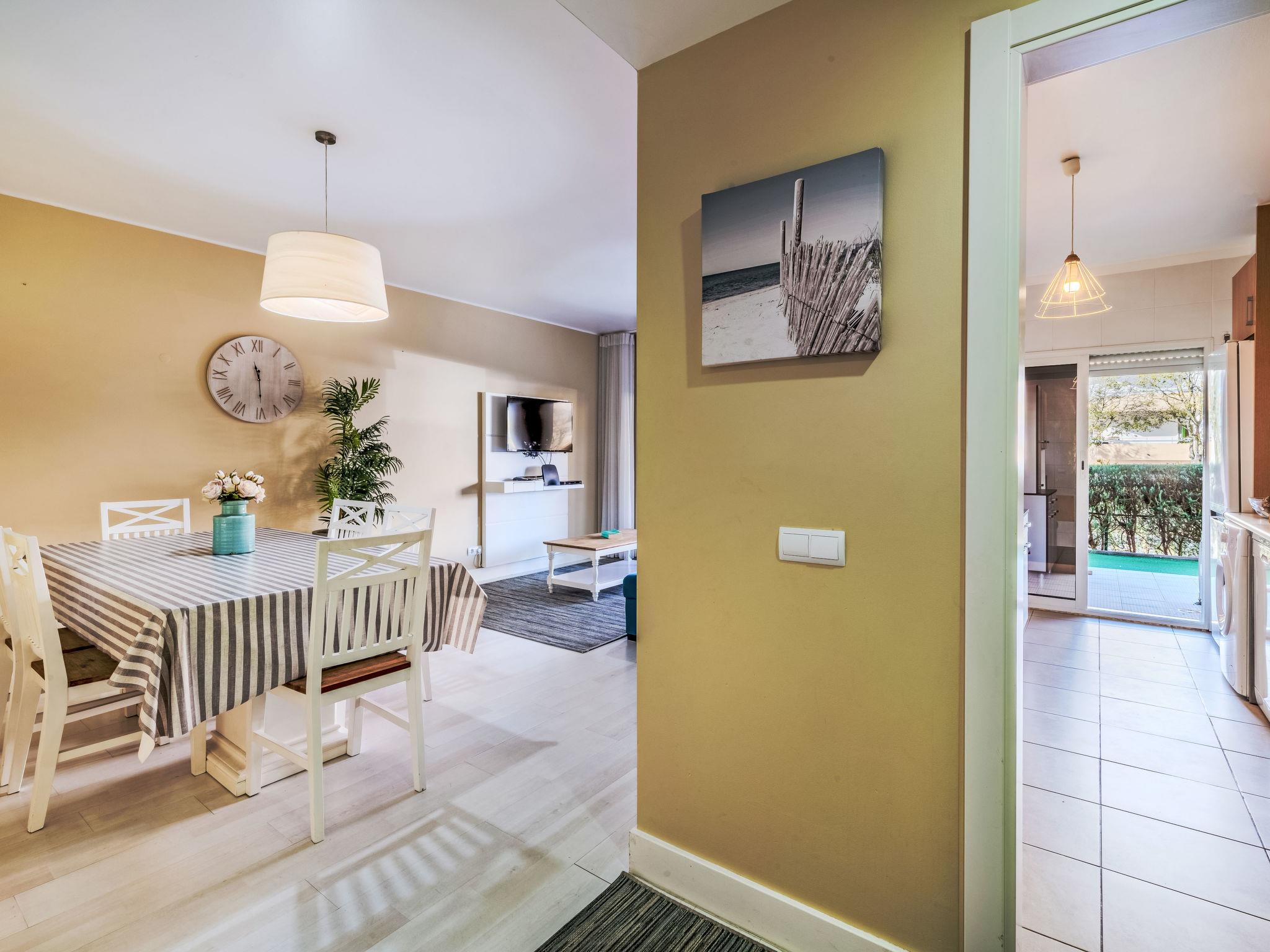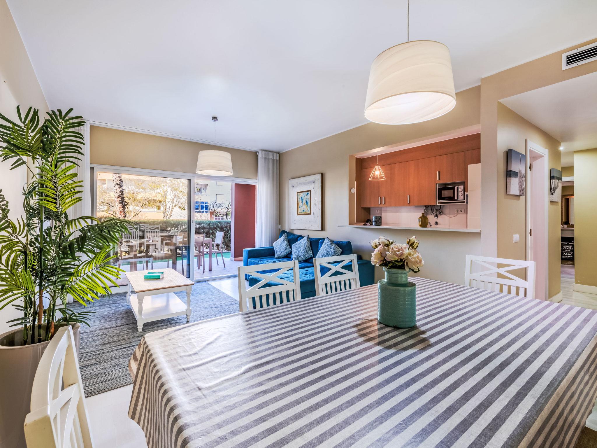 "Lux Rocha", 3-room apartment 85 m2, on the ground floor. Very modern and cosy furnishings: living/dining room with cable TV, flat screen, air conditioning and forced-air heating. Exit to the garden, to the terrace. 1 room with 2 beds (90 cm, length 200 cm), air conditioning and forced-air heating. 1 room with 1 french bed (160 cm, length 200 cm), hip bath/WC, air conditioning and forced-air heating. Kitchenette (oven, dishwasher, 4 ceramic glass hob hotplates, toaster, kettle, microwave, freezer, electric coffee machine) with dining table. Shower/WC. Terrace furniture, electric barbecue, deck chairs. View of the garden. Facilities: washing machine, iron, children's high chair, baby cot for up to 2 year olds, hair dryer. Internet (WiFi, free). Garage space n rc 5. Please note: suitable for families. Fire extinguisher. 62163/AL