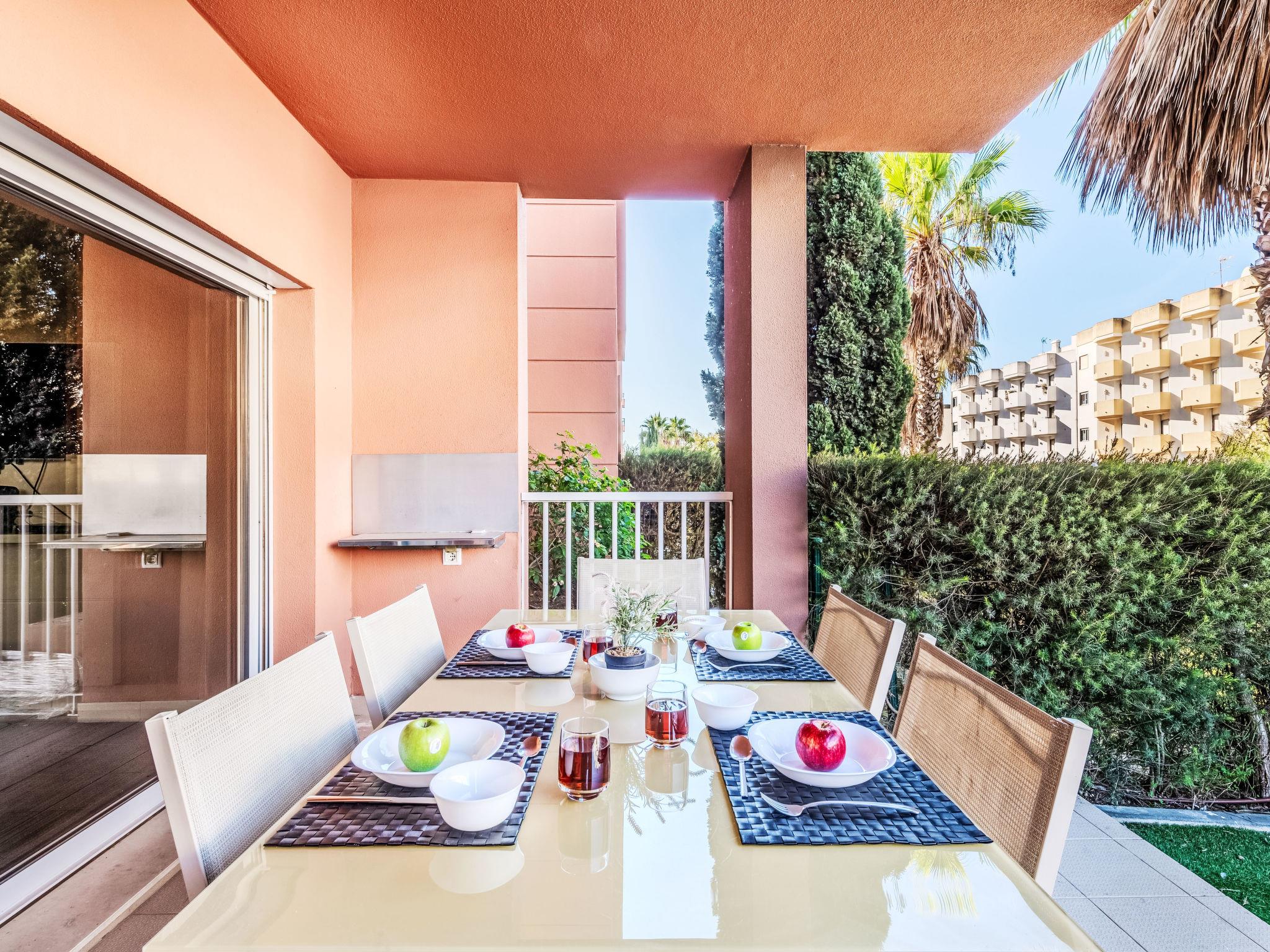 Very modern, cosy apartment block "Lux Rocha", built in 2010. Outside the resort, 1.7 km from the centre of Praia da Rocha, in the district Portimão, 350 m from the sea. For shared use: swimming pool (8 x 5 m, depth 90 - 190 cm, seasonal availability: 15.Apr. - 20.Oct.). Unconventional pool shape. Private: beautiful garden to relax. Terrace, garden furniture. In the house: WiFi, lift, air conditioning, washing machine. Parking, communal covered parking space n rc 5. Shop 1.4 km, grocery 200 m, supermarket 450 m, shopping centre 1.4 km, restaurant 400 m, bar 500 m, bakery 500 m, café 500 m, pedestrian zone 1 km, sandy beach "Praia dos 3 Castelos" 350 m, diving center 2.5 km. Marina 2.7 km, golf course (18 hole) 3 km, surf school 2.3 km, tennis 2 km, minigolf 6.3 km, riding stable 9.8 km, children's playground 3.2 km. Nearby attractions: Aeródromo Municipal de Portimão 5.9 km, Museu de Portimão 2.6 km, Slide & Splash 9.3 km, Ria de Alvor 6.4 km, Praia da Rocha 1.7 km, Bowling de Portimão 800 m. Hiking paths: Parque da Juventude 1.5 km, Algarve Jeep Safari Tours 400 m. Please note: car recommended. Suitable for families. The owner does not accept any youth groups. Loading and unloading of baggage is possible at the holiday house.