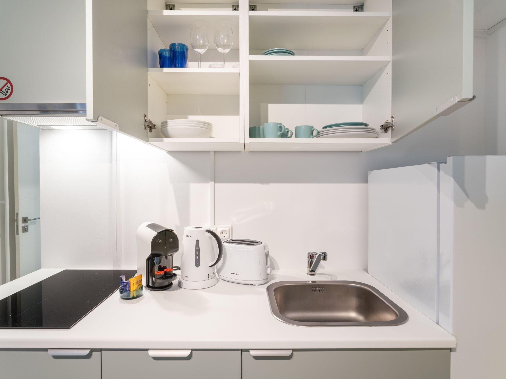 The kitchen is also equipped with modern crockery and kitchen utensils.