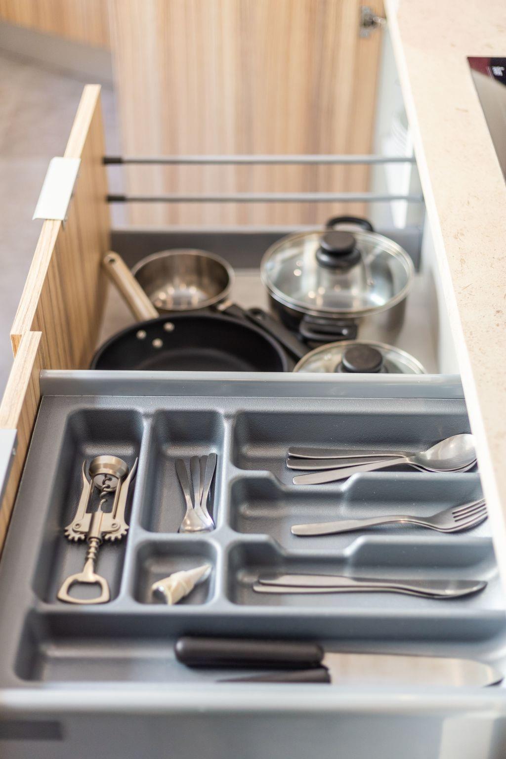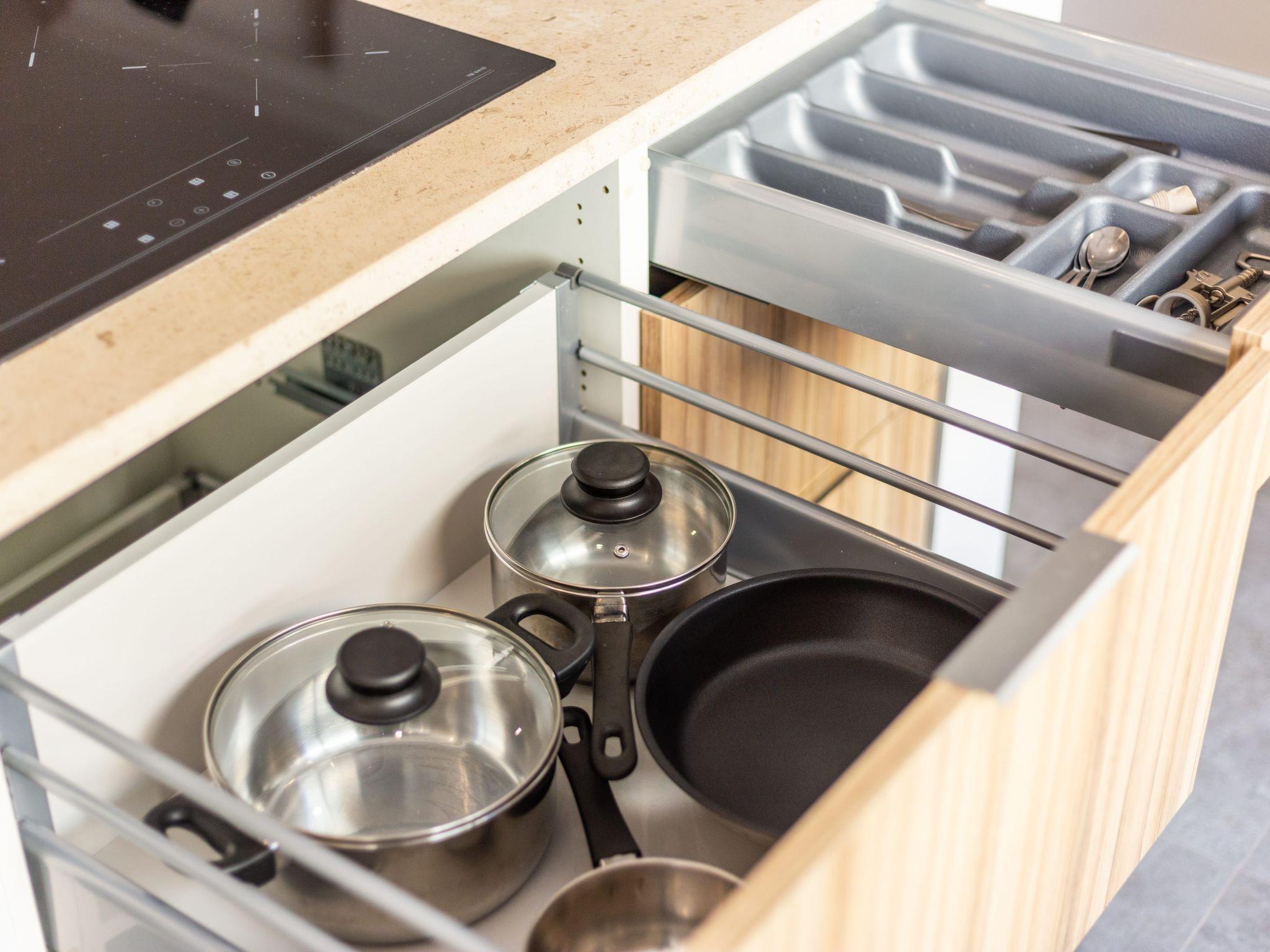 The kitchen is also equipped with modern crockery and kitchen utensils.