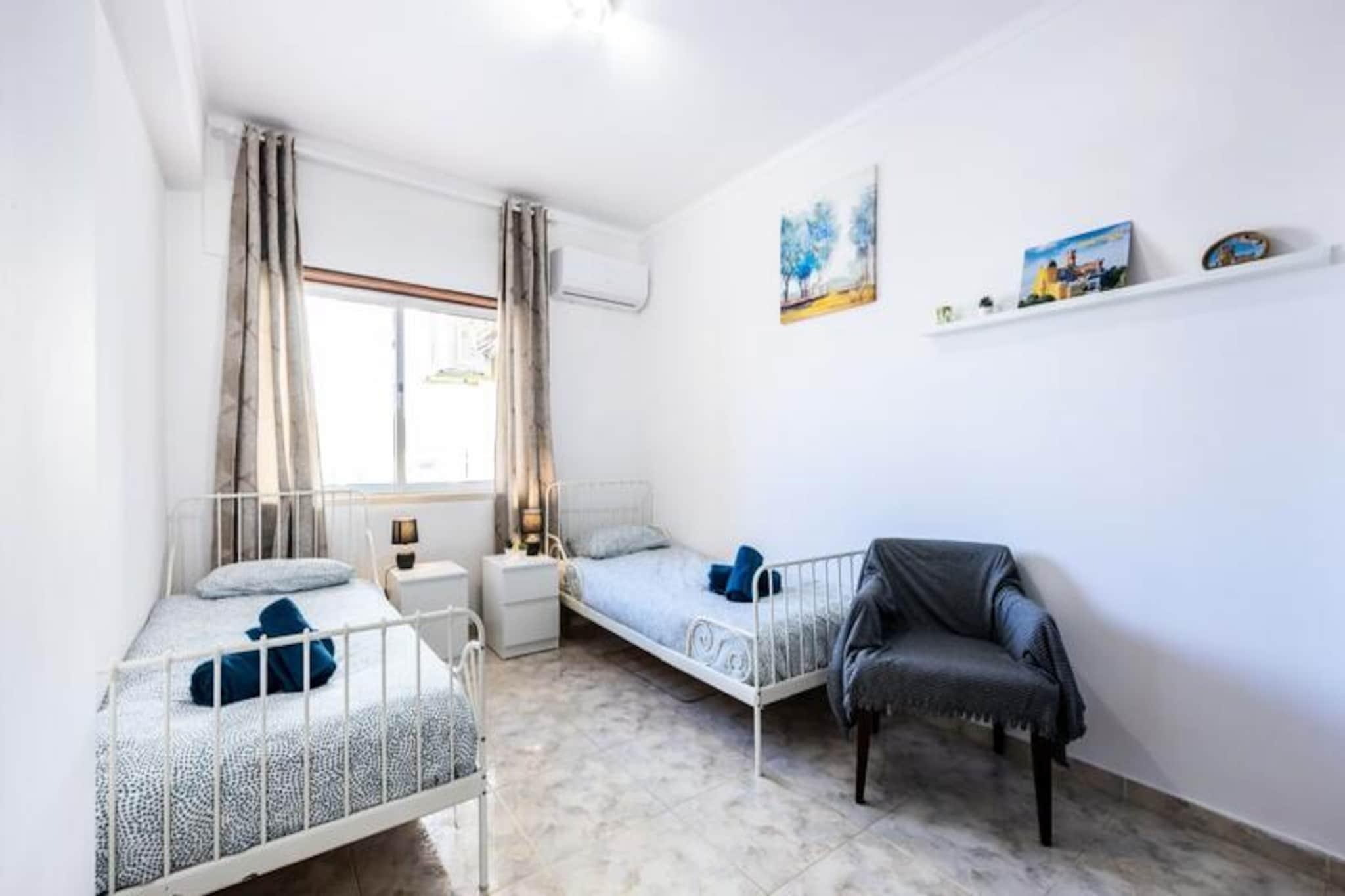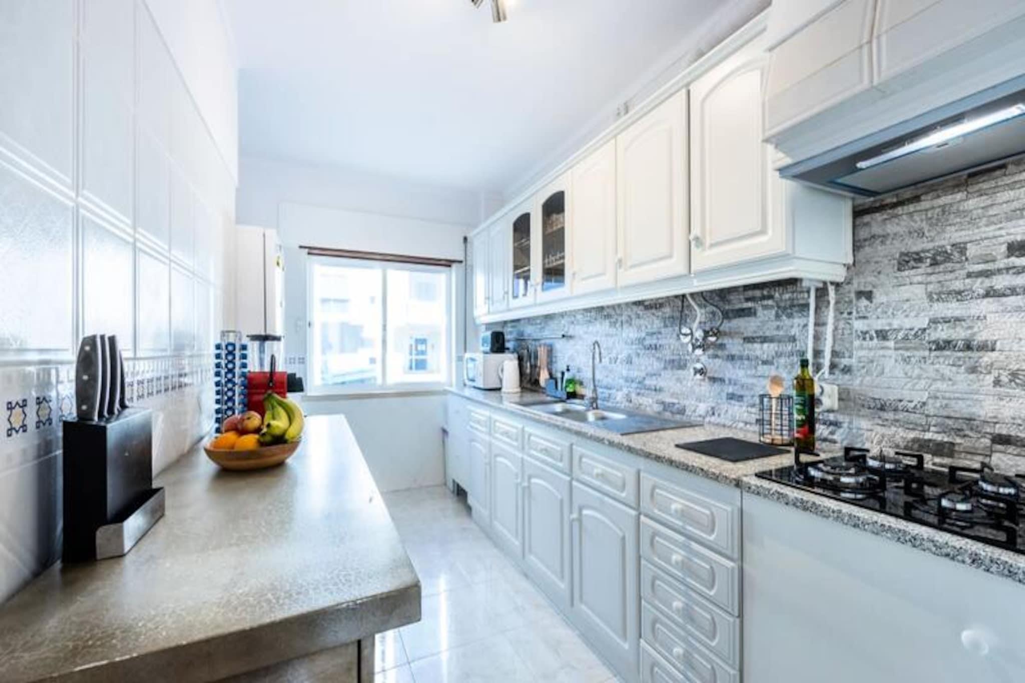 I hjertet af Algarve tilbyder denne smukt renoverede 3-værelses lejlighed et fredfyldt tilflugtssted kun en kort gåtur fra den historiske charme i Portimão. Forestil dig at vågne op til det bløde sollys, der strømmer ind gennem de store vinduer, træde ud i et roligt boligkvarter og mærke den blide havbrise, mens du planlægger din dag. Uanset om du er her for at udforske de brostensbelagte gader i den gamle bydel, slappe af på gyldne strande eller nyde det lokale køkken, er denne lejlighed det perfekte udgangspunkt for dine eventyr. Lejligheden er omhyggeligt renoveret i 2022 og kombinerer moderne komfort med traditionel portugisisk charme. Den har plads til op til seks gæster fordelt på tre lyse soveværelser: et master bedroom med queensize-seng, et børneværelse med to enkeltsenge og et fleksibelt værelse med to enkeltsenge, hvor sengene kan sættes sammen. To badeværelser, det ene med badekar og det andet med bruser, sikrer bekvemmelighed for familier eller grupper. Det fuldt udstyrede køkken indbyder til at tilberede måltider med friske lokale råvarer, mens den hyggelige stue med Wi-Fi og tv giver plads til at slappe af efter en dag med udforskning. Sengelinned, håndklæder og rigelig gratis parkering på gaden er alt sammen til rådighed for din bekvemmelighed. Beliggende kun 15 minutters gang fra Portimãos livlige marina og historiske centrum finder du alt, hvad du har brug for, inden for rækkevidde. Gå en tur til de nærliggende supermarkeder eller nyd en kort køretur til Aqua Shopping Mall for et større udvalg. Den fantastiske strand Praia da Rocha ligger også inden for gåafstand og byder på blødt sand og krystalklart vand. For dem, der søger eventyr, byder området på vandsport, vandrestier og golfbaner i verdensklasse. Faro Lufthavn ligger kun 40 minutters kørsel derfra, hvilket gør din ankomst og afrejse problemfri. Uanset om du er her for at nyde solen, udforske Algarves naturlige skønhed eller fordybe dig i den portugisiske kultur, tilbyder denne lejlighed et roligt og velforbundet fristed, hvor du kan skabe uforglemmelige minder.