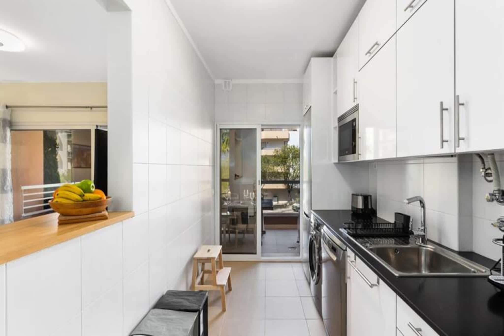 Forestil dig at vågne op til bølgernes blide lyd og Algarves varme sol. Denne luksuriøse lejlighed i Portimão tilbyder den perfekte blanding af komfort, stil og bekvemmelighed, hvilket gør den til et ideelt fristed for familier eller vennegrupper. Beliggende kun en kort gåtur fra det gyldne sand på Praia dos Três Castelos, er dette din indgang til en drømmeferie ved havet. Træd indenfor og oplev et rum designet med afslapning for øje. Lejligheden har to elegant indrettede soveværelser, hver med bløde dobbeltsenge, der sikrer en god nats søvn. En komfortabel sovesofa i stuen giver ekstra soveplads til ekstra gæster. Med to moderne badeværelser – det ene med badekar og det andet med bruser – kan alle nyde privatliv og komfort. Det fuldt udstyrede køkken indbyder til at tilberede lækre måltider, mens den rummelige stue med aircondition er perfekt til at slappe af efter en dag fuld af eventyr. Træd ud på den private altan for at nyde et måltid eller bare nyde den fredfyldte atmosfære. Ejendommens fælles pool er en forfriskende oase, og stranden ligger kun 3 minutters gang derfra og byder på uendelige muligheder for solbadning, svømning og vandsport. Privat underjordisk parkering sikrer din bils sikkerhed, mens nærliggende supermarkeder, restauranter og konditorier tilbyder alt, hvad du har brug for til et problemfrit ophold. For dem, der søger eventyr, ligger Portimãos livlige gamle bydel, den berømte Praia da Rocha og attraktioner som Slide and Splash vandland og Zoomarine inden for rækkevidde. Uanset om du er her for at slappe af, udforske eller nyde det lokale køkken, er denne lejlighed det perfekte udgangspunkt. Book nu, og lad Portimãos magi skabe minder, der varer hele livet.