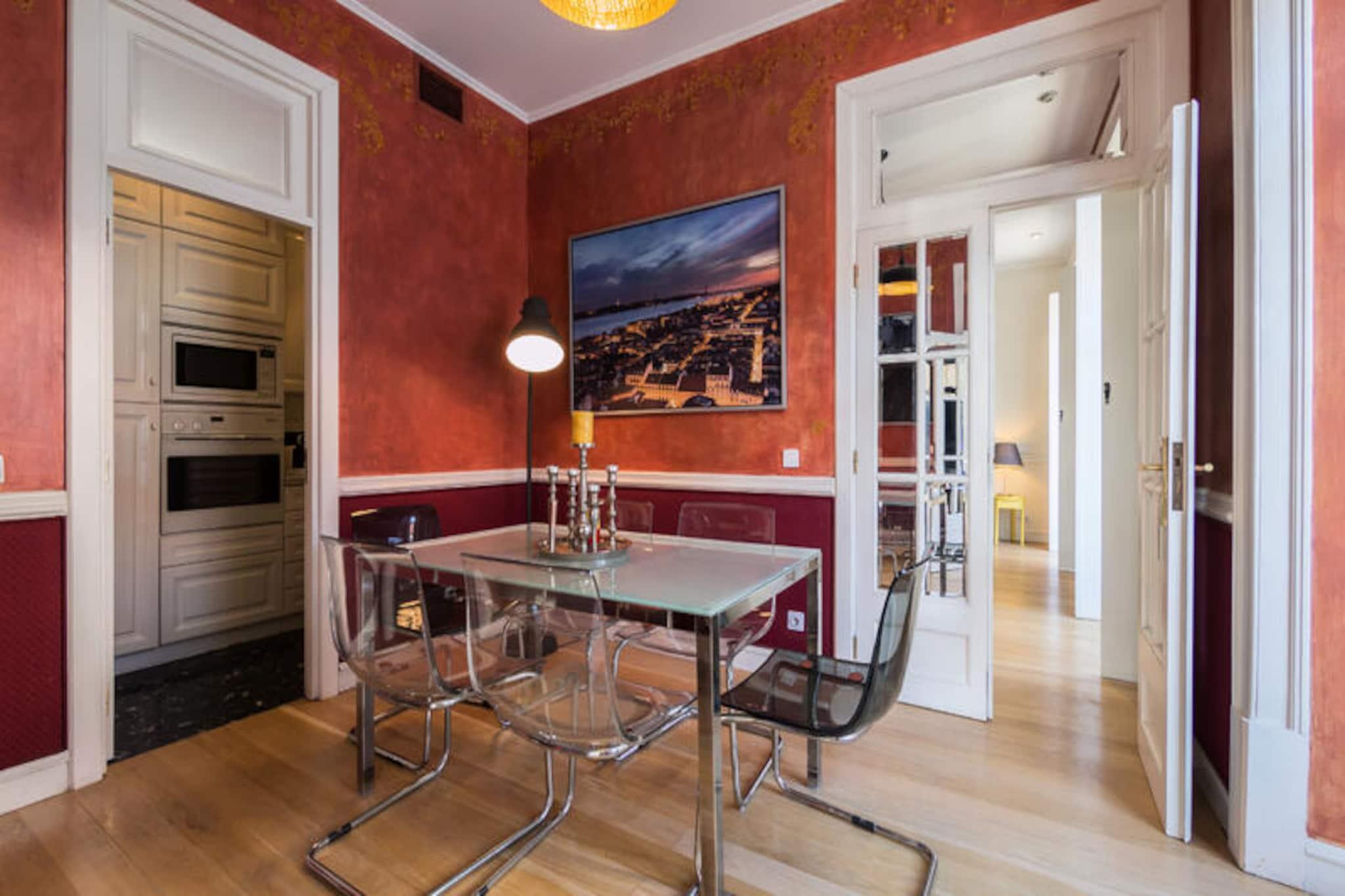 I hjertet af Lissabons pulserende Chiado-distrikt tilbyder denne charmerende lejlighed et roligt tilflugtssted midt i byens travle energi. Med sin førsteklasses beliggenhed kun få skridt fra ikoniske vartegn, historiske caféer og den livlige Baixa-Chiado metrostation inviterer denne ejendom dig til at fordybe dig i den autentiske rytme af Lissabons liv. Uanset om du slentrer langs brostensbelagte gader eller nyder den nærliggende udsigt over Tagus-floden, er hvert øjeblik her gennemsyret af byens rige kultur og charme. Lejligheden er på 102 m² og er omhyggeligt designet til at tilbyde både komfort og stil. Det rummelige soveværelse har plads til to gæster, hvilket gør det til et ideelt valg for par eller solorejsende, der søger en hyggelig, men elegant base. Det separate køkken er fuldt udstyret med moderne apparater, herunder keramisk kogeplade, køleskab, ovn og opvaskemaskine, hvilket sikrer, at du nemt kan tilberede måltider. Yderligere faciliteter såsom Wi-Fi, satellit-tv på flere sprog, vaskemaskine og tørretumbler bidrager til bekvemmeligheden under dit ophold. Den smagfulde indretning og det naturlige lys, der strømmer ind gennem vinduerne, skaber en varm og indbydende atmosfære. Træd udenfor, og du vil være omgivet af Lissabons mest elskede attraktioner. Nyd en kop kaffe på den historiske Café A Brasileira, udforsk den botaniske have kun en kort gåtur væk, eller nyd lokale retter på nærliggende restauranter som Oficina do Duque. For dem, der ønsker at udforske byen længere, giver Cais do Sodré station nem adgang til byens havnefront og omegn. Det pulserende natteliv, butikker og kulturelle vartegn i Chiado ligger alle lige uden for døren. Uanset om du er her for at udforske Lissabons historiske charme, nyde dens kulinariske lækkerier eller blot slappe af i en smukt indrettet lejlighed, tilbyder denne ejendom den perfekte blanding af beliggenhed, komfort og stil. Skab uforglemmelige minder i en af ??Europas mest fortryllende byer.