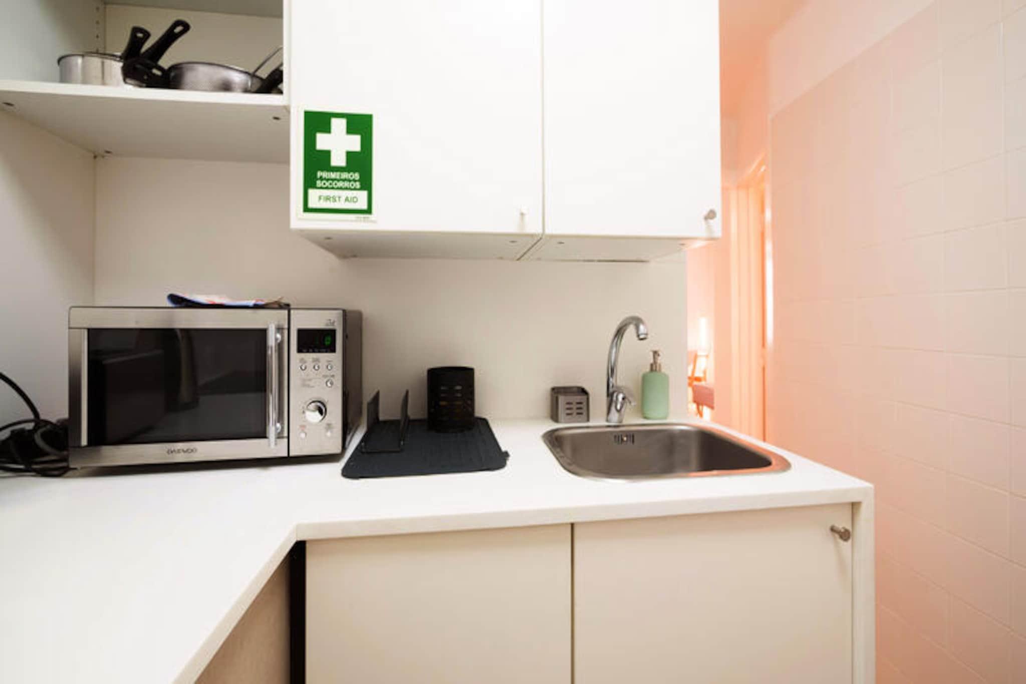 Midt i Lissabons pulserende gader tilbyder denne charmerende lejlighed med et soveværelse et hyggeligt tilflugtssted for to i hjertet af byen. Med sit moderne design og indbydende atmosfære er dette 30 m² store rum perfekt til par eller solorejsende, der søger en blanding af komfort og bekvemmelighed. Lejligheden ligger i et livligt kvarter, hvor Alfamas rige historie møder den kosmopolitiske energi i Baixa Chiado, hvilket sikrer en uforglemmelig Lissabon-oplevelse. Indenfor er lejligheden omhyggeligt designet til at give alt det nødvendige for et afslappende ophold. Soveværelset har en komfortabel seng, mens opholdsstuen inviterer dig til at slappe af efter en dag med udforskning. Det separate køkken, udstyret med keramisk kogeplade, køleskab, mikrobølgeovn og mere, giver dig mulighed for nemt at tilberede måltider. Yderligere faciliteter inkluderer aircondition, Wi-Fi, satellit-tv og en hårtørrer, hvilket sikrer et behageligt og problemfrit ophold. Træd udenfor, og du vil være omgivet af Lissabons mest ikoniske attraktioner. Gå en tur til det nærliggende Alfama-distrikt, kendt for sine smalle gader og traditionelle Fado-musik, eller nyd en kop kaffe på den historiske Café A Brasileira. Jardim Botânico de Lisboa og den naturskønne Rio Tejo ligger kun en kort gåtur væk og tilbyder fredfyldte tilflugtssteder midt i byens travlhed. Med metrostationen Baixa Chiado og togstationen Santa Apolónia inden for rækkevidde er det nemt at udforske området længere væk. Uanset om du er her for at fordybe dig i Lissabons kulturskatte, nyde dens kulinariske lækkerier eller blot slappe af i et stilfuldt byparadis, er denne lejlighed den perfekte base for dit portugisiske eventyr.