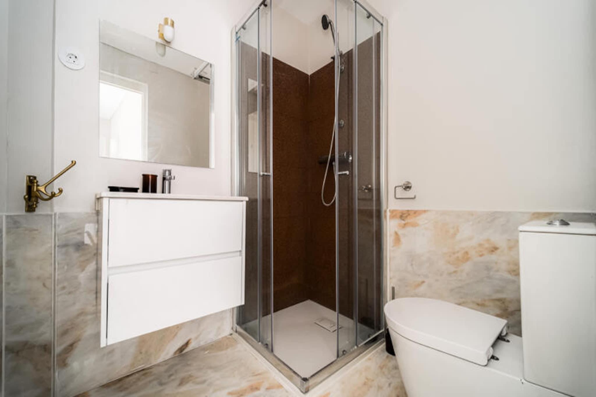 I hjertet af Portos pulserende bybillede tilbyder denne charmerende lejlighed et roligt tilflugtssted midt i Santo Ildefonsos livlige gader og historiske charme. Forestil dig at vågne op til byens blide summen, gå ud og udforske de brostensbelagte gyder og vende tilbage til en rummelig, komfortabel oase, der føles som hjemme. Uanset om du er her for at nyde kulturen, nyde maden eller blot slappe af, er denne lejlighed din perfekte base. \n\nLejligheden er på 100 m² og har komfortabel plads til op til seks gæster fordelt på tre veludstyrede soveværelser. Interiøret er omhyggeligt designet og blander moderne bekvemmeligheder med hyggelige detaljer for at sikre et afslappende ophold. Det separate køkken er fuldt udstyret med induktionskogeplade, køleskab, mikrobølgeovn, ovn og mere, hvilket gør det nemt at tilberede måltider med friske ingredienser fra det nærliggende Mercado do Bolhão. Yderligere bekvemmeligheder såsom vaskemaskine, tørretumbler, Wi-Fi og elektrisk opvarmning bidrager til komforten, mens opholdsstuen inviterer dig til at slappe af med en god bog eller et yndlingsprogram på fjernsynet. \n\nTræd udenfor, og du vil være omgivet af Portos bedste attraktioner. Kun en kort gåtur væk venter den ikoniske São Bento Station og den maleriske Douro-flod, der tilbyder en fantastisk udsigt og uforglemmelige øjeblikke. Kulinariske lækkerier findes i overflod med et udvalg af restauranter og caféer i nærheden, herunder den berømte Restaurante Cunha og Negra Café Baixa. For dem, der søger en smagsprøve på det lokale liv, er det travle Mercado do Bolhão og de charmerende gader i Santo Ildefonso lige uden for døren. \n\nUanset om du udforsker det historiske Ribeira-distrikt, begiver dig ud til sandstrandene ved Matosinhos-stranden eller opdager den naturlige skønhed i Peneda-Gerês Nationalpark, placerer denne lejlighed dig i hjertet af det hele. Oplev magien i Porto, hvor hvert hjørne fortæller en historie, og hvert øjeblik føles som et minde under skabelse.