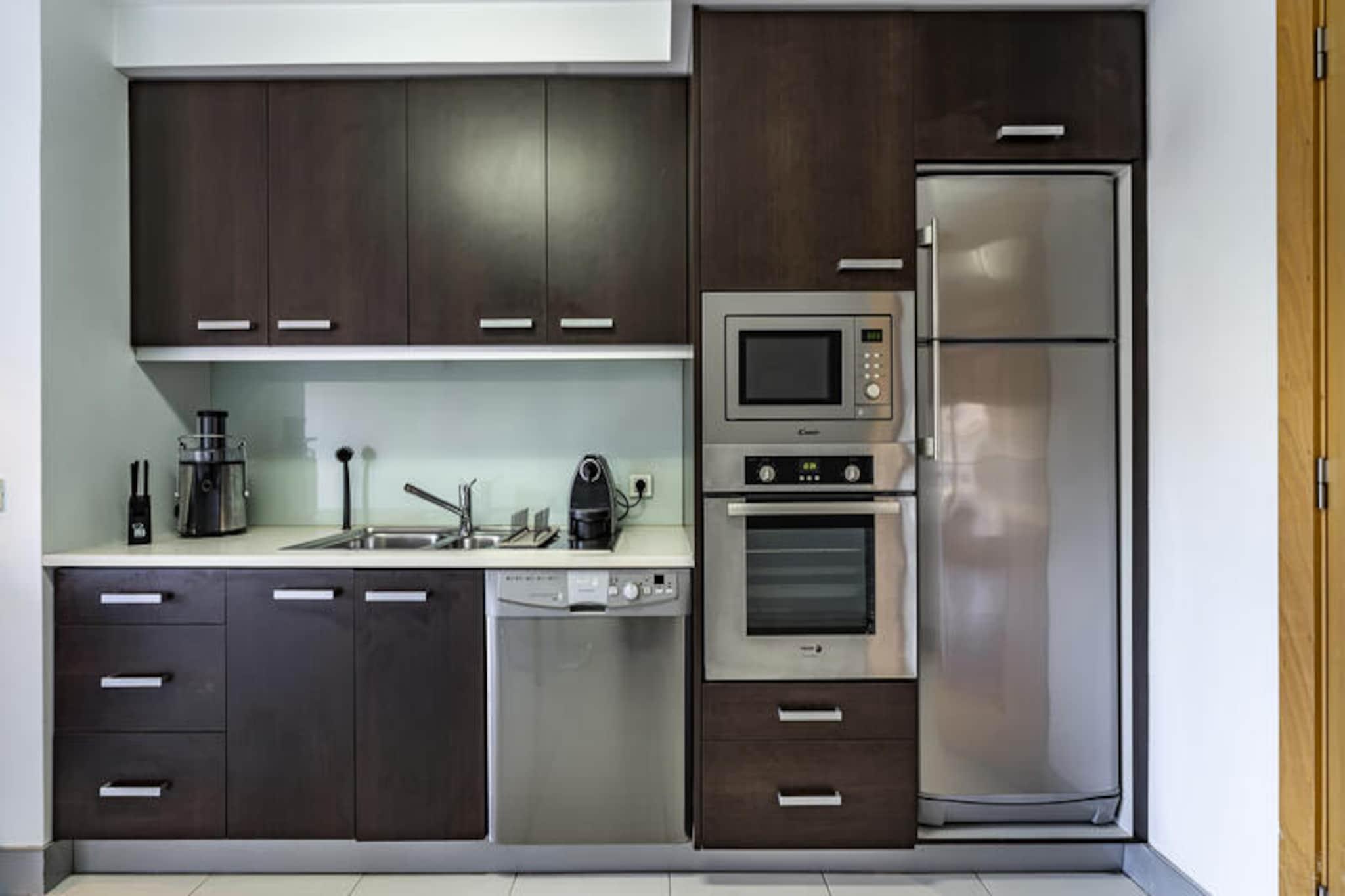 I hjertet af Vila Nova de Gaia, hvor charmen fra traditionel portugisisk kultur møder moderne byliv, tilbyder denne stilfulde lejlighed et roligt tilflugtssted for to. Med sit moderne design og gennemtænkte faciliteter er det den perfekte base for at udforske de pulserende omgivelser og fordybe dig i den rige historie i det nordlige Portugal. Uanset om du er her for en romantisk ferie eller en fredelig byflugt, inviterer denne ejendom dig til at slappe af og koble fra i komfort. Lejligheden er på 80 kvadratmeter og er både rummelig og hyggelig med et lyst soveværelse, et fuldt udstyret induktionskøkken og en komfortabel opholdsstue med satellit-tv og Wi-Fi. Den private terrasse er et ideelt sted at nyde din morgenkaffe eller et glas vin, mens solen går ned over byen. Yderligere bekvemmeligheder inkluderer en vaskemaskine, strygejern, hårtørrer og en garage i bygningen, hvilket sikrer et problemfrit ophold. Lejlighedens moderne møbler og rene linjer skaber en indbydende atmosfære, der får den til at føles som et hjem væk fra hjemmet. Træd udenfor, og du vil være omgivet af et væld af attraktioner. Tag en tur til den nærliggende Jardim de Soares dos Reis eller Jardim do Morro for en fredelig flugt ud i naturen. Den ikoniske Douro-flod ligger kun 3 km væk og byder på malerisk udsigt og spisesteder ved floden. For dem, der elsker havet, ligger Madalena-stranden kun 5 km væk, mens den charmerende Miramar-strand og golfbane kun ligger en kort køretur væk. Fremragende transportforbindelser, herunder Devesas-togstationen og General Torres-metrostationen, gør det nemt at udforske Portos historiske centrum, lige på den anden side af floden. Uanset om du nyder lokale delikatesser på nærliggende restauranter, udforsker det pulserende bybillede eller blot nyder komforten i dette moderne tilflugtssted, lover denne lejlighed i Vila Nova de Gaia et uforglemmeligt ophold i en af ??Portugals mest betagende regioner.