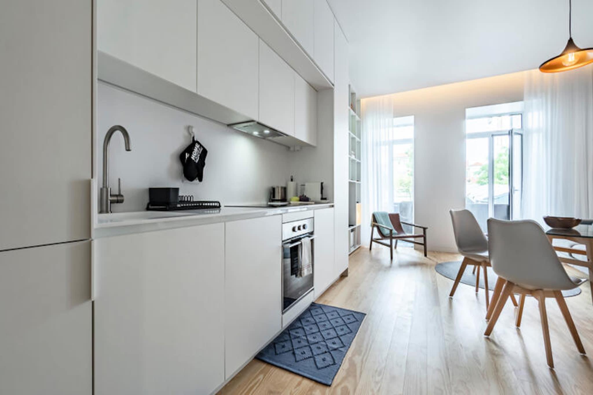 I hjertet af Porto, hvor brostensbelagte gader møder det moderne bylivs blide summen, tilbyder denne stilfulde studiolejlighed et fredfyldt tilflugtssted for to. Med sin rolige udsigt over haven og centrale beliggenhed er det den perfekte blanding af urban bekvemmelighed og fredfyldt charme. Uanset om du er her for at udforske Portos historiske skatte eller blot slappe af, er dette hyggelige tilflugtssted en ideel base. Træd ind i denne smukt designede 52 m² store studiolejlighed og oplev et rum, der føles både moderne og indbydende. Lejligheden er udstyret med alt det nødvendige for at gøre dit ophold behageligt, herunder aircondition, Wi-Fi, fladskærms-tv med satellitkanaler på flere sprog og et fuldt udstyret åbent køkken med keramisk kogeplade, opvaskemaskine og kaffemaskine. Altanen indbyder til at nyde en stille morgenkaffe eller et glas vin om aftenen, mens du kigger ud over det frodige grønne landskab nedenfor. Gennemtænkte detaljer som vaskemaskine, strygejern og hårtørrer sikrer en problemfri oplevelse. Beliggende i et roligt, men centralt område, befinder du dig inden for rækkevidde af Portos ikoniske vartegn, livlige markeder og charmerende caféer. Tag en afslappet spadseretur til Ribeira-kvarteret, beundre de fantastiske azulejo-fliser på São Bento Station, eller nyd et glas portvin ved Douro-floden. For dem, der søger en blanding af kultur, gastronomi og afslapning, er denne studiolejlighed din indgang til det bedste af Porto. Uanset om du er et par på en romantisk ferie eller en solo-rejsende på jagt efter inspiration, tilbyder denne lejlighed en perfekt blanding af komfort og beliggenhed, der inviterer dig til at skabe uforglemmelige minder i en af Portugals mest fortryllende byer.