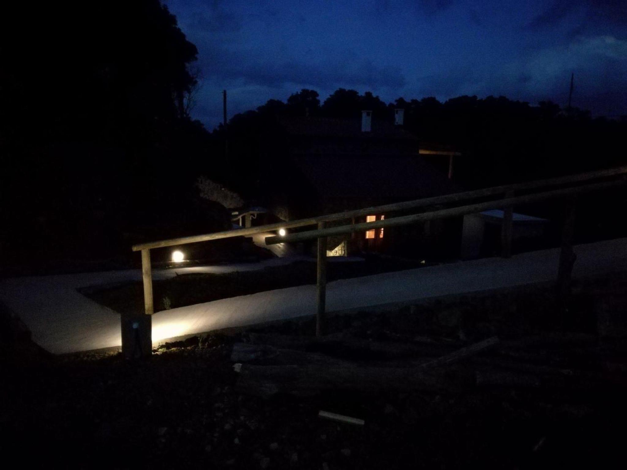 The exterior of the property is just as impressive, offering a large outdoor area with multiple living, dining, and cooking spaces. Guests can enjoy preparing meals in the barbecue and wood oven, relaxing under a pergola or on the lawn, or finding shade on gravel-covered porches. The romantic lighting strewn throughout the garden and living areas creates the perfect ambiance for evening relaxation and entertainment.