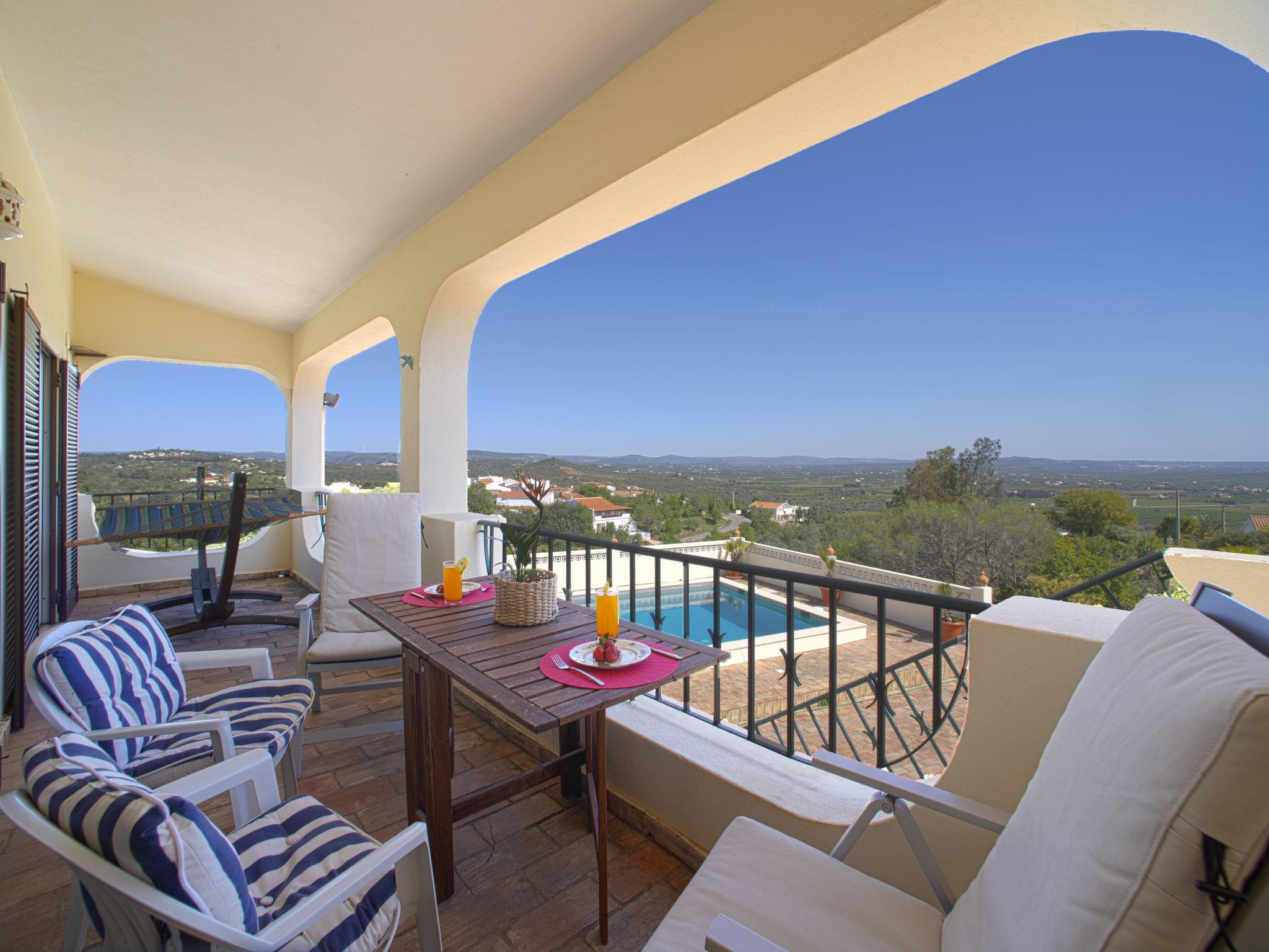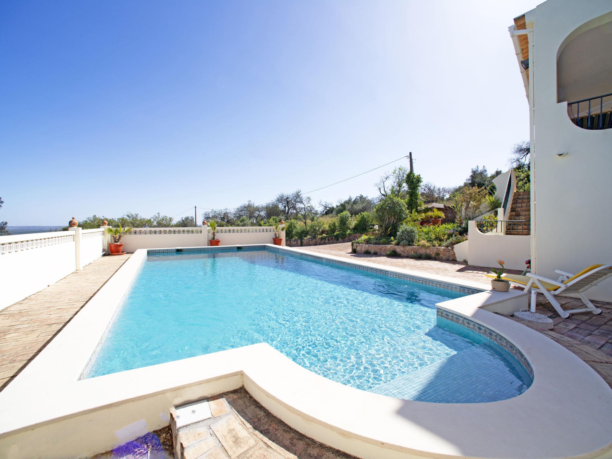 Cortes 6 km from Messines: Cosy, comfortable villa "Vista", built in 1989. Outside the resort, in a sunny position, 26 km from the sea. Private: property 6'500 m2, beautiful garden to relax, swimming pool angular (10 x 5 m, depth 30 - 220 cm, seasonal availability: 01.Jan. - 31.Dec.). Outdoor shower, parking at the house. Supermarket 6 km, restaurant 2 km, bar 3.6 km, bus stop 1.5 km. Golf course (18 hole) 20 km, riding stable 12 km. Nearby attractions: Faro 50 km, Albufeira 35 km, Silves 17 km, Portimao 35 km, Lisboa 250 km, Sevilla 250 km.