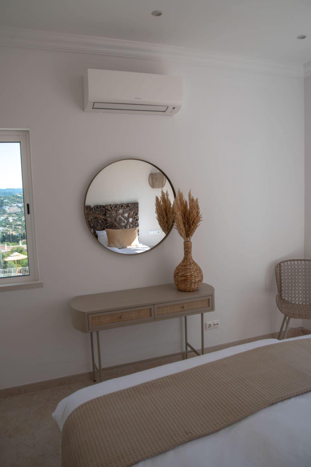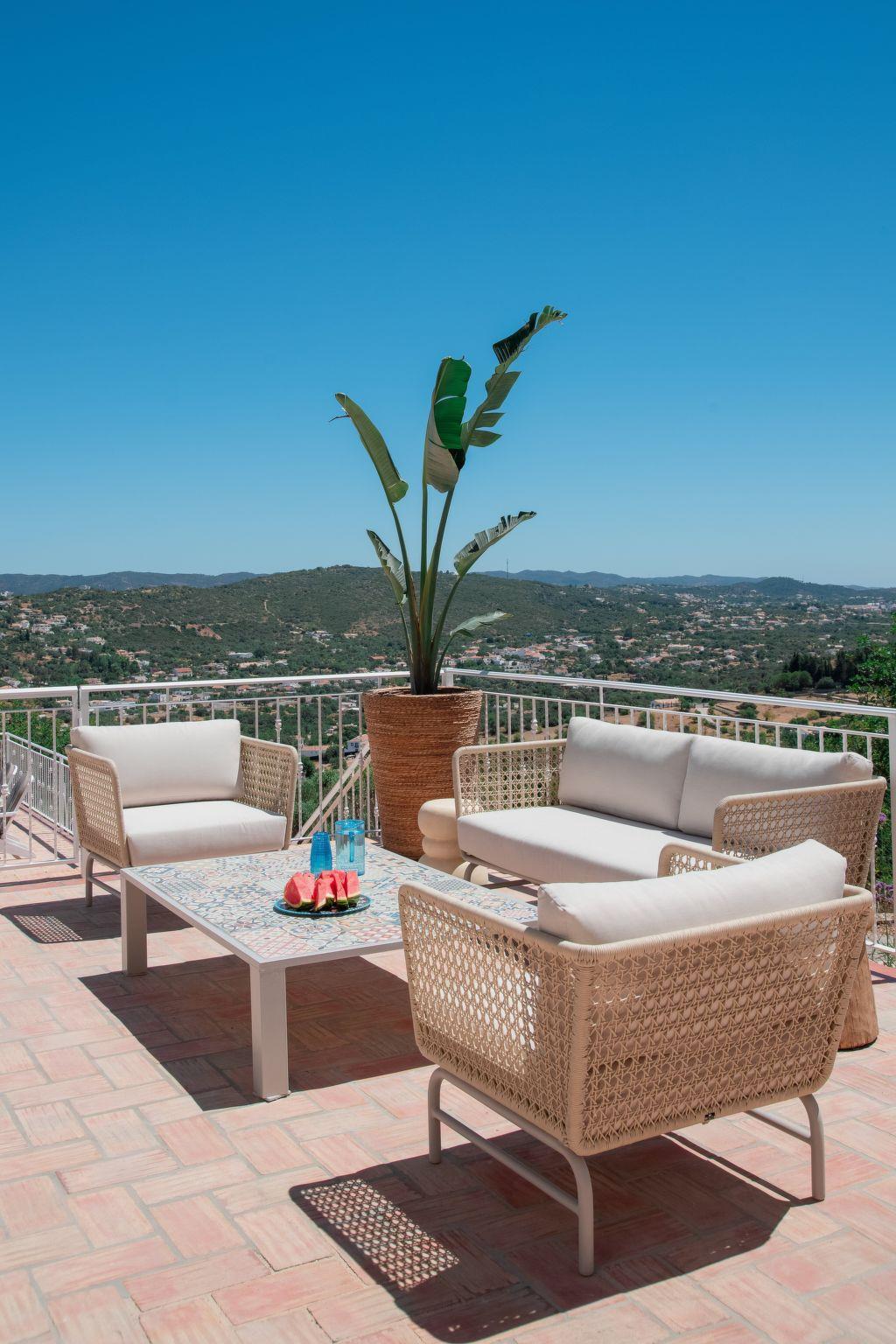 Truly relax in this unique and peacefully located villa. Situated high on a hill at the end of a private road with no nearby neighbors, yet not isolated. Enjoy spectacular views of the inland mountains towards Loulé and São Brás de Alportel. The villa features beautiful terraces spread over two levels and was recently renovated in 2024, including a heated pool with a new pool cover. Just 20 minutes to Faro Airport, 25 minutes to Tavira, and 2 hours to Seville in Spain or 2.5 hours to Lisbon. The stunning golf courses of Vale do Lobo, Vilamoura, and Almancil are 25 minutes away. The picturesque Loulé is 15 minutes away, and Fuseta with its beautiful islands and beaches is 30 minutes away. São Brás de Alportel, with all major supermarkets, is only 5 minutes away. The large Aquapark of Quarteira is 20 minutes away.