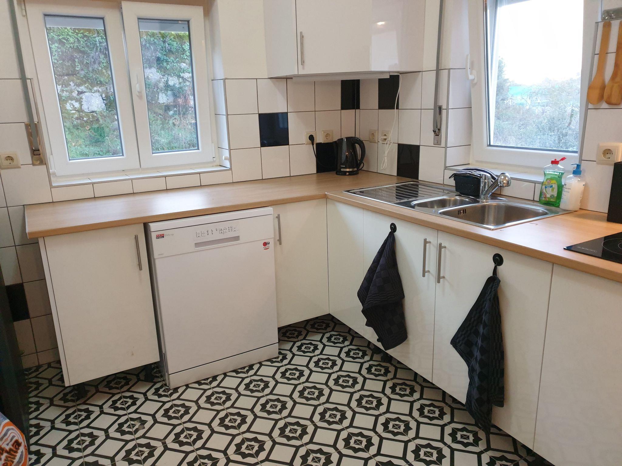 The spacious holiday home has a large lounge with balcony and 2 bedrooms, 1 with a double bed and 1 with 2 bunk beds, 1 bathroom with shower, toilet and sink, bed linen, towels, a large flat-screen TV with streaming services, a pull-out dining area, a fully equipped kitchen with dishwasher, washing machine and oven and various kitchen appliances, and a terrace with mountain views. The entire house is heated by central heating in winter. Solar energy is used for the stove and hot water, and the whole house has top-quality double-glazed tilt-and-turn windows.