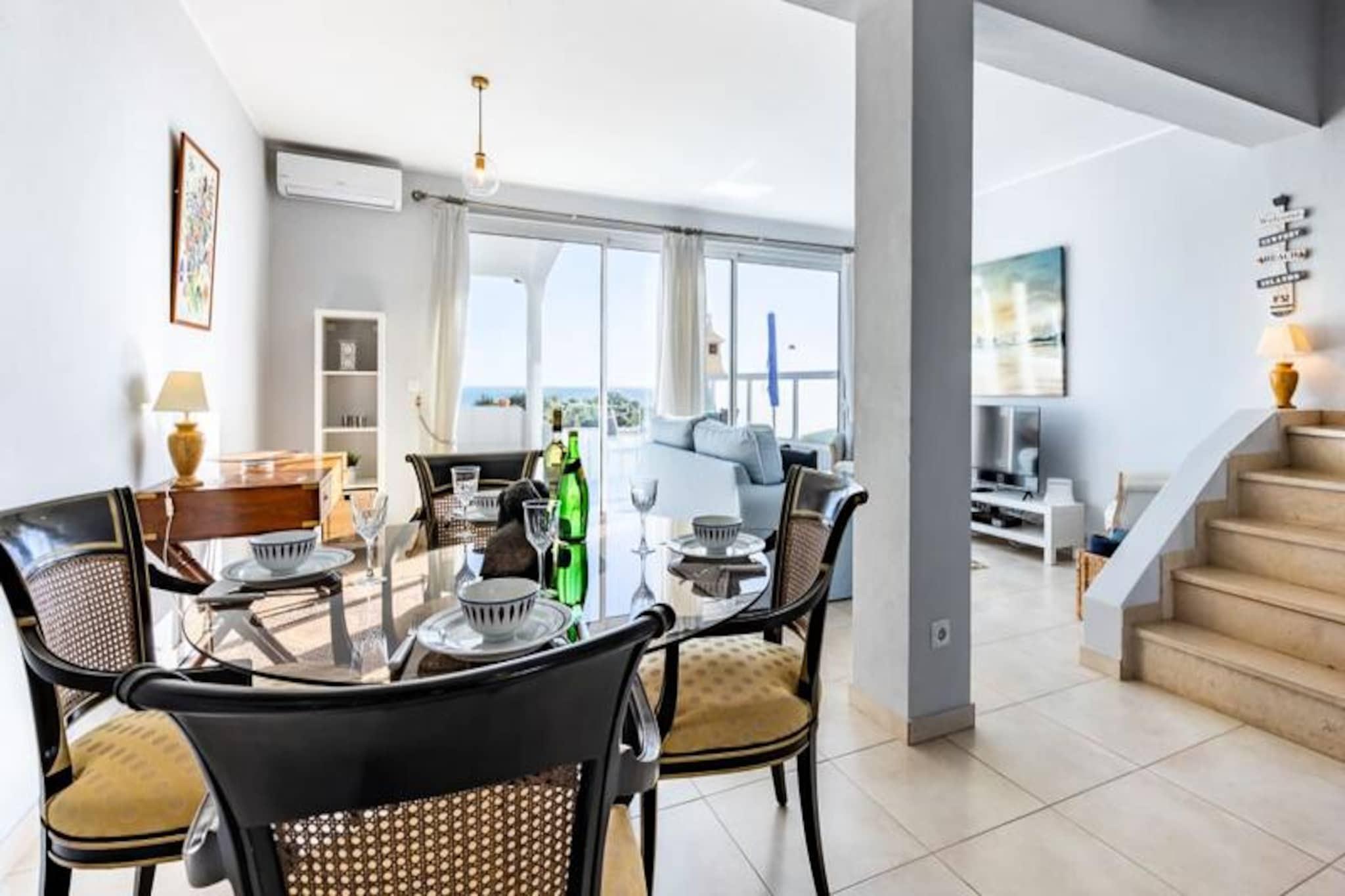 Beliggende i hjertet af Salema, en charmerende fiskerlandsby på Portugals Algarvekyst, tilbyder dette fantastiske rækkehus en rolig oase med en betagende udsigt over Atlanterhavet. Bølgernes rolige rytme og den pulserende lokale kultur skaber den perfekte baggrund for en afslappende ferie, uanset om du søger eventyr eller rolige øjeblikke ved havet. Kun en kort gåtur væk inviterer det gyldne sand på Salemas Blå Flag-strand dig til at slappe af, mens landsbyens friske fiskerestauranter og maleriske gader lover autentisk portugisisk charme. Dette lyse og luftige rækkehus er omhyggeligt renoveret og kombinerer moderne komfort med tidløs elegance. Den åbne stue og spisestue flyder problemfrit ud til en rummelig sydvendt terrasse, perfekt til solbadning eller til at nyde måltider under den udendørs Algarvesol. Det fuldt udstyrede køkken inkluderer induktionskogeplade, mikrobølgeovn og lille ovn, mens det tilstødende vaskerum tilføjer bekvemmelighed med fryser og vaskemaskine. Ovenpå tilbyder to generøst store soveværelser en betagende havudsigt, det ene med sin egen private balkon. Et elegant, moderne badeværelse og et ekstra brusebad i stueetagen sikrer rigelig plads til familier eller grupper. Salemas idylliske beliggenhed gør det til et paradis for naturelskere, golfspillere og familier. Udforsk de nærliggende kyststier, opdag skjulte bugter, eller nyd blot de pulserende lokale markeder og kulinariske lækkerier. Faro Lufthavn ligger kun en times kørsel væk, hvilket gør dette maleriske tilflugtssted let tilgængeligt. Uanset om du er her for at sole dig, udforske Algarves naturlige skønhed eller nyde frisk fisk og skaldyr, er dette rækkehus dit perfekte hjem væk fra hjemmet.
