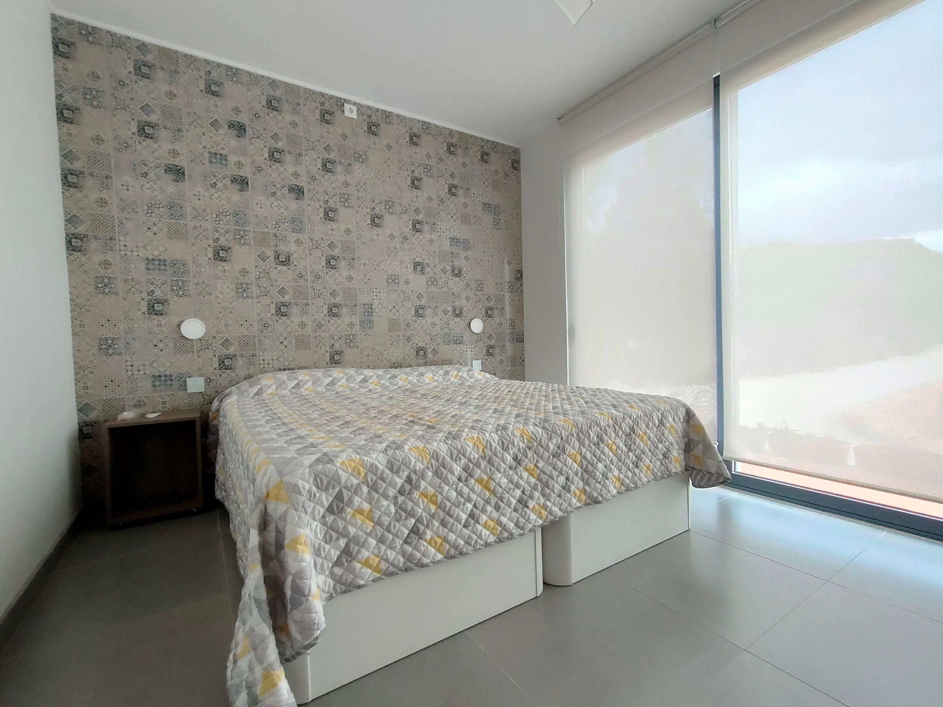 Die Wohnung verfügt über 4 Zimmer, darunter 2 Schlafzimmer: eines mit einem 160 cm breiten Doppelbett und das andere mit zwei 90 cm breiten Einzelbetten. Ein Badezimmer mit begehbarer Dusche, Toilette und Doppelwaschbecken. Es steht Ihnen eine voll ausgestattete Küche zur Verfügung, mit Geschirrspüler, Waschmaschine, Nespresso-Kaffeemaschine, normaler Kaffeemaschine, Gasherd und Mikrowelle, Entsafter, Wasserkocher, Toaster, Smart-TV und WLAN ...etc.