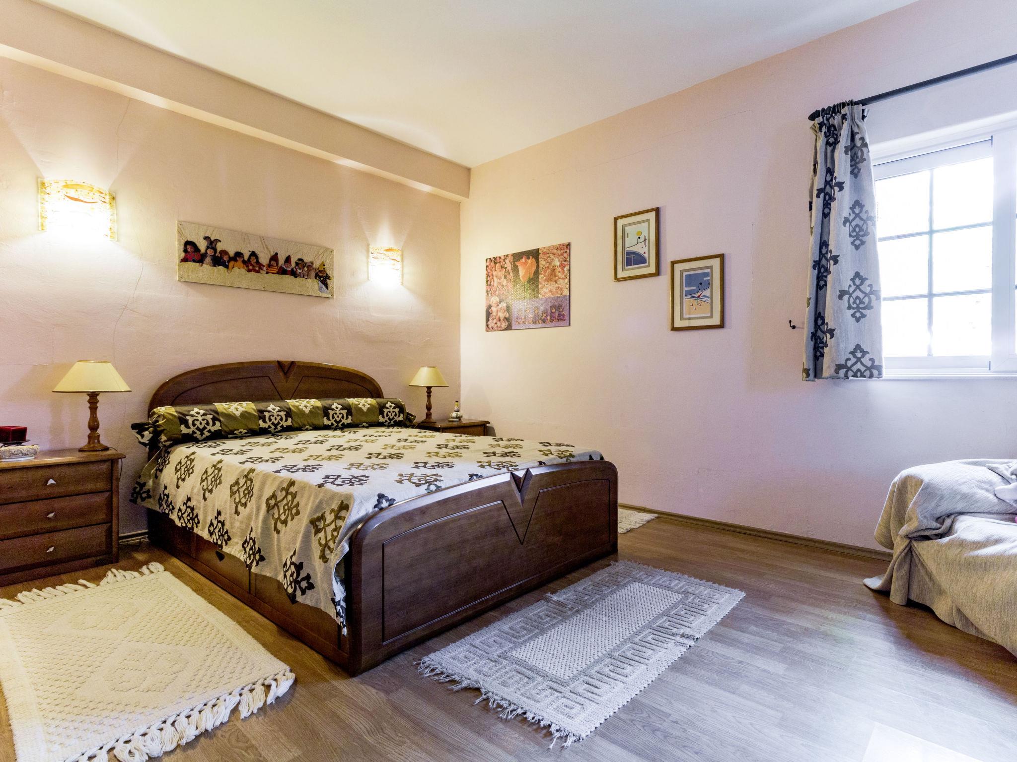 "Monte Meco", 6-room house 260 m2 on 2 levels. Tasteful furnishings: living/dining room, on 2 levels with open-hearth fireplace, dining table and cable TV. Exit to the terrace. Living room. 1 room with Dressing room with 1 french bed (150 cm, length 205 cm), shower/WC, double hand-basin and hydro massage bath. 1 room with 2 beds (95 cm, length 195 cm), bath/WC. Kitchen (oven, dishwasher, 4 gas rings, toaster, kettle, microwave, freezer, electric coffee machine, Capsules for coffee machine (Nespresso not incl.)) with dining table. Sep. WC. Upper floor: 1 room with 1 french bed (140 cm, length 195 cm), shower/WC. Exit to the terrace. 1 room with 1 french bed (140 cm, length 195 cm), bath/WC. Mezzanine. Electric heating, air-conditioning. Heating not available in all rooms. Terrace partly roofed. Terrace furniture, barbecue, deck chairs (8). Panoramic view. Facilities: washing machine, safe, iron, mosquito net, children's high chair, baby cot, hair dryer. Internet (WiFi, free). Please note: non-smokers only. Maximum 2 pets/ dogs allowed. Fire extinguisher. 67380/AL