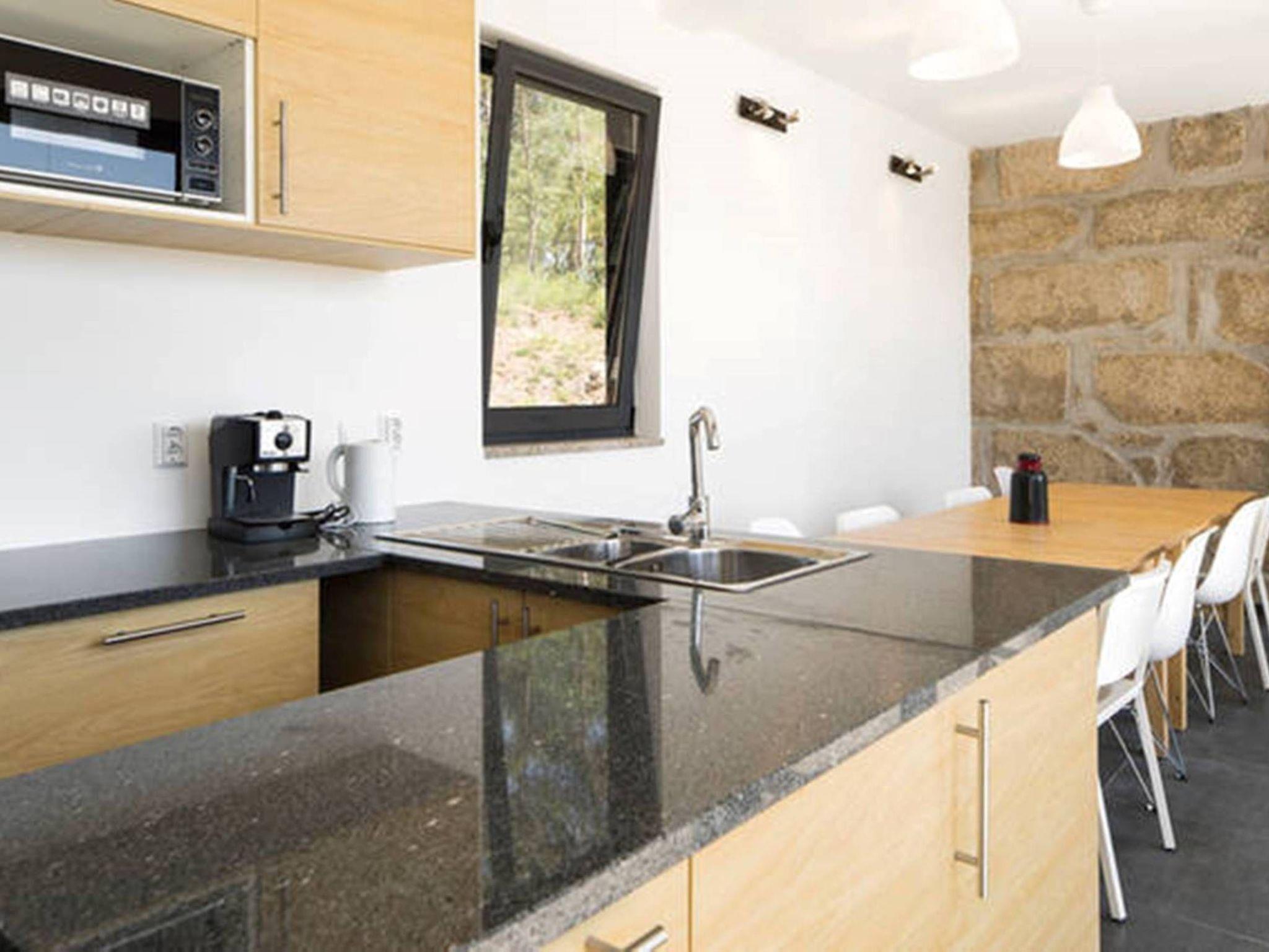 Renovated country house, holiday home with 2 spacious bedrooms (43 and 36 m2), in nature, view of mountains & forests and on long cycle/hiking path Holiday home with 2 spacious bedrooms (36 and 43 m2) each with private bathroom & terrace and private entrance: no indoor connection. Large separate kitchen on the 1st floor, fully equipped. Terraces and patio with views of the woods & mountains. In the middle of the Dão wine region, in the countryside on 1 hectare of private land. Shops, amenities and restaurants are within 5 kilometres. Swimming pool for all guests (saltwater, 12 x 4 m) with sun terrace. The accommodation is open all year round and has mosquito nets and air conditioning (heating/cooling). Lugar do Pégo has vineyards and wineries ´around the corner´ and is adjacent to the ecopista - a 49 km cycle path without any motorised traffic. Mountain bikes can be rented on request in advance. Just 300 metres away is the small river Dinha, well audible with its waterfalls. Further along the Dinha and the river Dão there are river beaches where it is lovely to swim. Overlooking the mountains, surrounded by trees and tranquillity and 21 km from Viseu and 69 km from historic Coimbra, the accommodation offers all possibilities to be active but also to relax. The Caramulo mountain range is 20 minutes away by car and is suitable for hiking, paragliding, abseiling and has a renowned vintage car museum. The Serra de Estrela is an hour's drive away, as is the sea with several fantastic beaches. Furthermore, 15 car minutes away is a thermal spa with various beauty packages and also within 15 minutes a 27-hole golf course. Lugar do Pégo is also interesting gastronomically: a few kilometres away is a famous authentic Portuguese restaurant with Bib Gourmand (Très Pipos), just under 15 kilometres away is the Quinta de Cabriz, also famous for its wines, and just under 20 kilometres away is the beautiful Quinta (Mesa) de Lemos. Along the way along the ecopista, there are several places to eat and drink. The holiday home is a renovated detached part of a country house consisting of two buildings, and is decorated for comfort and quality. 2p room bg: 36 m2, toilet, bidet, washbasin, hidromassage shower, boxspring with 2p mattress or 2x 1p mattress of your choice, anti-allergenic, private terrace, flat-screen TV, wood-burning stove. Air conditioning. Free internet, free on-site parking. View of the mountains. 2-3 p room 1st floor: see 2 p room bg and additionally a sofa bed (1.40 x 1.90). Living kitchen on 1st floor: spacious kitchen (27 m2) with air conditioning. Wood cooker, oven, microwave, ceramic hob, dishwasher, espresso machine, hot water boiler, fridge and freezer, crockery, 2 dining tables with mountain views. Viseu can be reached by bike via the ecopista. Free Wi-Fi throughout the complex. Towels and bed linen are provided. Free parking is available on site. Worth knowing: a little further on the property is the main house, villa Lugar do Pego with its own entrances and terraces. Completely separate from the holiday home. Given the height differences on the quinta and the terraces, which are not all fenced, the holiday home may be less suitable for young children. The pool is not fenced and unguarded, we therefore strongly recommend that guests have a swimming certificate. Stay (including swimming and pool access) is at your own risk.