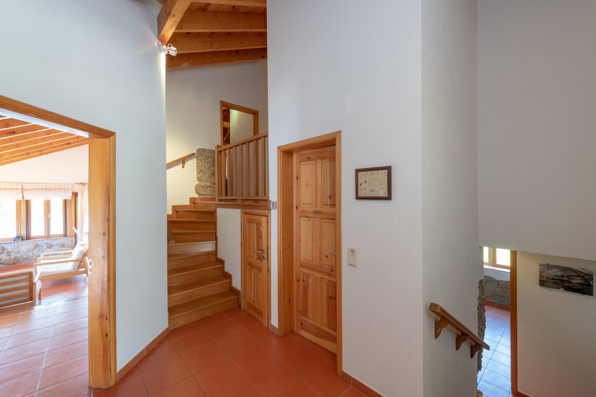 Riverside Escape i hjertet af Portugals Dão-dal Denne smukt udformede villa i Treixedo ligger ved den maleriske flod Dão og tilbyder et fredeligt tilflugtssted i Portugals frodige Centro-region. Med varme trædetaljer og klassisk arkitektonisk charme byder huset på rummelige interiører, en hyggelig stue med pejs og store havedøre, der åbner ud til en privat terrasse og have. Omgivet af oliventræer og lyden af rindende vand er det det perfekte sted for dem, der søger ro og naturlig skønhed. De private udendørsarealer med liggestole og grill indbyder til afslapning og panoramaudsigt over dalen. Natur og kultur i Portugal Denne herregårds beliggenhed giver nem adgang til både fredfyldt natur og kulturelle seværdigheder. Kun få skridt fra en rolig flodstrand kan du svømme, padle eller nyde en picnic ved floden. Den nærliggende Ecopista do Dão, en 49 km lang cykel- og vandresti anlagt på en tidligere jernbanelinje, er et must for naturelskere. Kun en kort køretur væk ligger byen Viseu med sit charmerende historiske centrum, livlige markeder og den smukke katedral i Viseu. Vinelskere kan udforske den berømte vinregion Dão, hvor vinmarker og smagelokaler pryder landskabet.