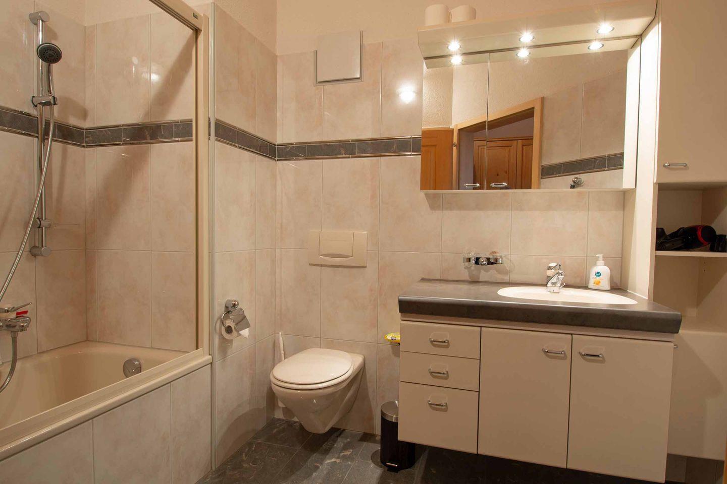Die gemütliche und helle Ferienwohnung im Dachgeschoss befindet sich nahe dem Dorfzentrum. Zwei Schlafzimmer bieten Platz für 4 Personen. Der Wohnraum mit Sitzgruppe, Esstisch, Schwedenofen, TV, Radio und Internetzugang, lädt ein für gemütliche Abende. Von zwei Balkone geniessen Sie eine herrlicher Aussicht auf die Berge und den Wasserfall. Die Küche ist mit allem ausgerüstet was Sie brauchen: Kochstelle, Backofen, Geschirrspülmaschine, Kühlschrank mit Gefrierfach, usw. Das Badezimmer ist ausgestattet mit Badewanne, WC und Lavabo. Eine Waschmaschine und ein Trockner gehören ebenfalls zur Wohnung. Der grosse Parkplatz in der Einstellhalle, eine Skiraum sowie ein Lift ergänzen das Angebot. Zu Fuss erreichen Sie in 2 Minuten den Coop Supermarkt und das Dorfzentrum.