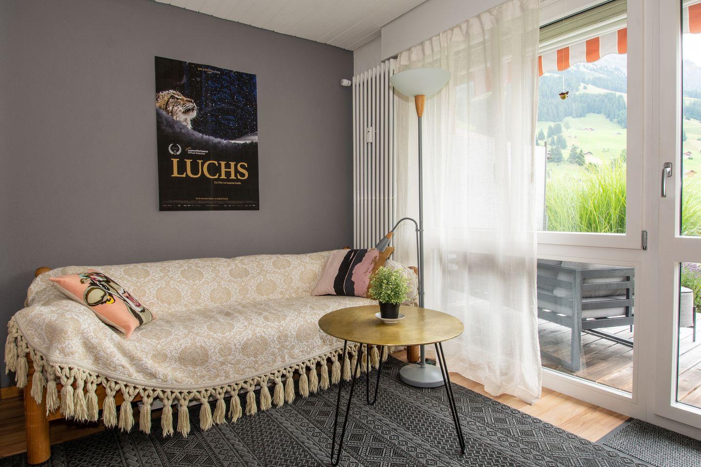 Unser charmantes Studio bietet Ruhe und Erholung in idyllischer Lage am Dorfrand. Der Wohn- und Schlafbereich ist mit einem praktischen Schrankbett, Sofa, Esstisch und TV ausgestattet. In der Küche stehen Herd, Backofen und Kühlschrank zur Verfügung. Ein privater Gartensitzplatz lädt zum Entspannen und Genießen der Natur ein. 1 Haustier erlaubt, muss auf der Terrasse an der Leine gehalten werden, kein freier Auslauf. Gebühr CHF 100.00