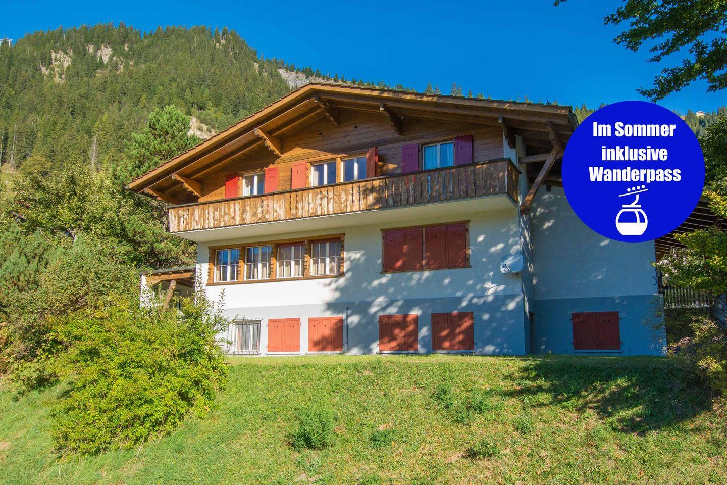 Die im Herbst 2018 renovierte Ferienwohnung im 1. Stock des Chalet Buchhüttli, befindet sich nur wenige Schritte vom Dorfzentrum. Drei Schlafzimmer bieten Platz für 6 Personen. Der gemütliche Wohnraum mit Sitzgruppe, Esstisch für 6 Personen, TV, Radio und Internetzugang, lädt ein für gemütliche Abende in der Familie. Vom Wohnzimmer und von zwei der Schlafzimmer gelangen Sie auf den Balkon mit herrlicher Aussicht auf die Berge und den Wasserfall. Die Küche ist mit allem ausgerüstet was Sie brauchen: Kochstelle, Backofen, Geschirrspülmaschine, Kühlschrank mit Gefrierfach, usw. Das Badezimmer ist ausgestattet mit Dusche, WC und Lavabo. Zudem ist ein zusätzliches WC vorhanden. Vor dem Haus steht Ihnen ein Parkplatz zur Verfügung. Elektroauto Ladestation gebührenpflichtig