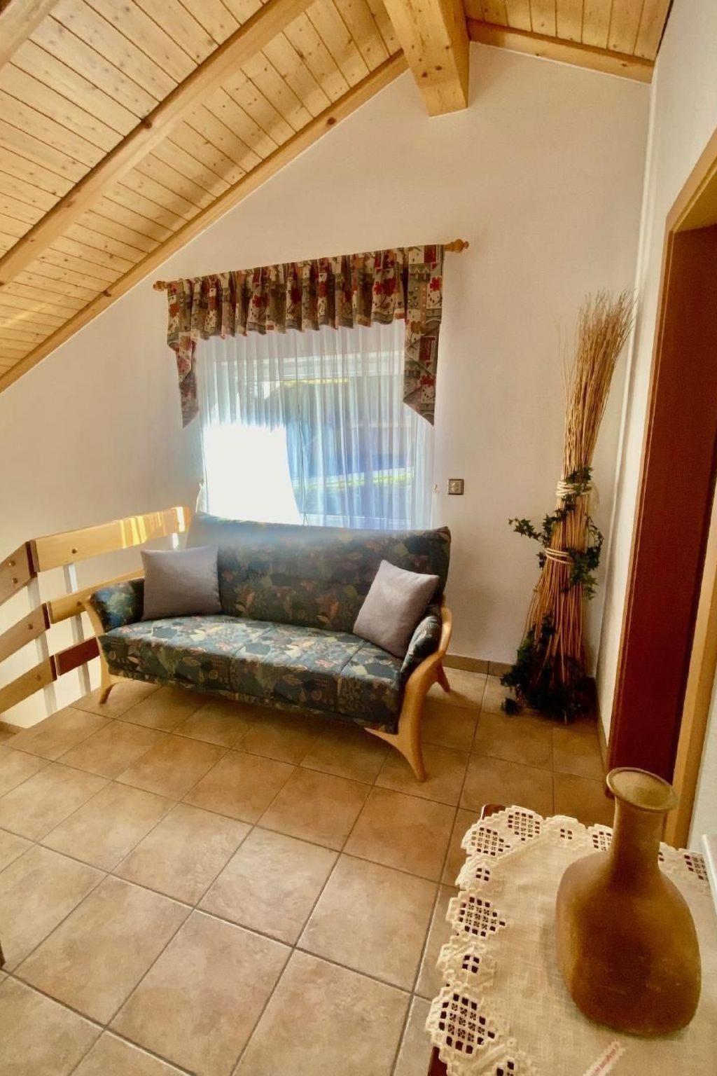 The interior of the chalet extends over 100 m² and offers maximum living comfort for up to 6 people on two floors. On the ground floor, the spacious living room with an open fireplace, a modern kitchen equipped with a Nespresso machine, microwave, toaster, dishwasher and many other extras, as well as a cosy dining area will tempt you to linger. A day toilet completes the offer. The top floor impresses with a deluxe room with a balcony, a double bed and a pull-out sofa, another bedroom with a double bed and office furniture and a bathroom with shower/WC.