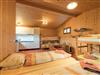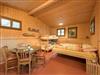 The chalet, ideal for up to 6 people, offers you a cosy home away from home. It has a double bed, 2 bunk beds and a newly equipped kitchen with electric cooker, fridge, coffee machine, kettle, microwave and a full range of pans, cutlery, crockery and more.