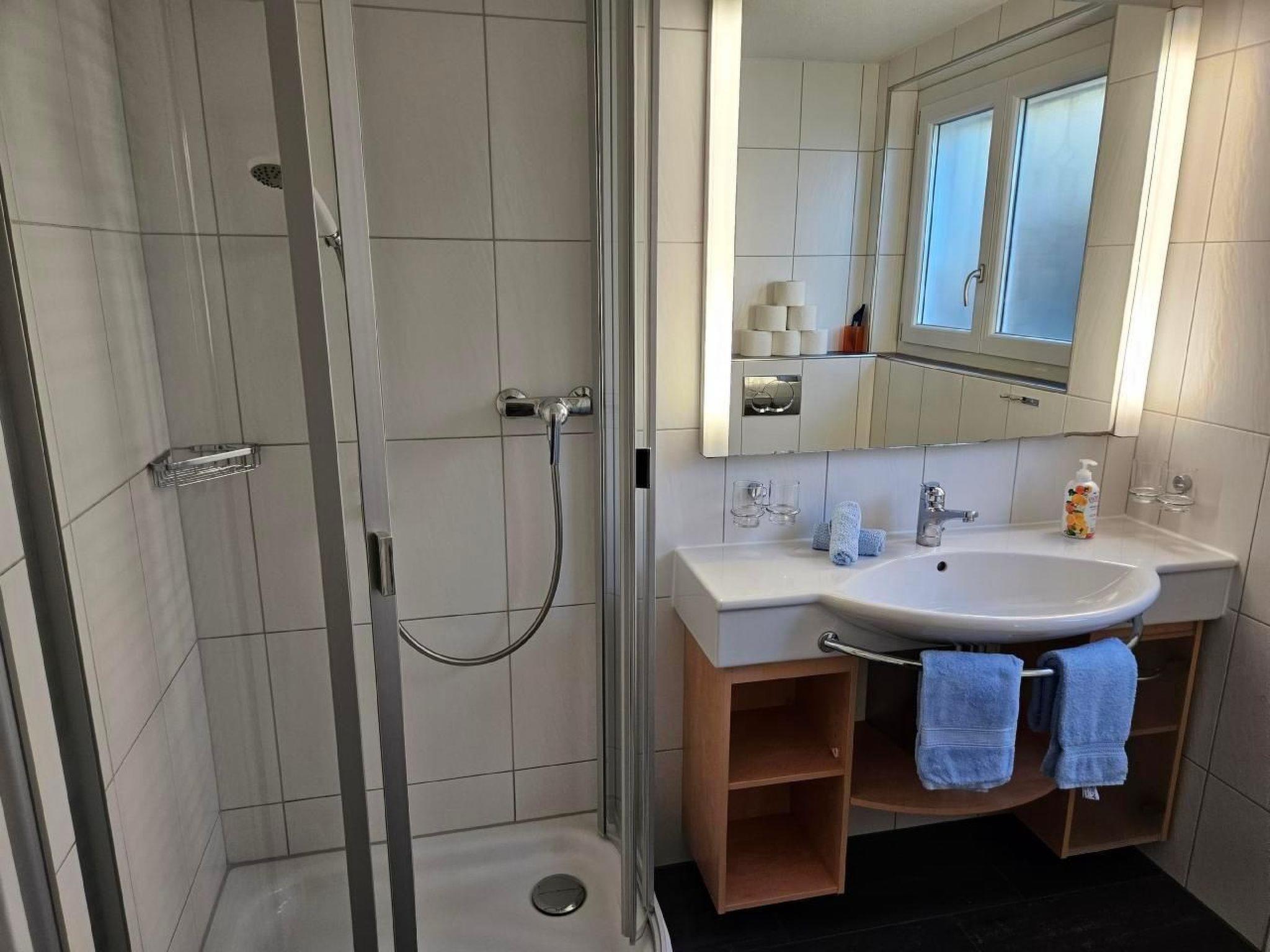 Outside, the large garden invites you to linger and enjoy. Here you will find a large dining table, comfortable deckchairs and a barbecue area - perfect for rounding off the day in a convivial atmosphere. The view from the garden offers a spectacular panorama that captures the beauty of the Swiss Alps in all their splendour.