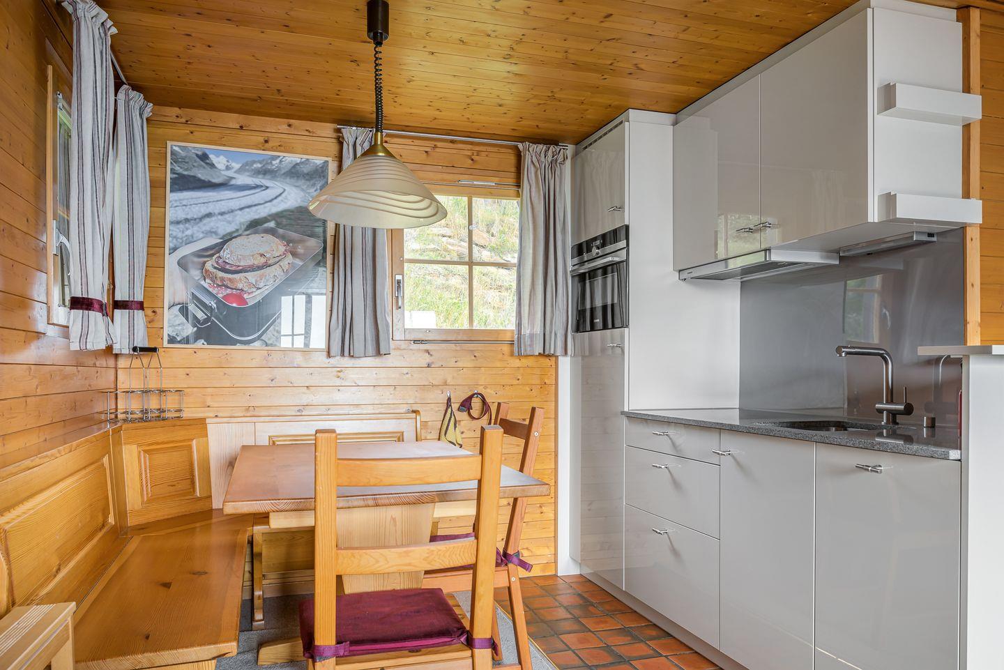 Das Chalet verfügt über 3 gemütliche Zimmer, einen einladenden Kamin und einen sonnigen Südbalkon. Der Eingangsbereich bietet Platz für Ihre Garderobe, während das Wohnzimmer mit offener Küche und Essbereich zum Verweilen einlädt. Die Wohnung umfasst zudem ein modernes Badezimmer mit Dusche/WC und Waschmaschine sowie zwei Schlafzimmer: eines mit Doppelbett und eines mit französischem Bett – ideal für Familien oder Paare. Genießen Sie unvergessliche Momente in diesem alpinen Rückzugsort!