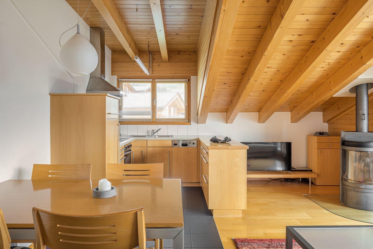 3 und halb Zimmer Dachwohnung mit Kaminofen und Süd-Ost-Balkon.