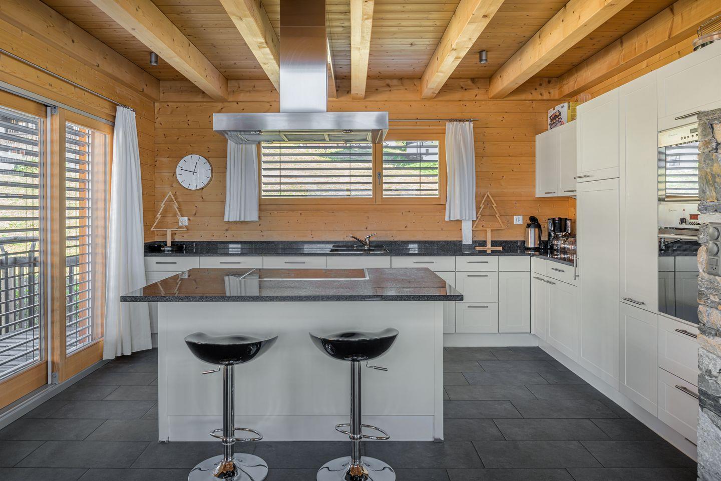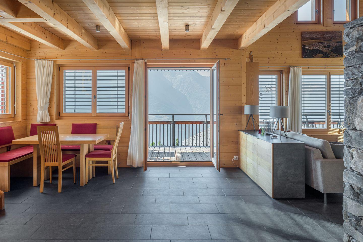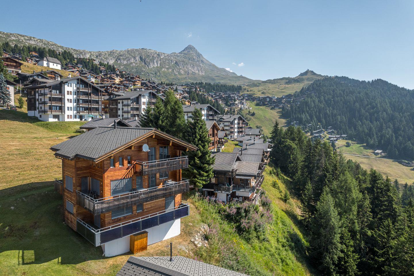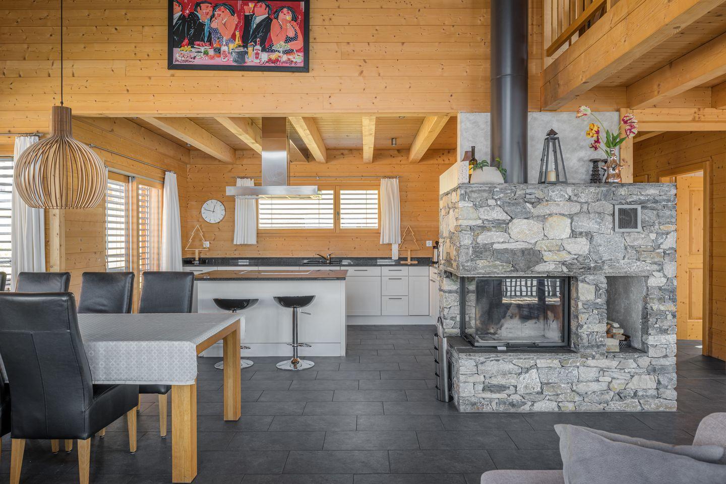 Ihr Traumferienhaus liegt südwestlich vom Dorfzentrum, mit traumhafter Panoramaaussicht mitten im Topskigebiet. Im Winter steht das Chalet mitten im Skigebiet, im Sommer ist es umgeben von schöner Flora , am Waldrand. Auf 300 m2 ist eine Wohlfühloase entstanden in der 10 Personen den Alltag hinter sich lassen können, nach einem langen Tag mit unzähligen Impressionen vom Skigebiet oder Wanderungen können sie sich im grossen Wohnzimmer mit einem Roman einem Film oder einem Glas Wein in familiärer Atmosphäre entspannen. Über Internet besteht die Möglichkeit die Erlebnisse des Tages mit Freunden zu teilen. Dabei hören sie dem Knistern des Kaminfeuers zu. Wenn sie gerne kochen, wird das Zubereiten einer Mahlzeit in der grosszügigen, mit allem ausgestatteten Küche zum Erlebnis.Von Chalet, gehen Sie etwa 50 Meter bergauf bis zur Straße und Skieen sie von dort zu den Skiliften. Kommen sie zurück aus den Bergen, Skieen Sie durch das Dorf und fahren sie bis zum Haus.