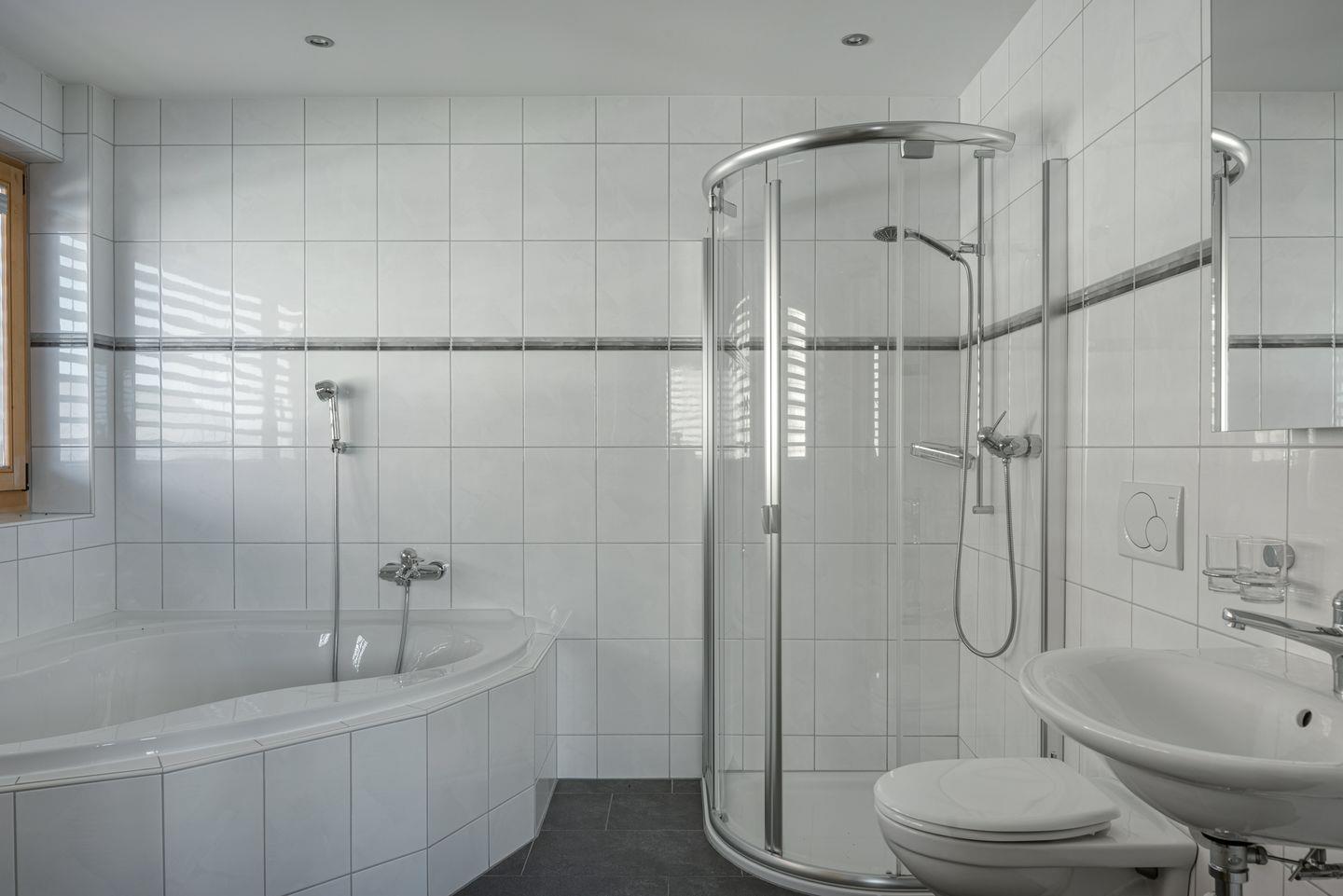1 Schlafzimmer mit 2-Einzelbetten, in Dusche, WC, Waschbecken. 2 Schlafzimmer mit 2 Einzelbetten. 1 Schlafzimmer mit 2 Einzelbetten, Waschbecken, Dusche und Bad, WC. 1Badezimmer mit WC,Lavabo und Dusche.