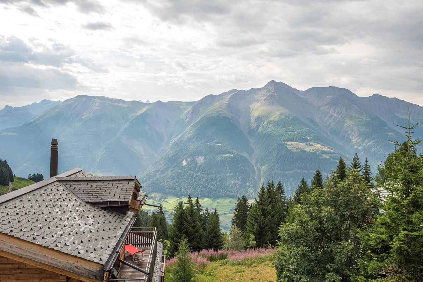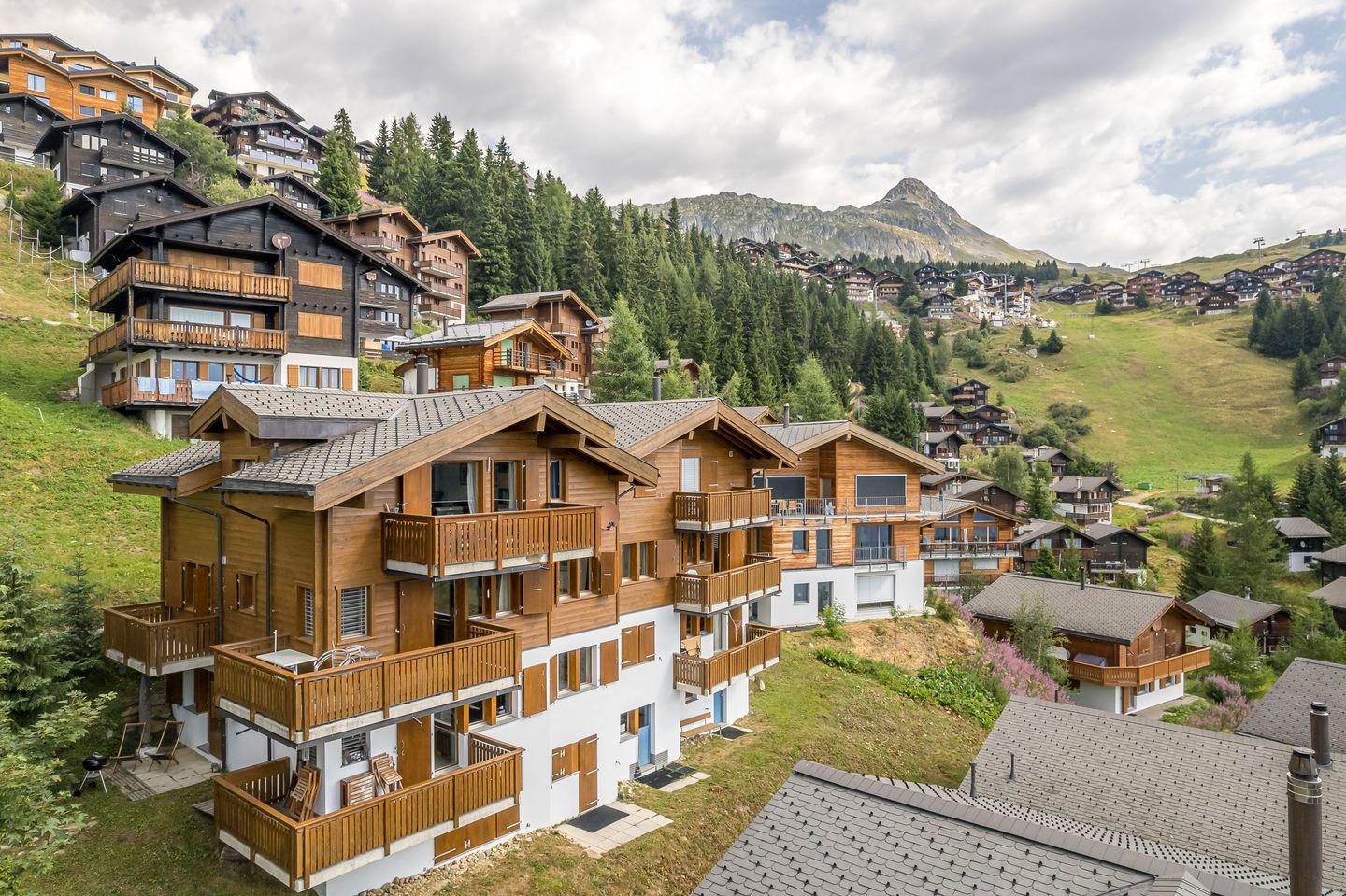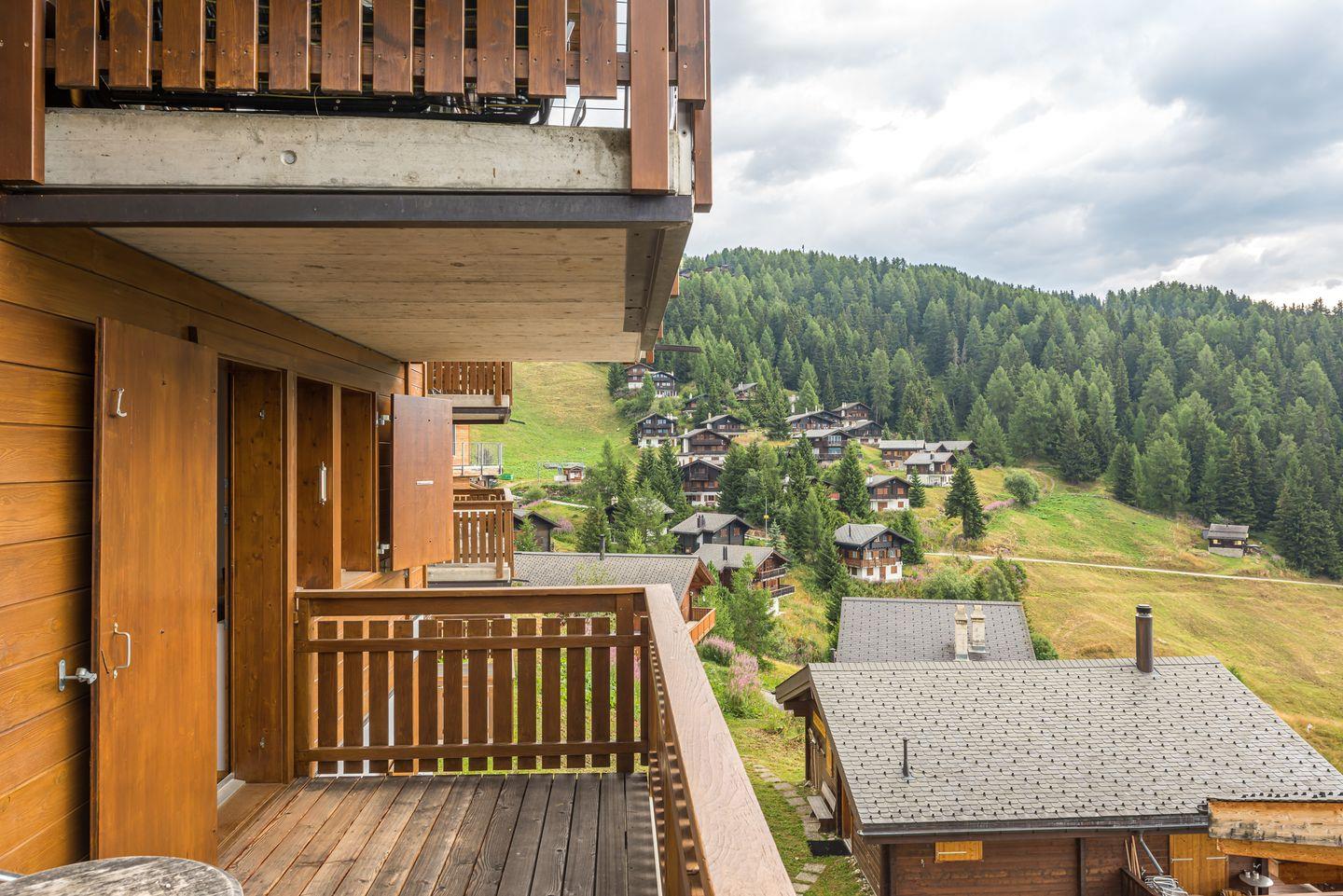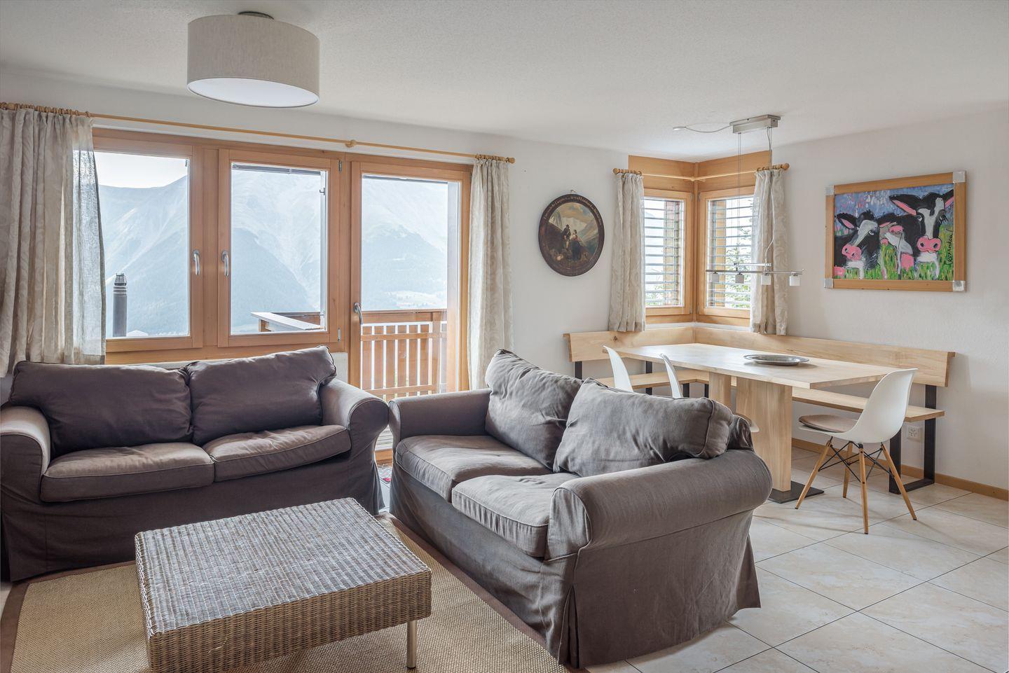 Das Haus, mit Abstellraum und Waschküche, richtet sich mit den Balkonen nach dem ruhigen Süden, mit freier Aussicht auf die gegenüberliegenden Berge bis hin zu den Walliser Alpen. Haustiere nicht erlaubt.
