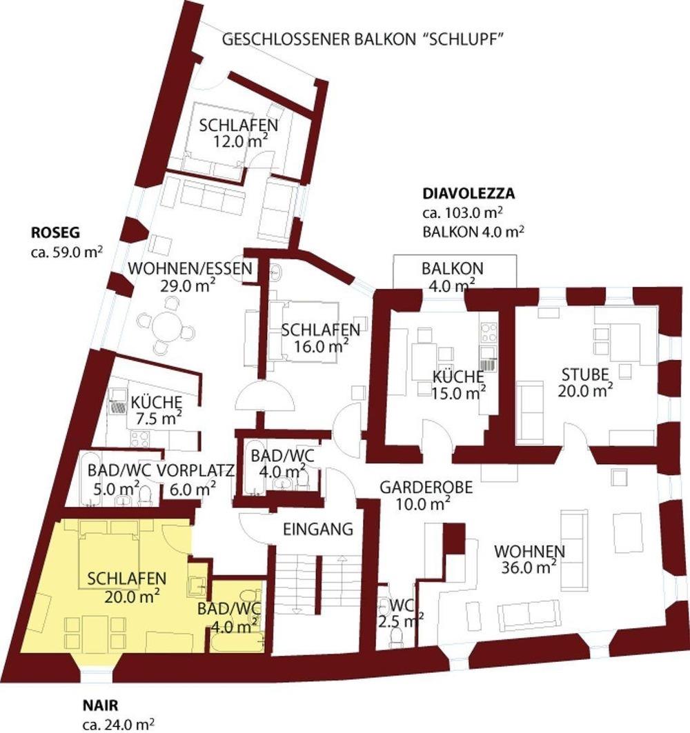 Die Chesa Michel befindet sich in einem historischen Engadinerhaus aus dem Jahr 1786, dessen ursprünglicher Charme liebevoll bewahrt wurde. Der kleine Vorplatz mit Brunnen und Sitzgelegenheit lädt im Sommer zum Verweilen ein und vermittelt das Gefühl eines echten Engadiner Dorflebens. Im Erdgeschoss stehen ein Ski- und Veloraum sowie eine gemeinschaftliche Waschküche mit Waschmaschine und Tumbler zur Verfügung. Für Fahrzeuge gibt es fünf Stellplätze in der Unterniveaugarage sowie zwei Aussenparkplätze direkt beim Haus. Holz für Schwedenöfen und Cheminées ist im Keller bereitgestellt. Dank der ruhigen Lage in einer Seitenstrasse bleibt der Aussenbereich geschützt und authentisch – ein Ort zum Ankommen, Entspannen und Durchatmen.