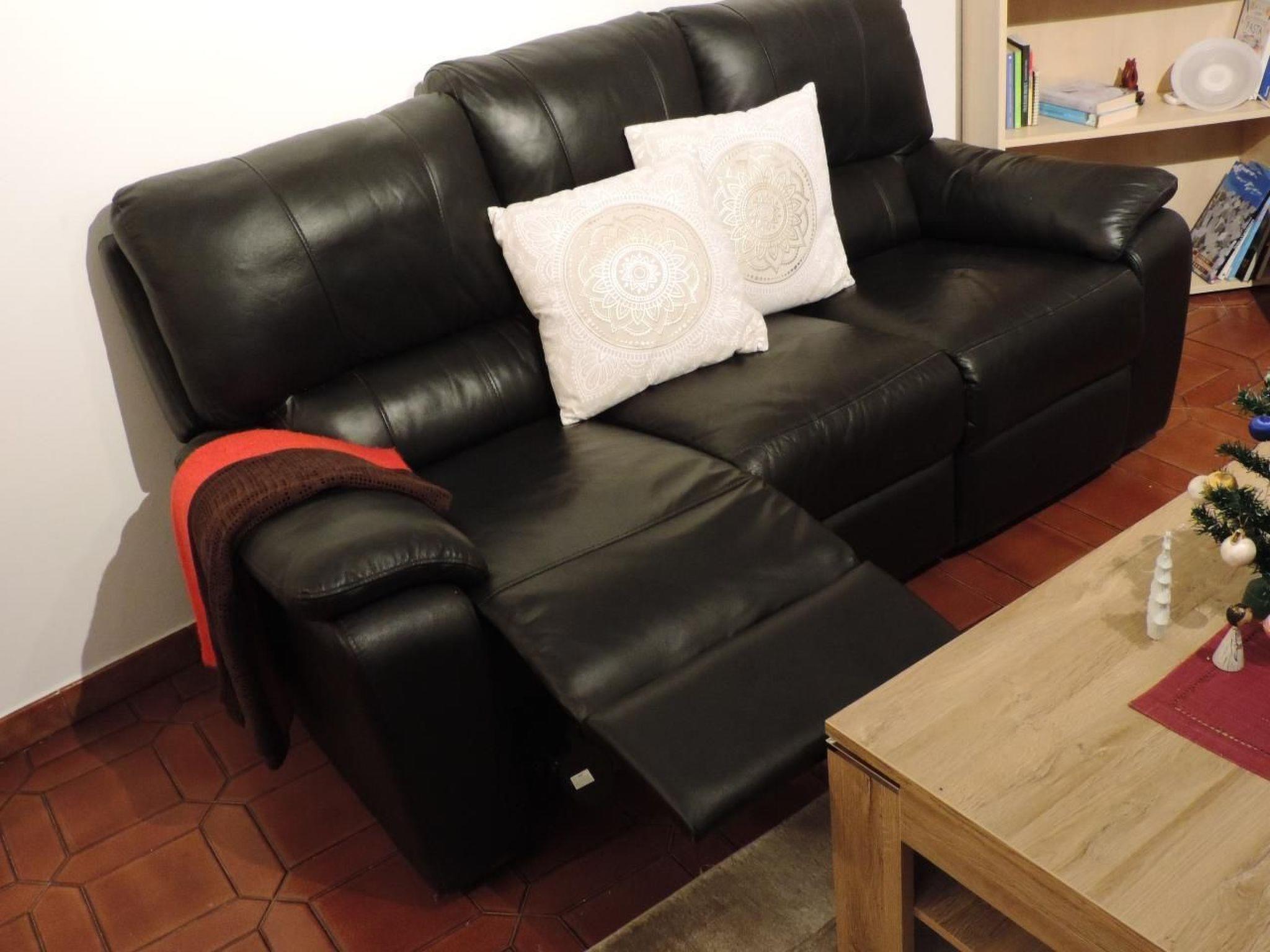 Inside, the farmhouse boasts a cosy living area furnished with a reclining relaxation armchair, a leather sofa with liftable seats, a 32-inch Philips television and a charming stone fireplace, perfect for relaxing evenings in front of the fire. The dining room, equipped with a table and four chairs, offers an ideal setting for breakfast, lunch and dinner with friends. The bedroom proves to be a comfortable space thanks to the large wardrobes, bedside tables with drawers and a television with Bluetooth connection. The kitchen is fully equipped with modern appliances such as a water gas maker, a fireplace grill and various fondue and raclette utensils, ensuring a complete dining experience.