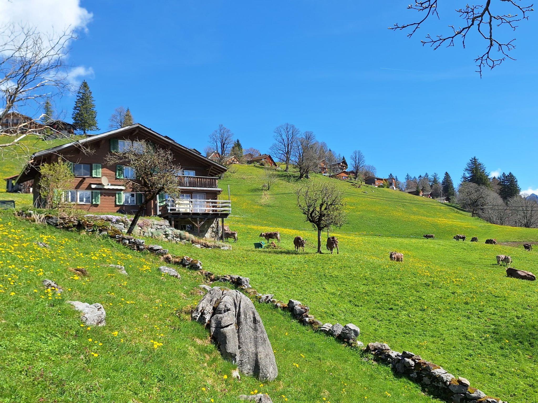 The flat is just 200 metres from our farm. In spring and autumn our cows graze with bells on the meadows, in summer they are on our alp.