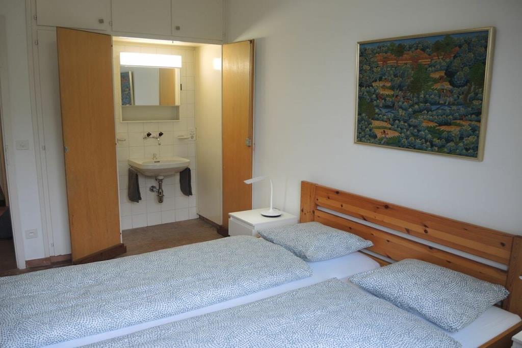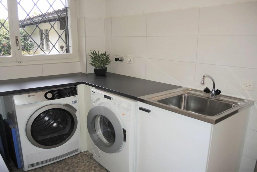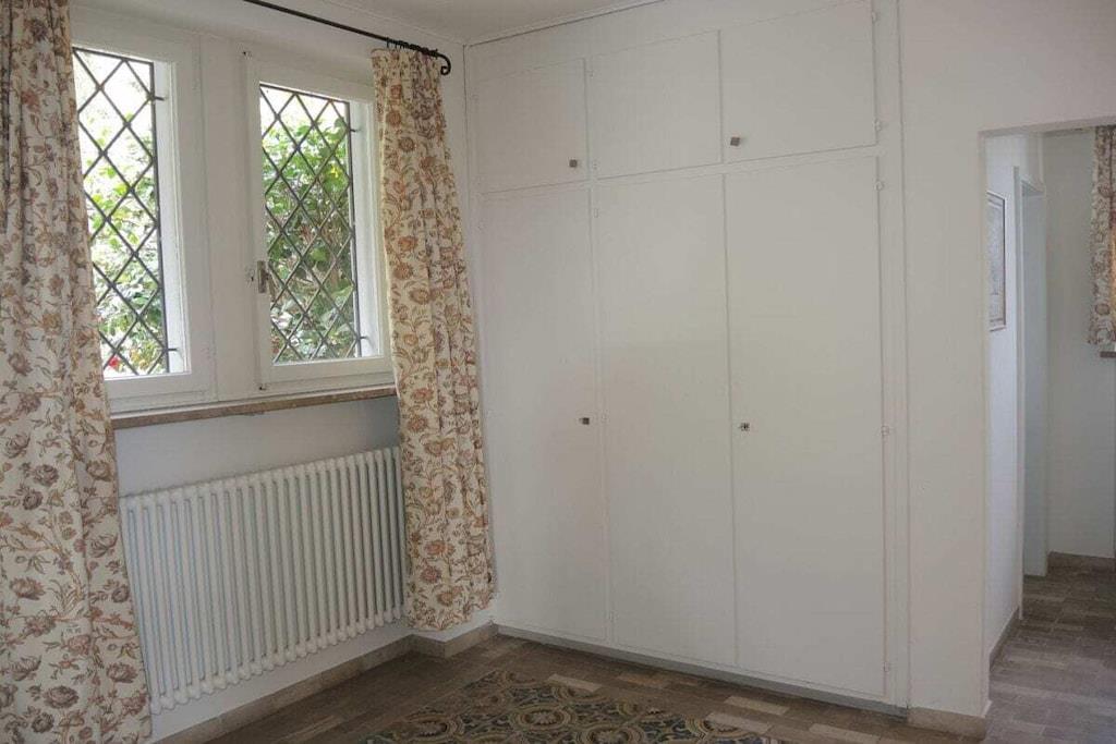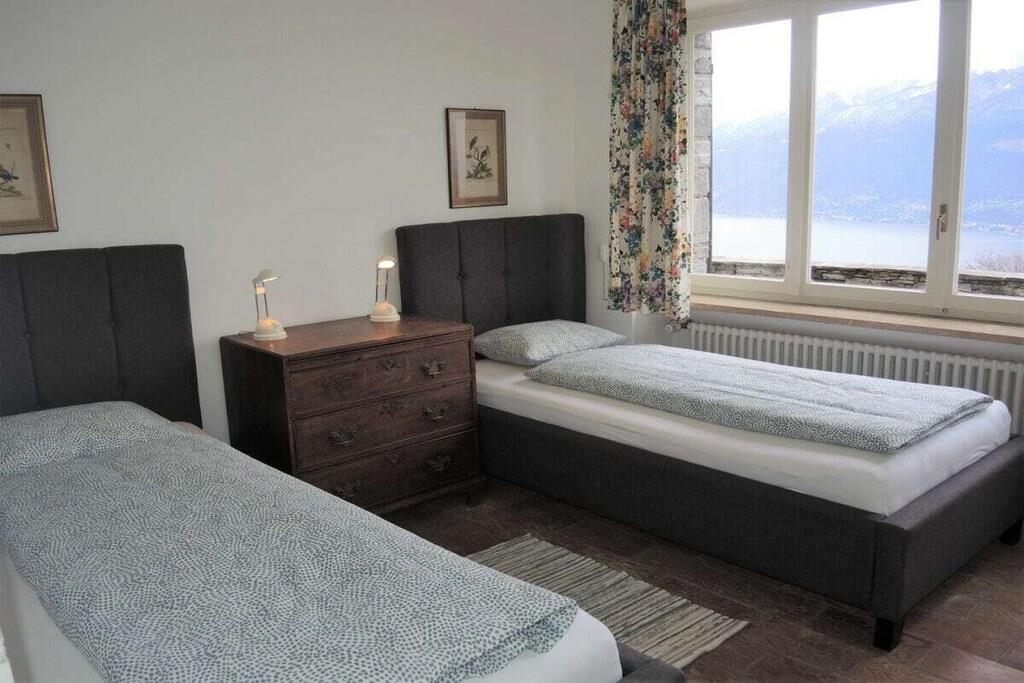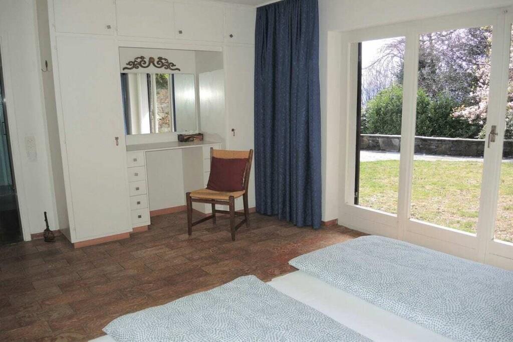 • 7-room holiday home, detached, on 2 floors • Living space approx. 210 m² • Plot approx. 2500 m² • Sleeps 8 • Quiet, sunny hillside location (approx. 600 m above sea level) • Panoramic view of the lake • Tasteful interior • Upper Floor (Entrance Area) • Spacious entrance hall with built-in wardrobes and guest toilet • Spacious living and dining room with open fireplace • Dining table and chairs • Comfortable sofas and armchairs, coffee tables • Flat-screen TV, Wi-Fi • Exit to the terrace and garden (natural stone staircase to the lower garden level (pool)) • Covered patio with dining table and wicker chairs, garden chairs, parasol • Portable charcoal grill • Reading room (office) with desk, library, sofa • 1 double bedroom (2 mattresses) with exit to the garden • Large built-in wardrobes, desk, dressing table with mirror and chair • Bathroom with shower, bathtub, toilet, hairdryer • Spacious, fully equipped separate kitchen • Utility room (washing machine, tumble dryer) • Ceramic hob, oven, dishwasher, microwave • Large, freestanding refrigerator with freezer • Espresso machine, Nespresso (please bring capsules) • Filter coffee machine, kettle Toaster . Lower Floor (Sleeping Area) • 1 bedroom with two 90 cm single beds, chest of drawers, built-in wardrobe • 1 bedroom with double bed, 2 90 cm mattresses, built-in wardrobe, desk • 1 double bedroom, 2 80 cm mattresses, built-in wardrobe • Each bedroom has its own sink with a mirror (integrated in the wardrobe) • 1 bathroom with shower/WC, hairdryer • 1 separate guest toilet • Exit to the lower garden and pool area • Covered outdoor area with table tennis table • Outdoor pool for exclusive use (open from May to September) • Pool size approx. 22 m², depth approx. 1.5 m . • Electric shutters in the living room, shutters in the rooms • 2-3 parking spaces in front of the house • Not suitable for small children – low terrace walls! • Pets allowed • No smoking, please only outdoors No smoking • Central heating • Security deposit: CHF 800.00