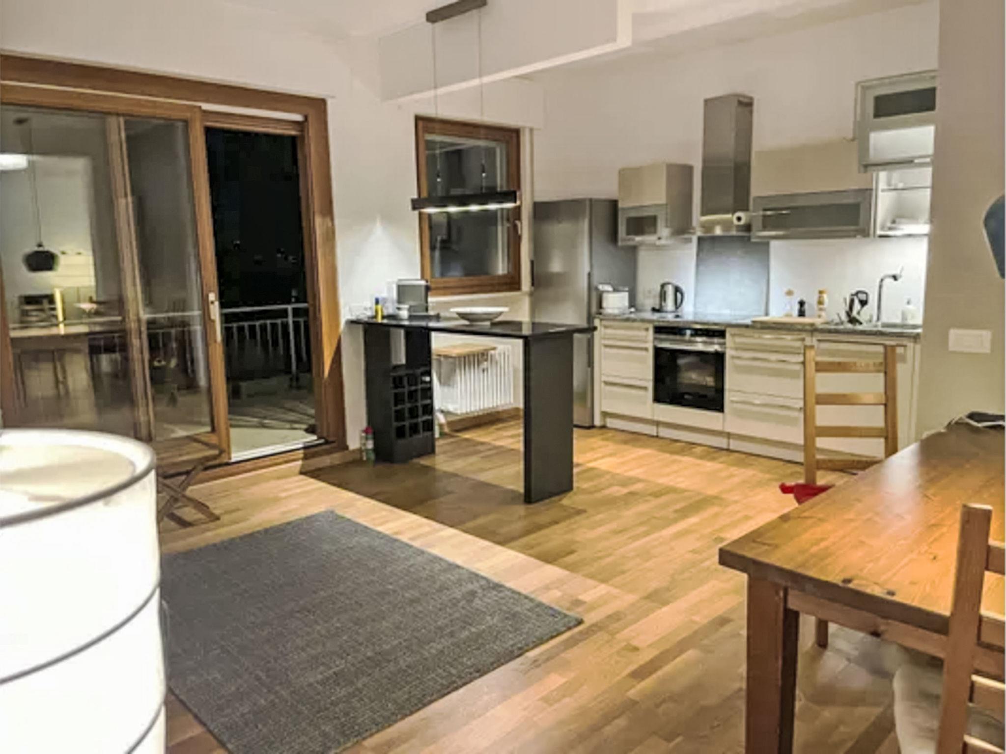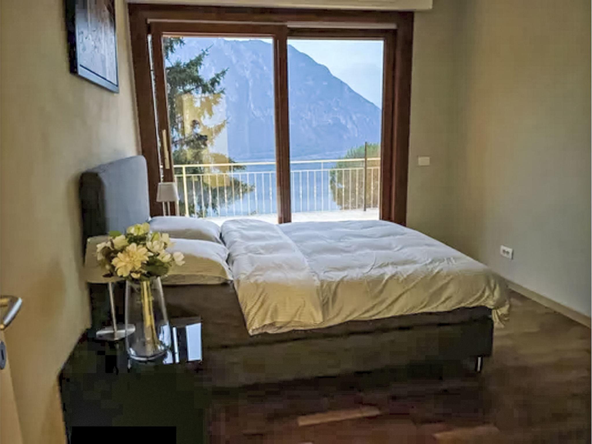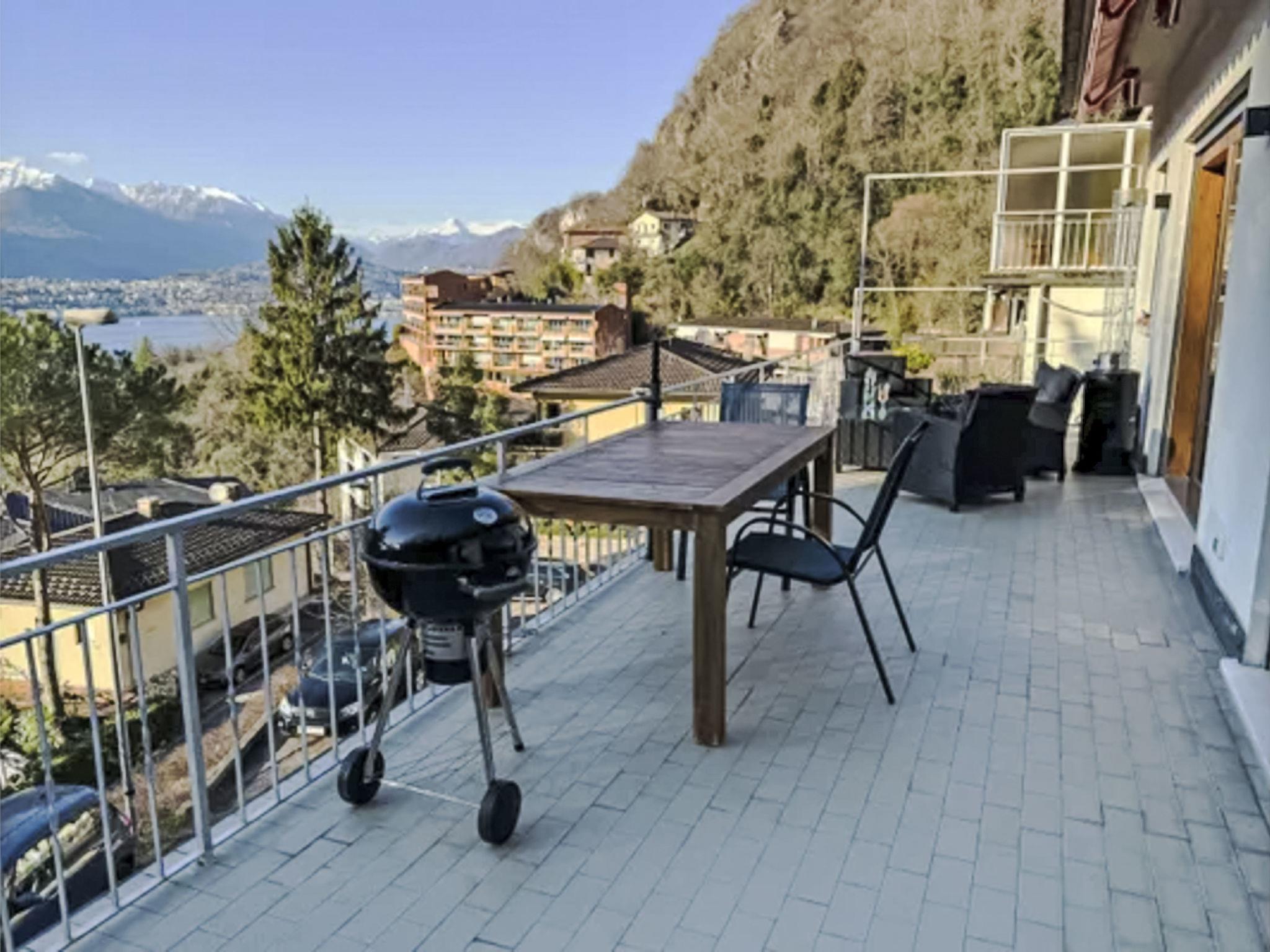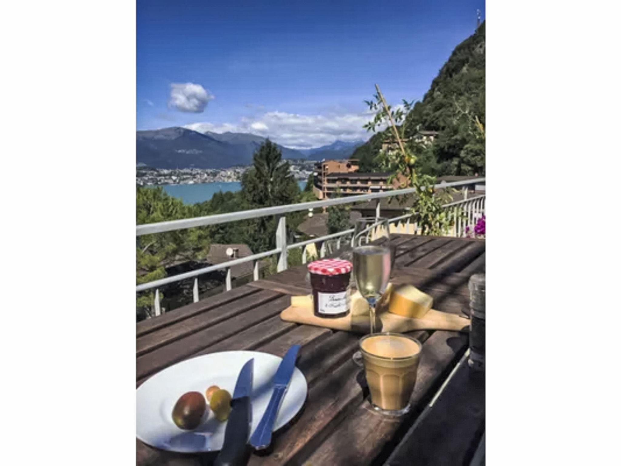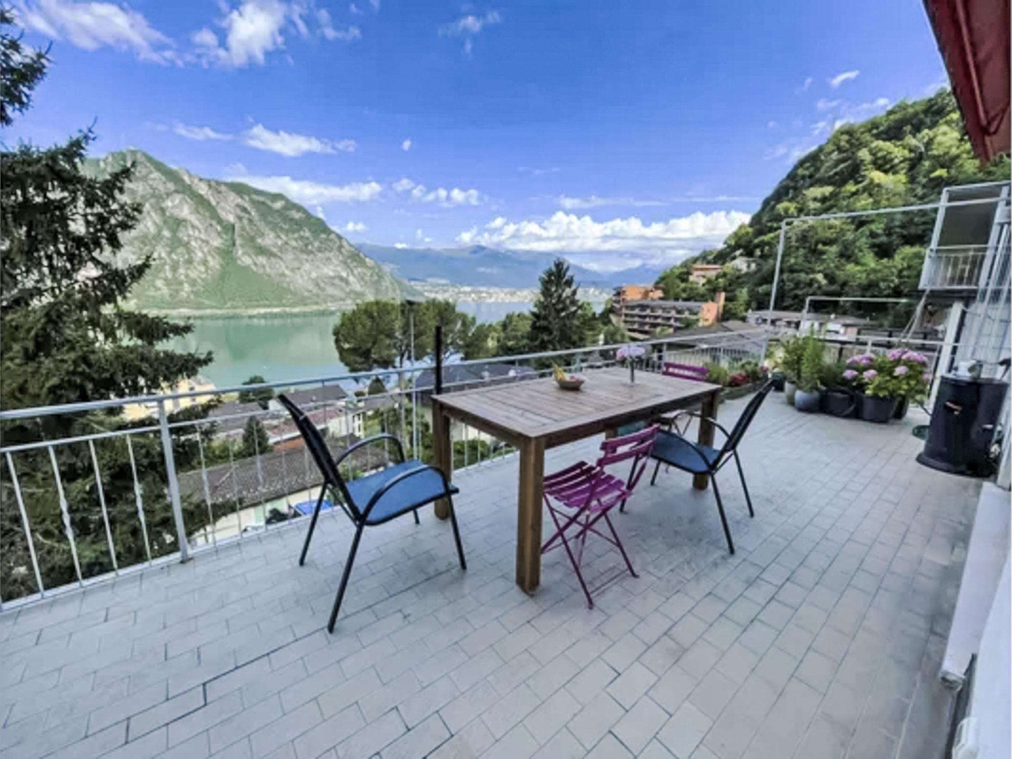 "Casa Vista Lago Campione", 2-room apartment 100 m2 on 1st floor. Modern and stylish furnishings: living/sleeping room with 1 sofabed (160 cm), dining table and cable TV. Exit to the terrace. 1 room with 1 double bed. Exit to the terrace. Open kitchen 12 m2 (oven, dishwasher, 3 induction hot plates, toaster, kettle, freezer, electric coffee machine). Shower/bidet/WC, sep. WC, double hand-basin. Heating. Balcony 30 m2. Balcony furniture, barbecue. Beautiful view of the lake and Lugano. Facilities: washing machine, iron. Internet (WiFi, free). Please note: non-smokers only. Smoke alarm.